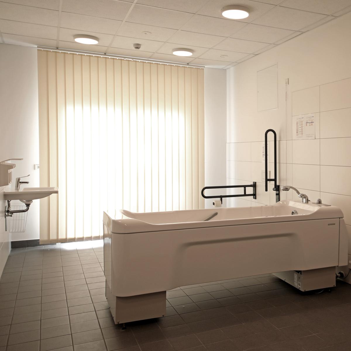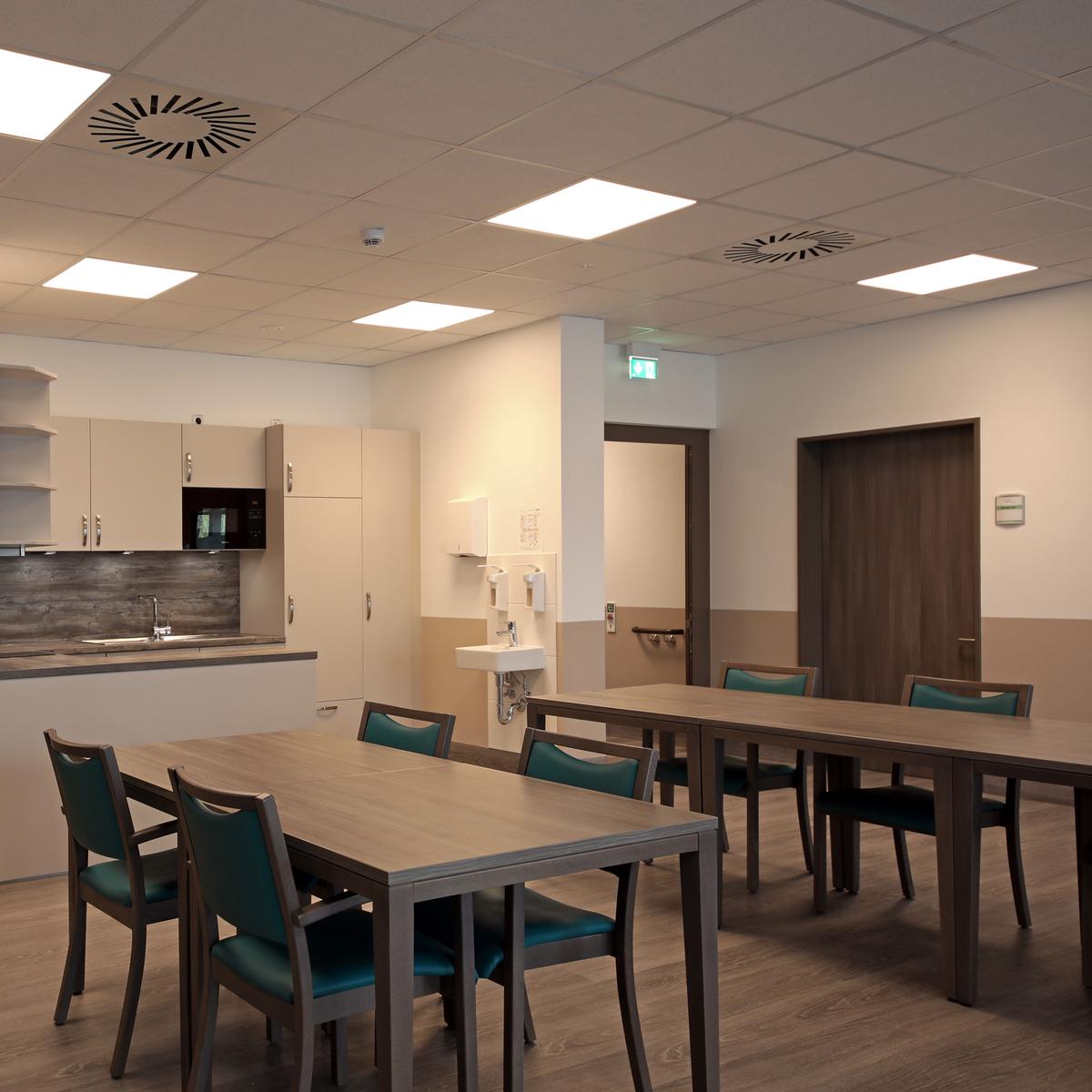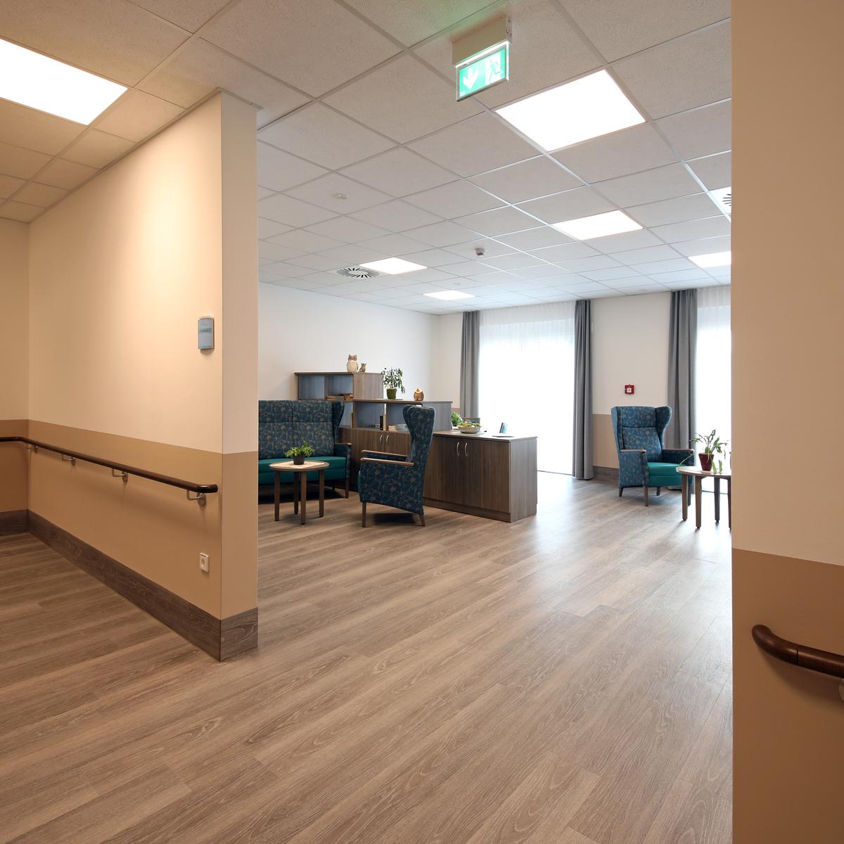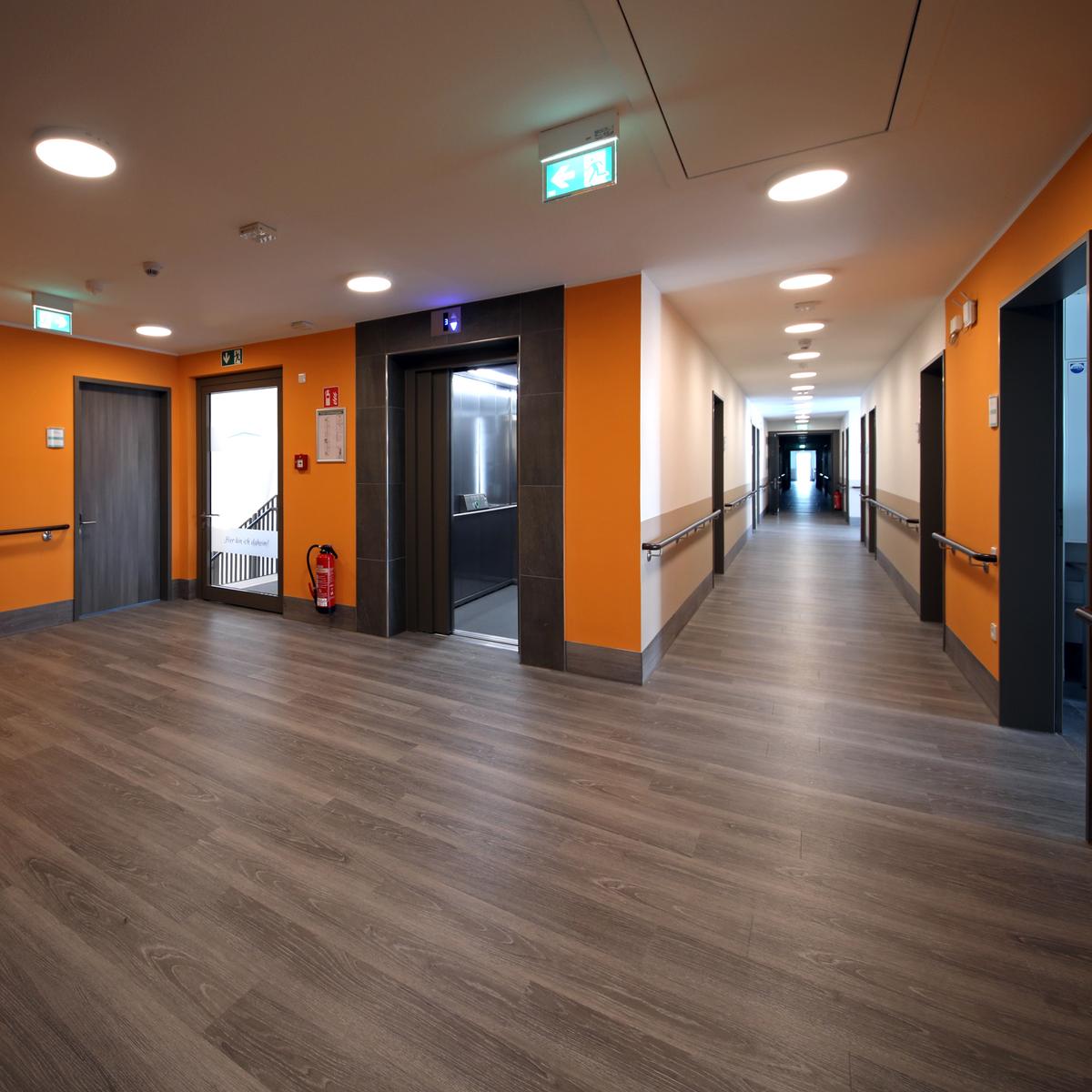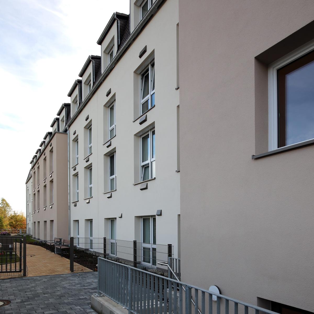 Für den Auftraggeber , die Rudolf Familien KG, übernahm das Kompetenz-Center Sozialimmobilien sämtliche Leistungen inkl. Planung bis zur schlüsselfertigen Erstellung. Das viergeschossige Pflegeheim umfasst mit 127 Einzel- und 5 Partnerappartements und wurde gemäß Energieeffizienzklasse KfW 40+ realisiert. Dieser Standard wurde vor allem über eine besonders hohe Dämmung erreicht, sodass es außer in den Bädern kaum noch Heizkörper im Gebäude gibt. Neben der nachhaltigen Ausstattung legte der Betreiber Vitalis großen Wert auf eine angenehme Atmosphäre für die Bewohnerinnen und Bewohner.