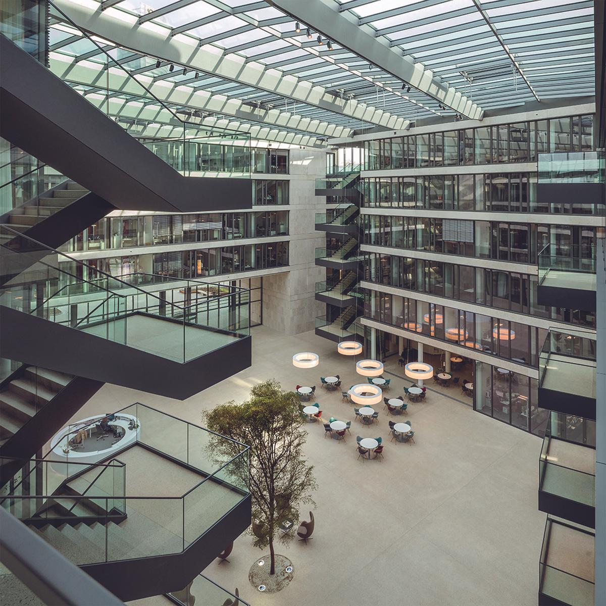 Der außergewöhnliche Entwurf des Düsseldorfer Architekturbüros Eller + Eller ist im Frühjahr 2014 auf der internationalen Immobilienmesse MIPIM in Cannes bereits mit dem Future Project Award ausgezeichnet worden. Das repräsentative Gebäude besteht aus vier miteinander verbundenen sechs- bzw. siebengeschossigen Gebäudeflügeln, die sich um ein überdachtes Atrium anordnen. Der FGS-Campus verfügt zudem über drei Untergeschosse, die überwiegend als Tiefgarage genutzt werden. Die Köster GmbH erstellte die Vorzeigeimmobilie schlüsselfertig inklusive der Außenanlagen und der Ausführungsplanung.