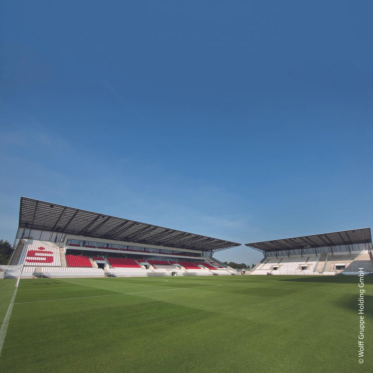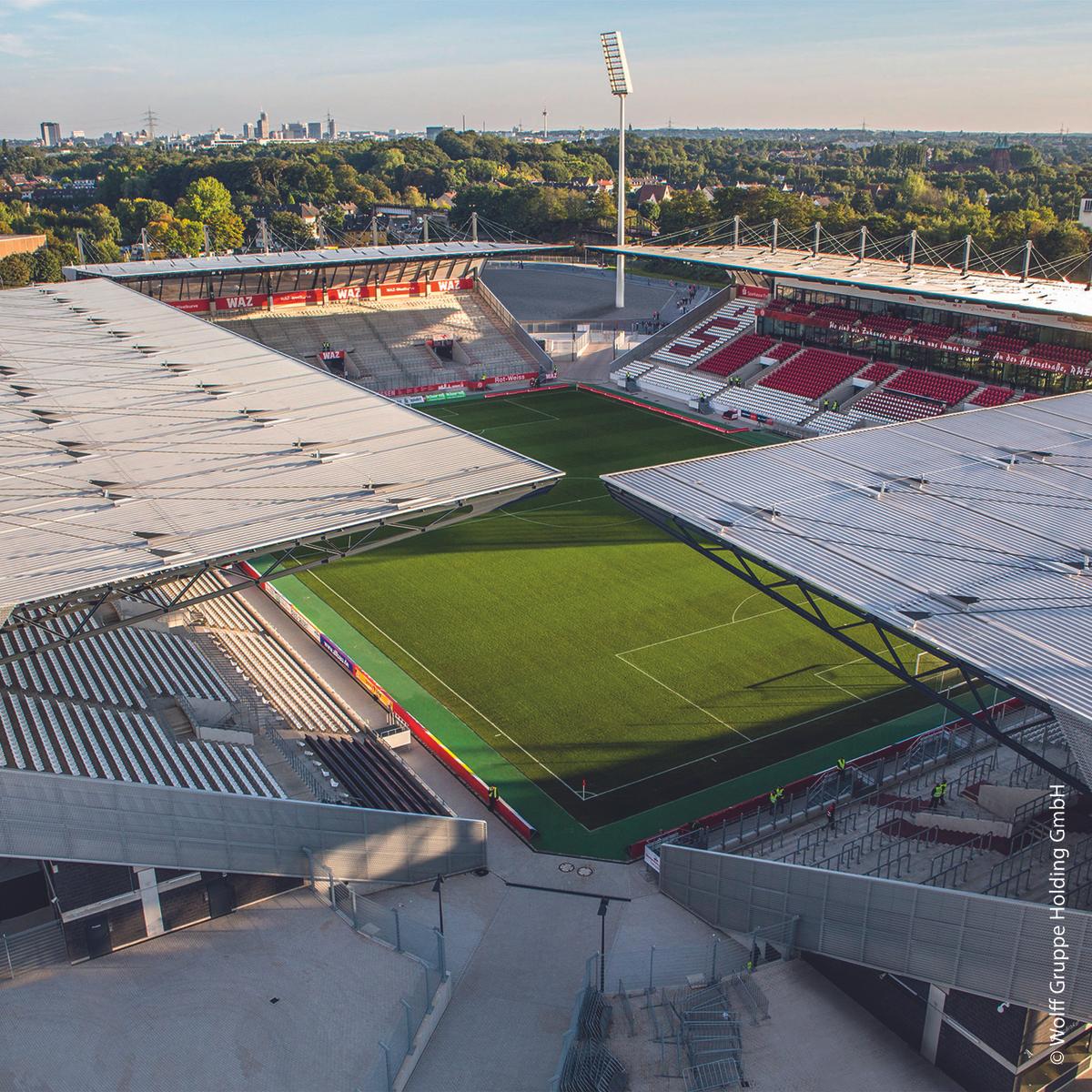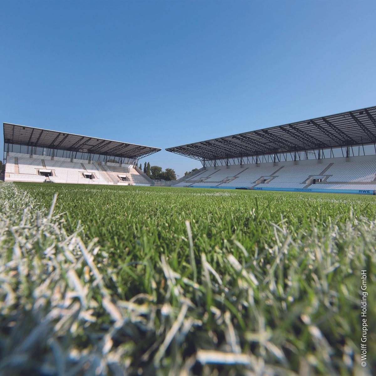 Das Stadion Essen entstand an der Hafenstraße im Ortsteil Bergeborbeck unweit seines Vorgängers, des legendären Georg-Melches-Stadions. Um dem Neubau an historischer Stätte alle Chancen für die Zukunft einzuräumen, entschied man sich für ein Konzept mit mehreren Ausbaustufen, sodass das Stadion mit dem Erfolg der Vereine mitwachsen kann. Damit dieses Wachstum auf einer sicheren Basis steht, wurden zunächst 450 Stahlbeton-Bohrpfähle bis in eine Tiefe von rund 17 m in den Boden eingebracht. Kaum einen Monat später begannen die Hochbauarbeiten. Unter Einhaltung aller Fristen konnte so der reibungslose Übergang vom geschichts- zum zukunftsträchtigen Stadion realisiert werden.