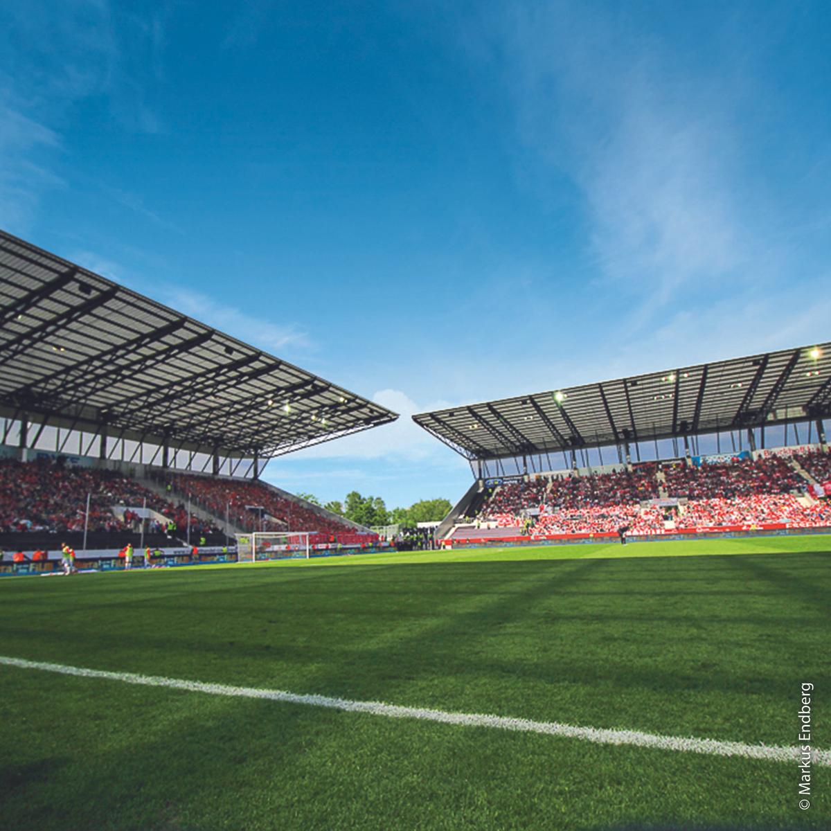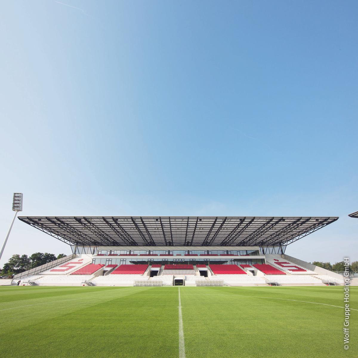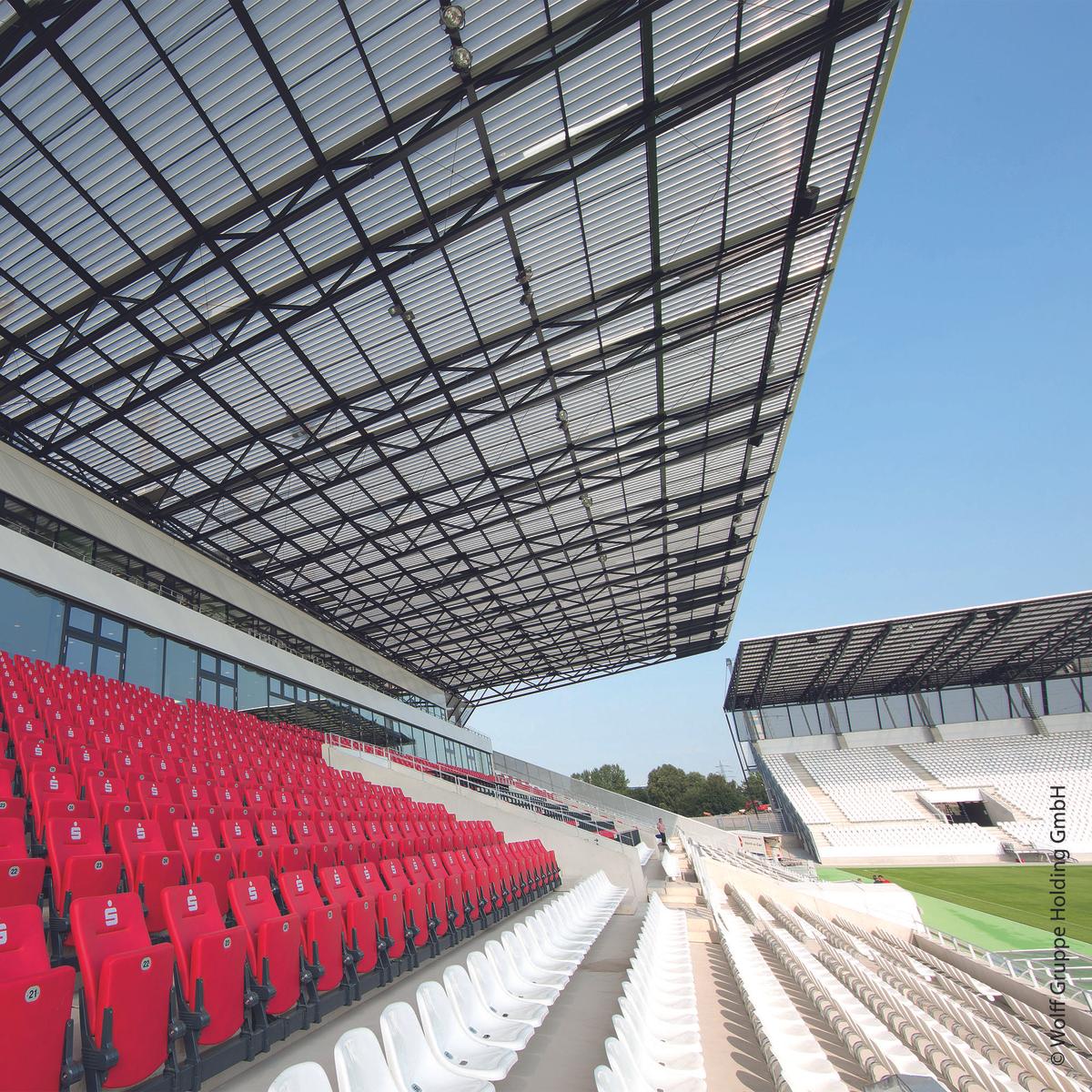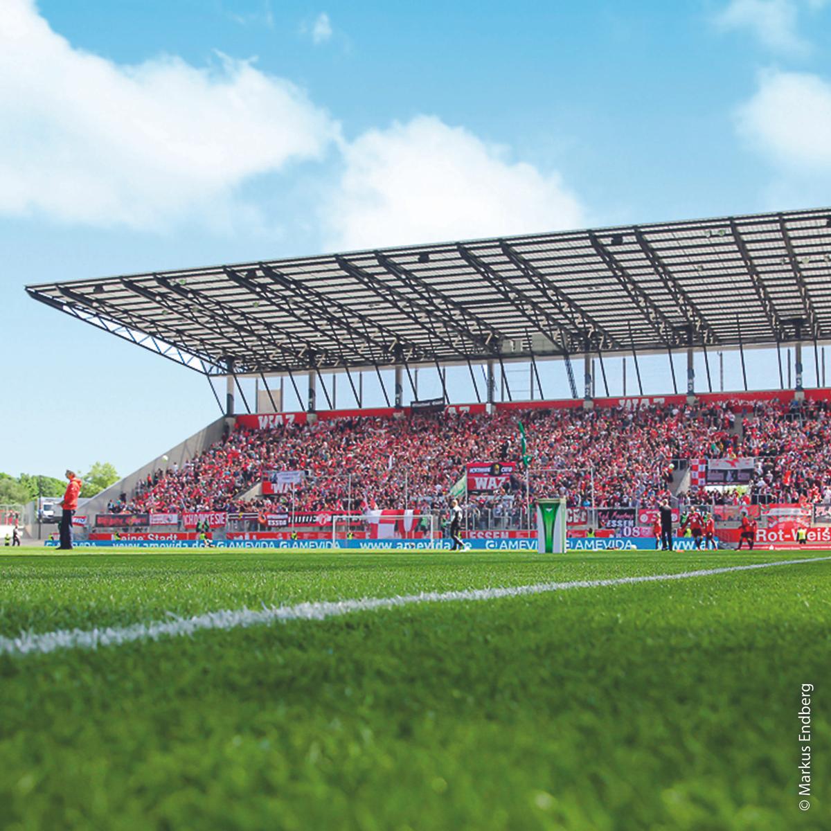 Das Stadion Essen entstand an der Hafenstraße im Ortsteil Bergeborbeck unweit seines Vorgängers, des legendären Georg-Melches-Stadions. Um dem Neubau an historischer Stätte alle Chancen für die Zukunft einzuräumen, entschied man sich für ein Konzept mit mehreren Ausbaustufen, sodass das Stadion mit dem Erfolg der Vereine mitwachsen kann. Damit dieses Wachstum auf einer sicheren Basis steht, wurden zunächst 450 Stahlbeton-Bohrpfähle bis in eine Tiefe von rund 17 m in den Boden eingebracht. Kaum einen Monat später begannen die Hochbauarbeiten. Unter Einhaltung aller Fristen konnte so der reibungslose Übergang vom geschichts- zum zukunftsträchtigen Stadion realisiert werden.