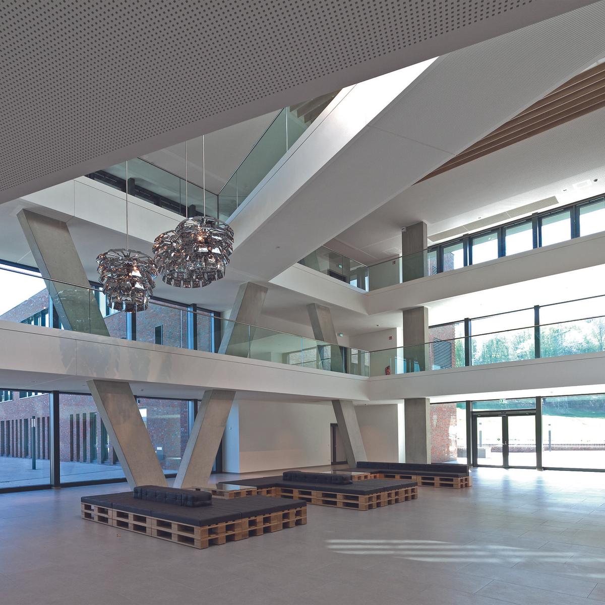 Schlüsselfertiger Neubau des Unternehmenscampus mit 30 Seminar- und Besucherräumen sowie angrenzendem workwearstore® inkl. Außenanlagen. Das Foyer mit seinen verglasten Brücken wurde mittels V-Stützen realisiert. Mit einer klaren Kosten- und Terminstruktur wurde die Immobilie in vereinbarter Qualität pünktlich an den Kunden übergeben.