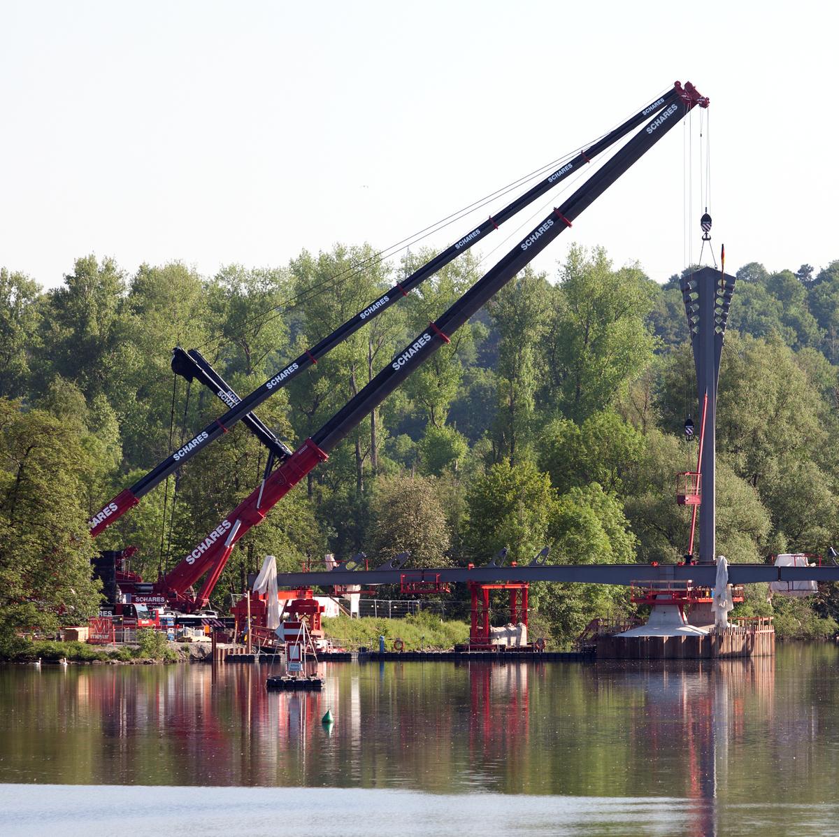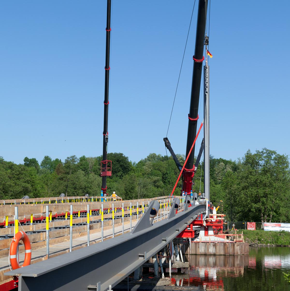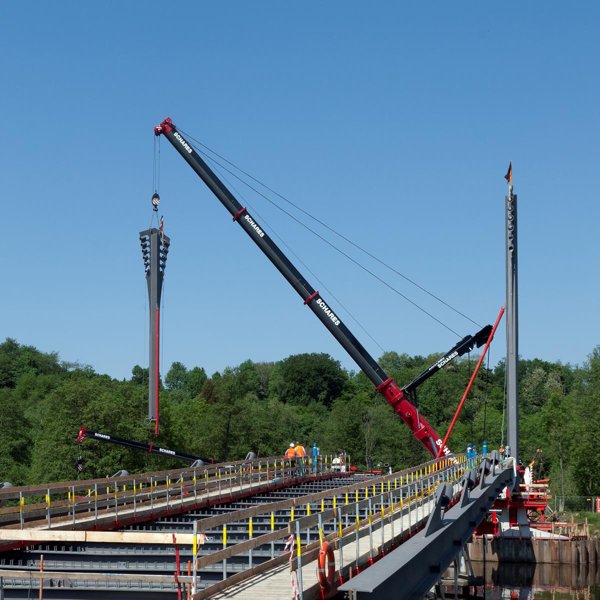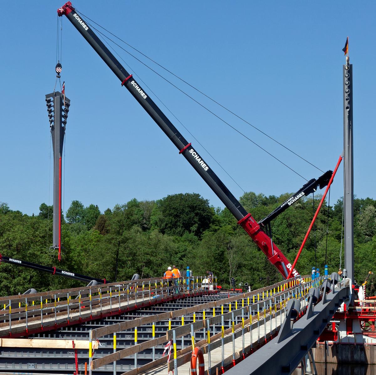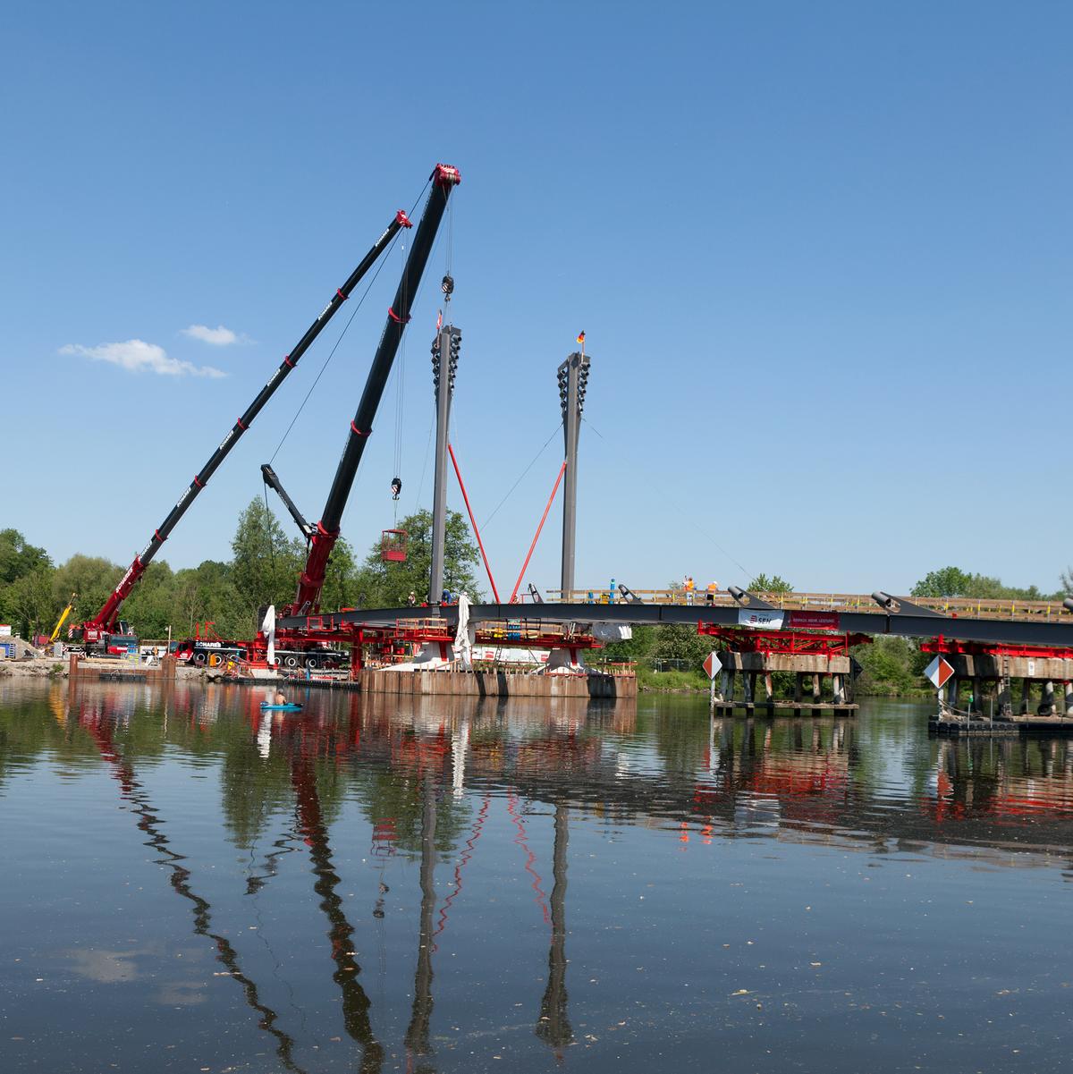 Rückbau der Altbrücke und anschließende Ausführung sämtlicher Erdarbeiten zur Gründung sowie Erneuerung von 1 km Straßenkörper mit Entwässerung und Versorgungsleitungen für den Neubau der 113 m langen Schrägseilbrücke über die Ruhr zwischen Essen-Heisingen und Essen-Kupferdreh in Arge.
