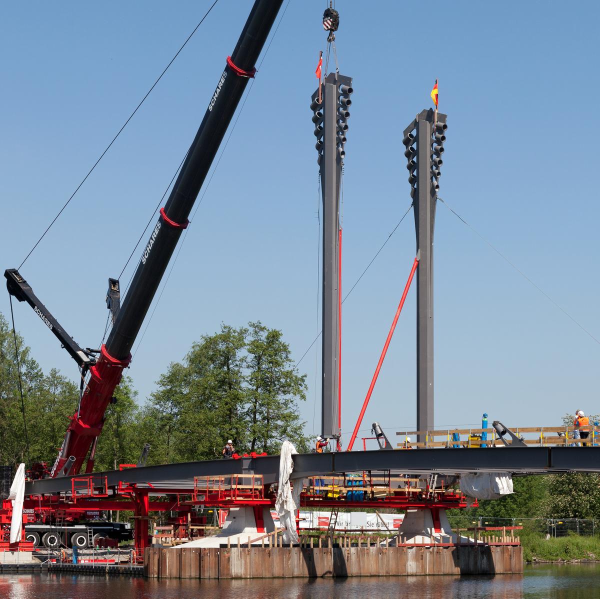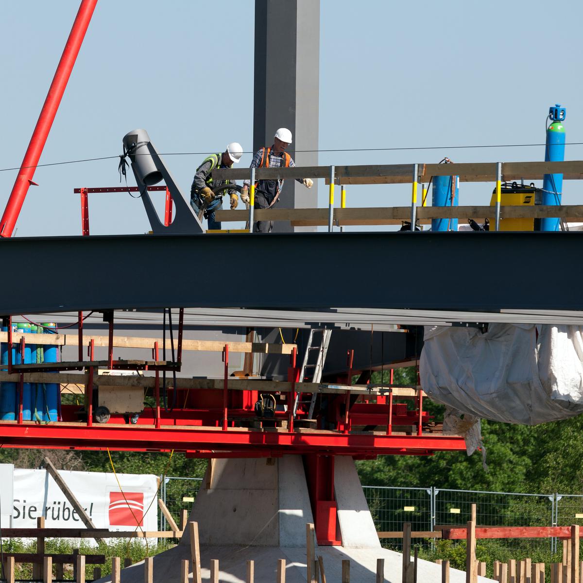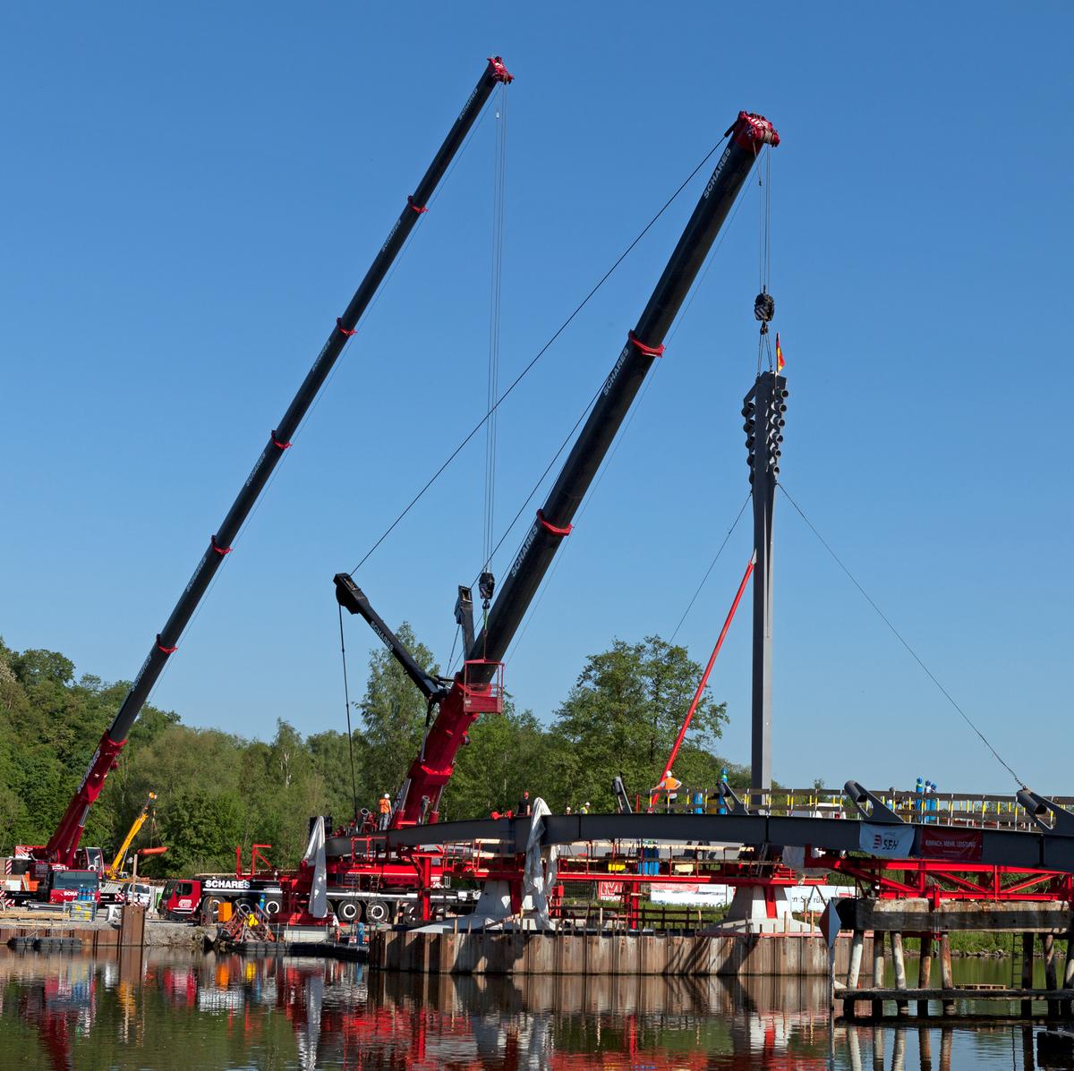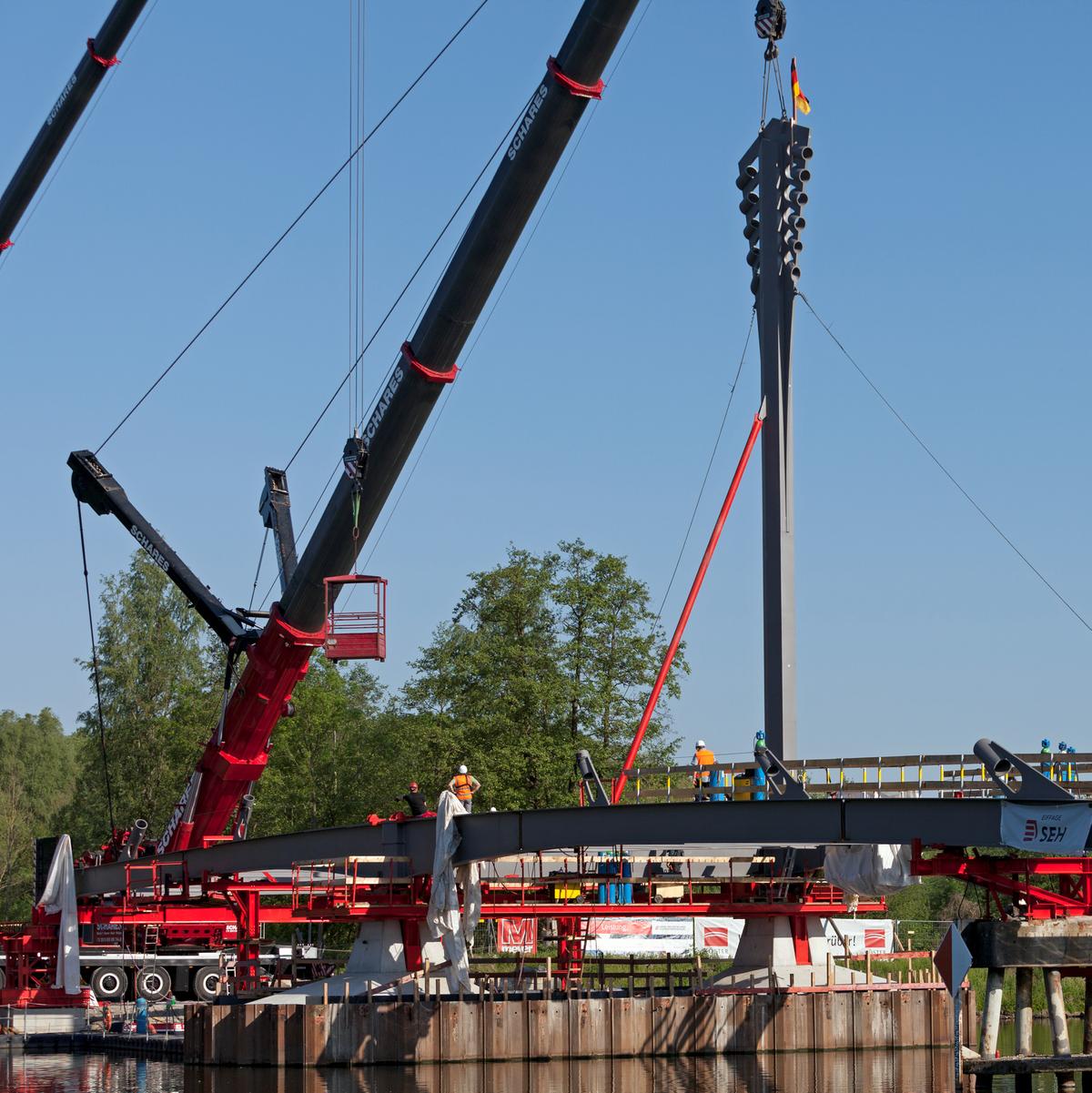 Rückbau der Altbrücke und anschließende Ausführung sämtlicher Erdarbeiten zur Gründung sowie Erneuerung von 1 km Straßenkörper mit Entwässerung und Versorgungsleitungen für den Neubau der 113 m langen Schrägseilbrücke über die Ruhr zwischen Essen-Heisingen und Essen-Kupferdreh in Arge.