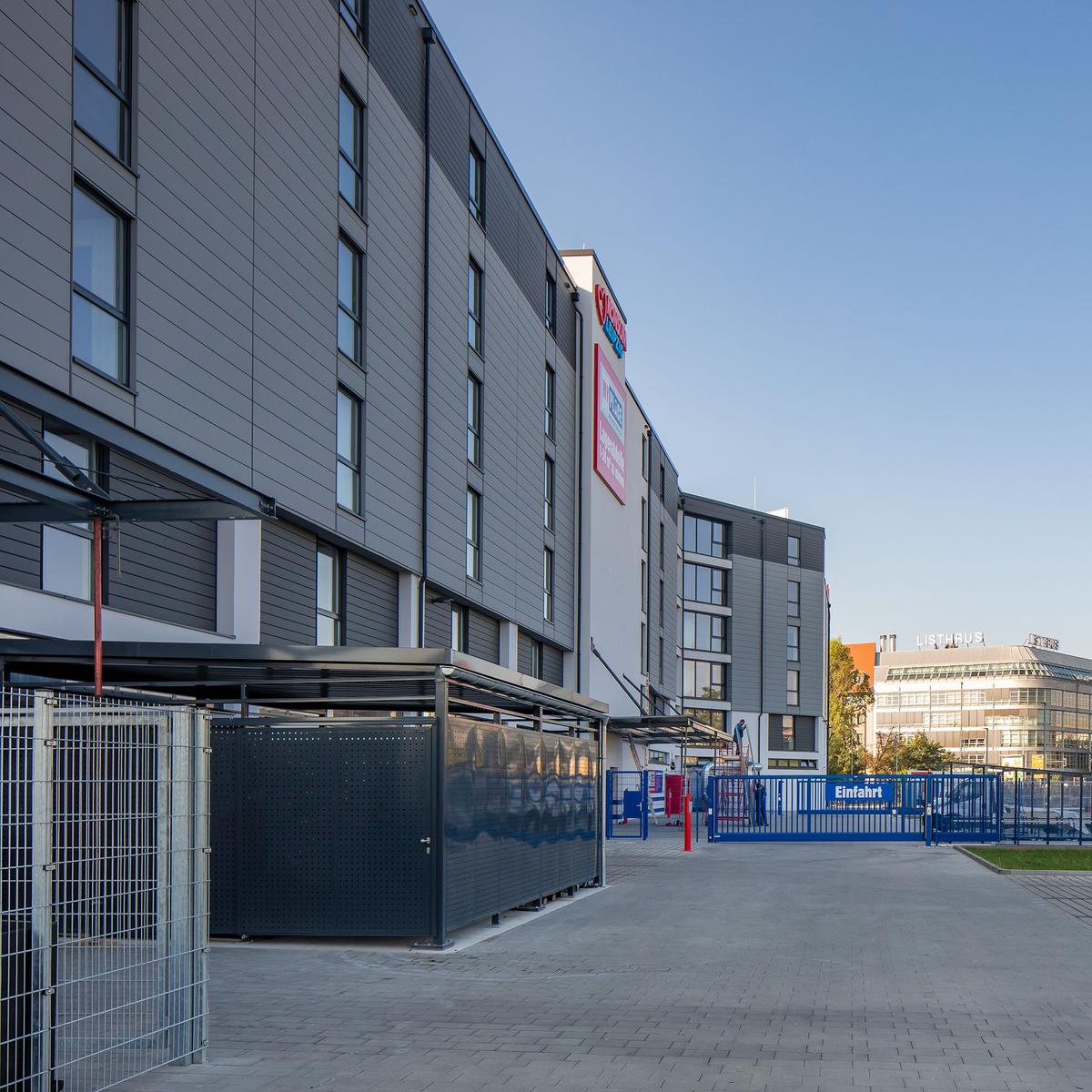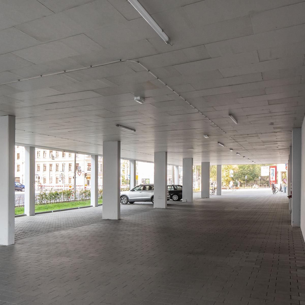 Rohbau eines Lagergebäudes mit Einzelhandelsflächen im Erdgeschoss. Der monolithische Stahlbetonbau besteht aus sechs Vollgeschossen, wobei das fünfte Obergeschoss zurückgesetzt ist. Die Erschließung der Etagen durch drei Treppenhäuser und zwei Aufzüge ermöglicht optimale Zugangsmöglichkeiten zu den einzelnen Lagerabteilen. Basierend auf einer Detailterminplanung inklusive Visualisierung konnte die Bauzeit optimiert werden.