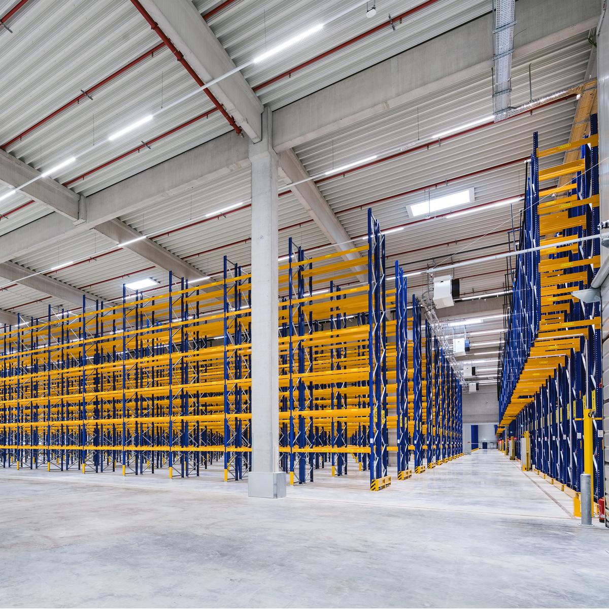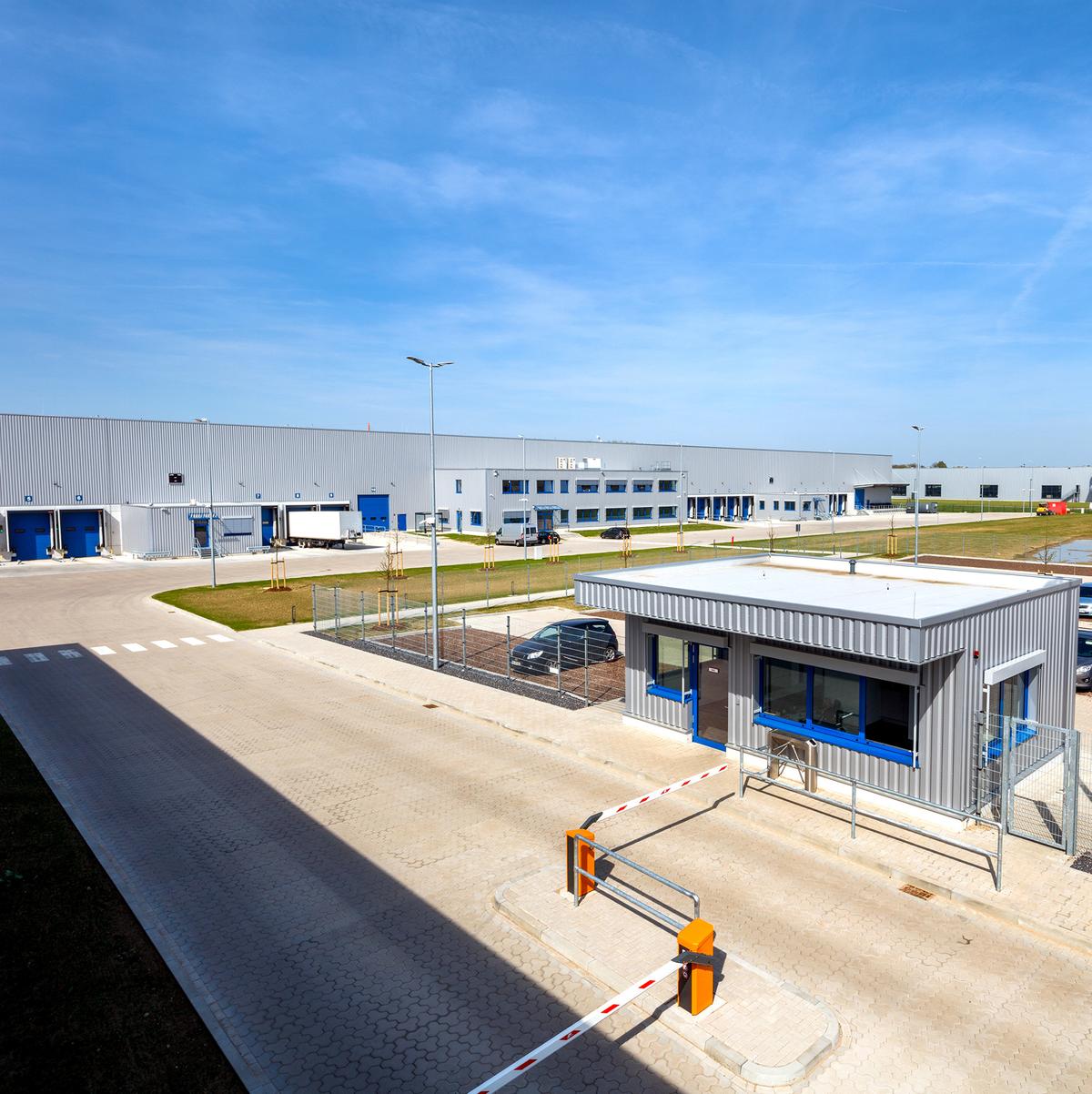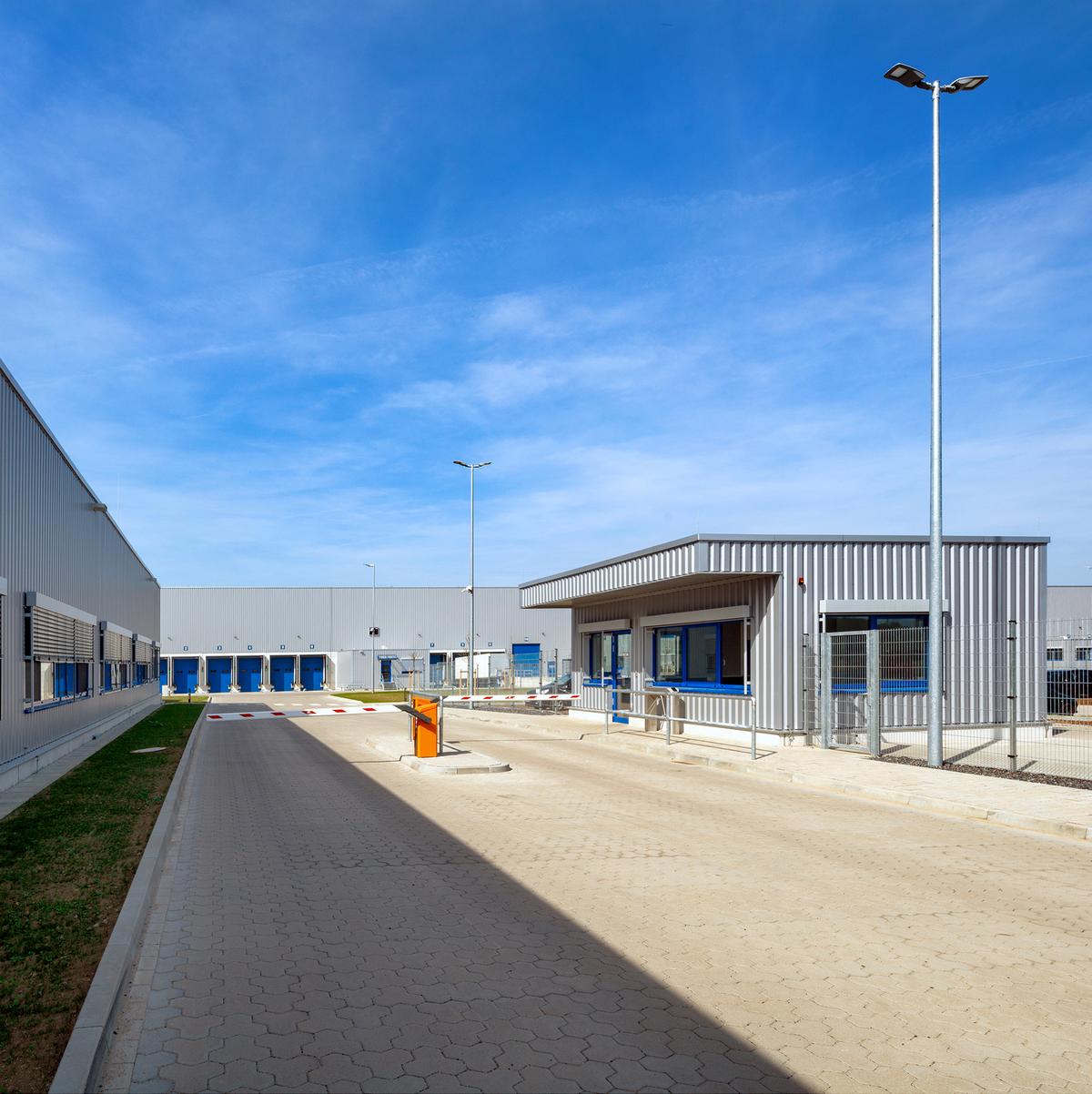 Schlüsselfertiger Neubau einer eingeschossigen Logistikhalle sowie zweigeschossigem Gebäude für Büro-, Sozial-, Technikräume inkl. Außenanlagen im Logistikzentrum. Die Halle ist mit einem WHG-Boden ausgestattet und verfügt über einen abschließbaren Tresorbereich. Die Kühlanlage ermöglicht eine permanente Halleninnentemperatur von 15° bis 25° Celsius. Der Kühllagerbereich umfasst 1.150 m² und wird im Temperaturbereich 2° bis 8° Celsius betrieben. Die Bauleistung beinhaltete ebenfalls dein Einbau von Schienen, Bewehrung, Unterbeton für die Installation von Verschieberegalanlagen.