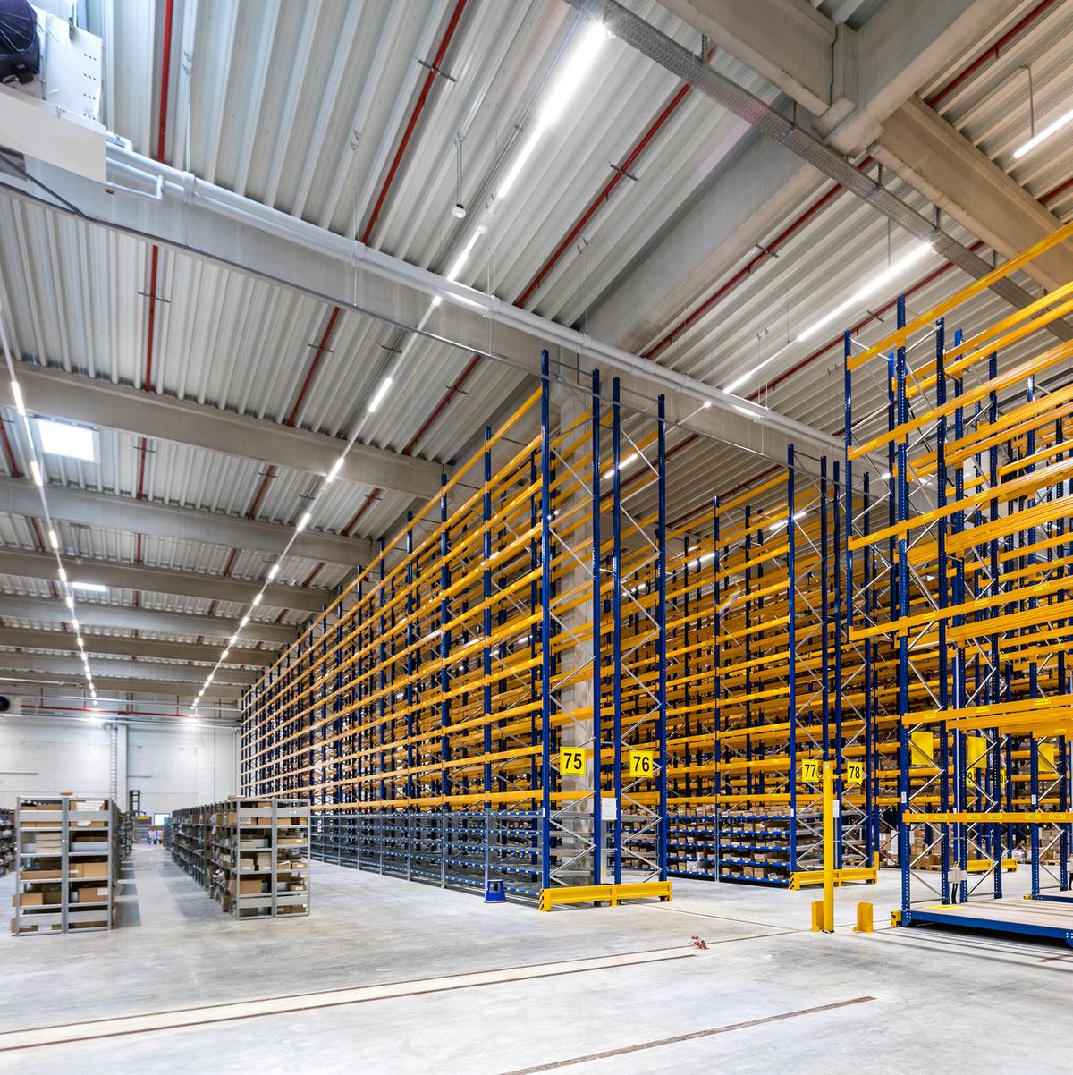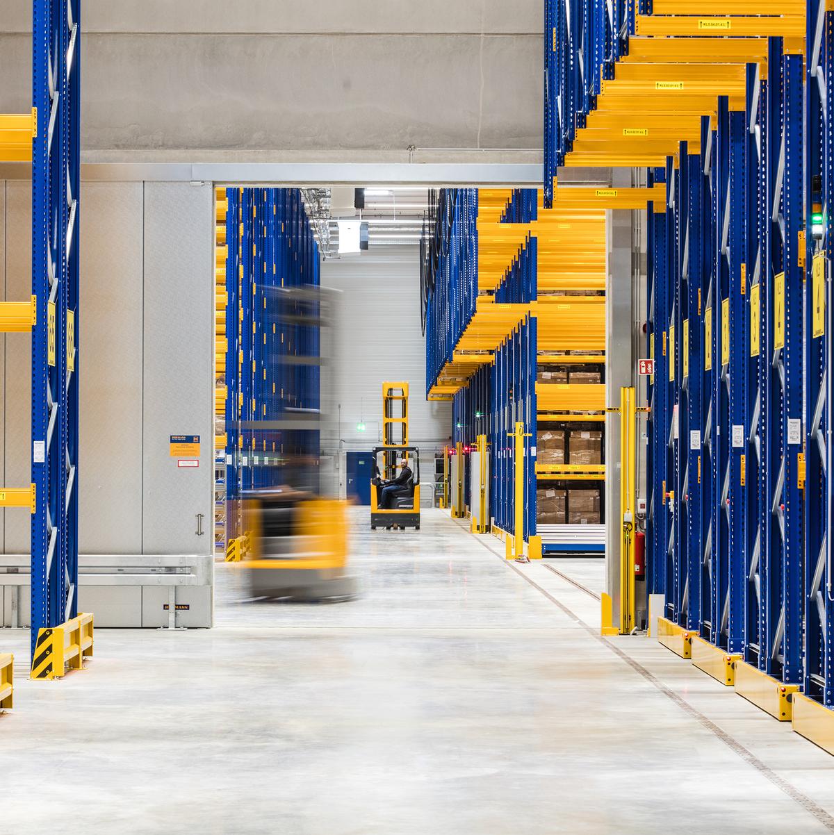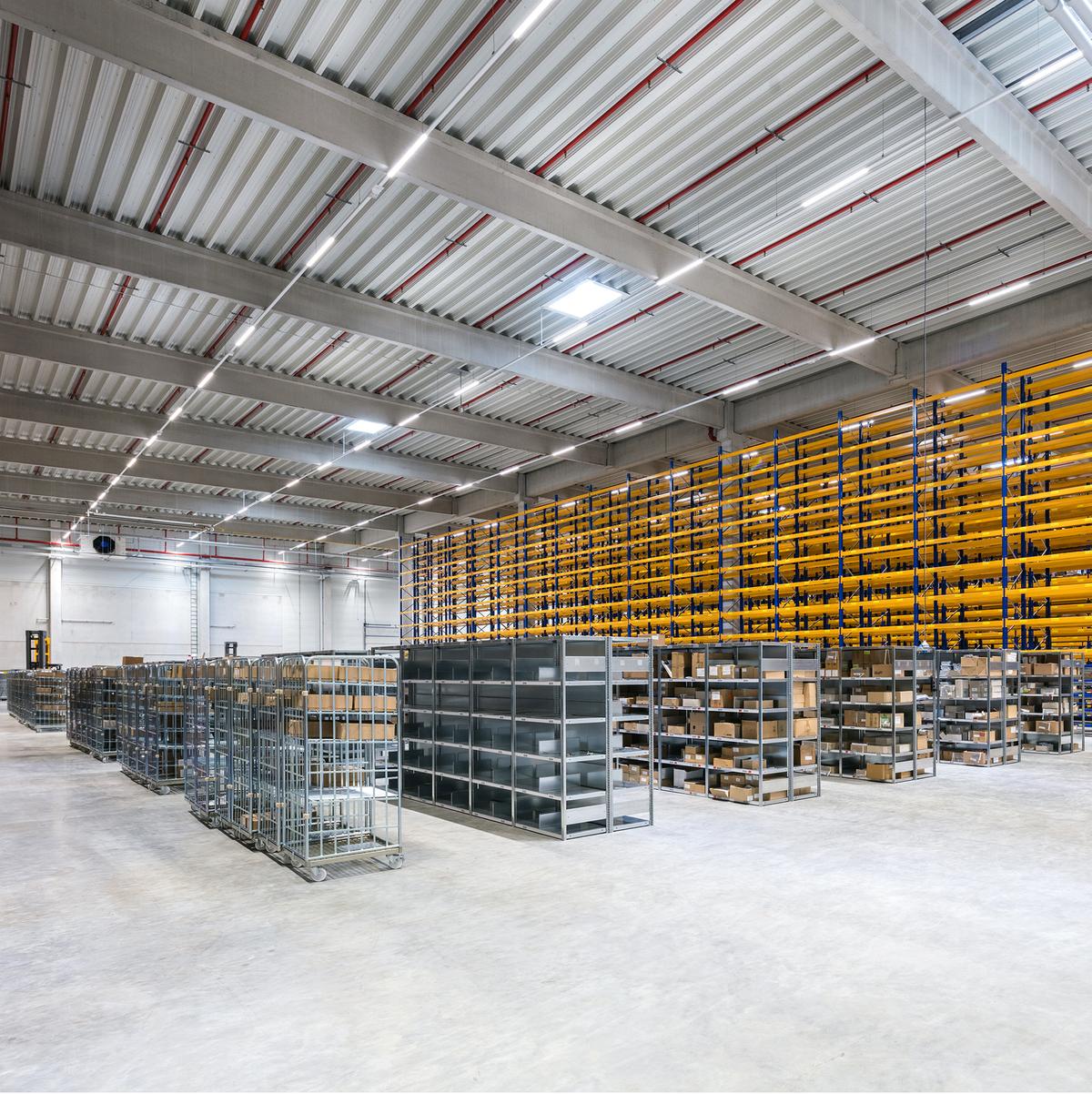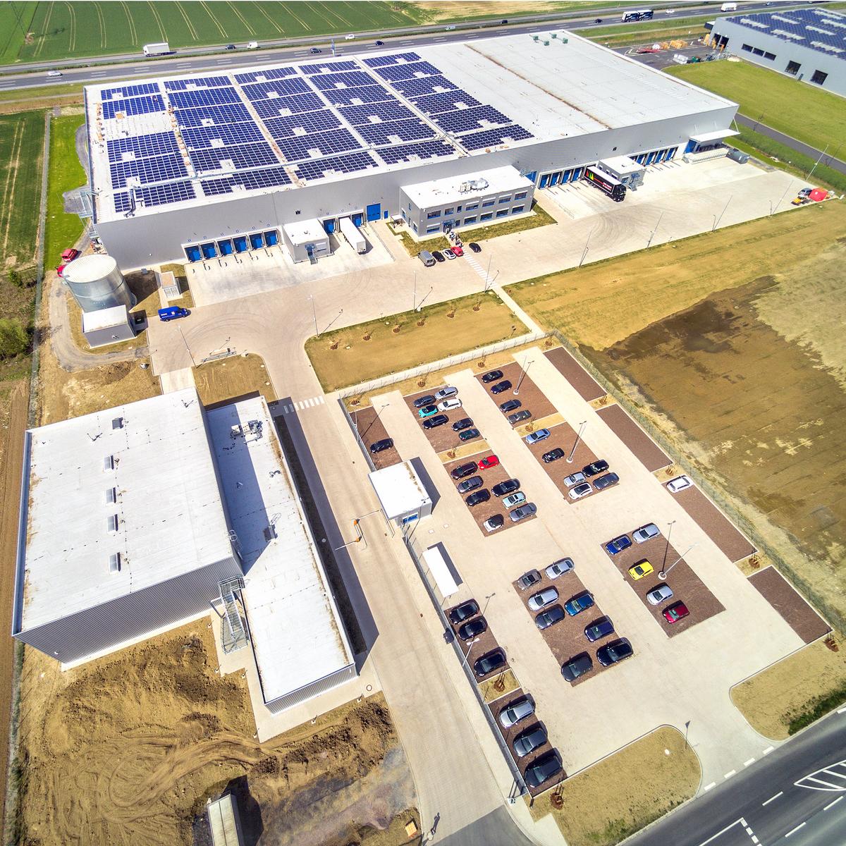Schlüsselfertiger Neubau einer eingeschossigen Logistikhalle sowie zweigeschossigem Gebäude für Büro-, Sozial-, Technikräume inkl. Außenanlagen im Logistikzentrum. Die Halle ist mit einem WHG-Boden ausgestattet und verfügt über einen abschließbaren Tresorbereich. Die Kühlanlage ermöglicht eine permanente Halleninnentemperatur von 15° bis 25° Celsius. Der Kühllagerbereich umfasst 1.150 m² und wird im Temperaturbereich 2° bis 8° Celsius betrieben. Die Bauleistung beinhaltete ebenfalls dein Einbau von Schienen, Bewehrung, Unterbeton für die Installation von Verschieberegalanlagen.