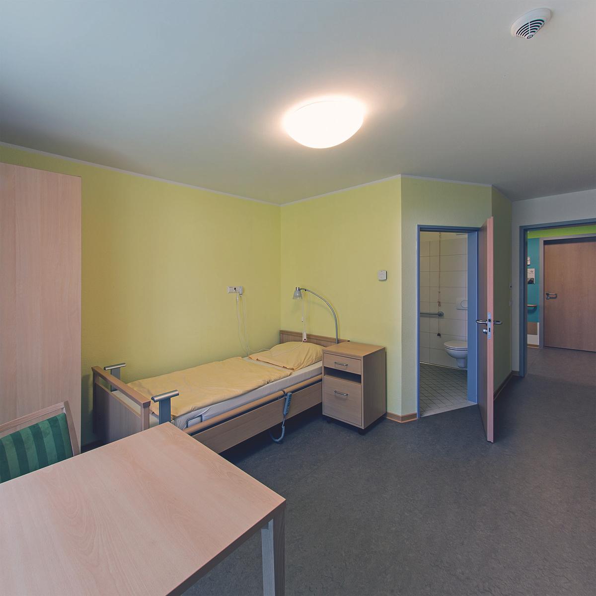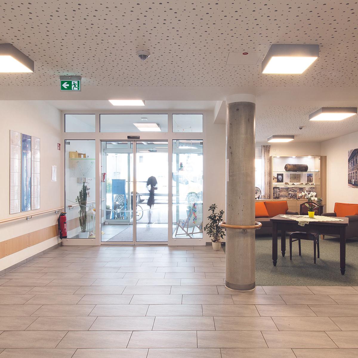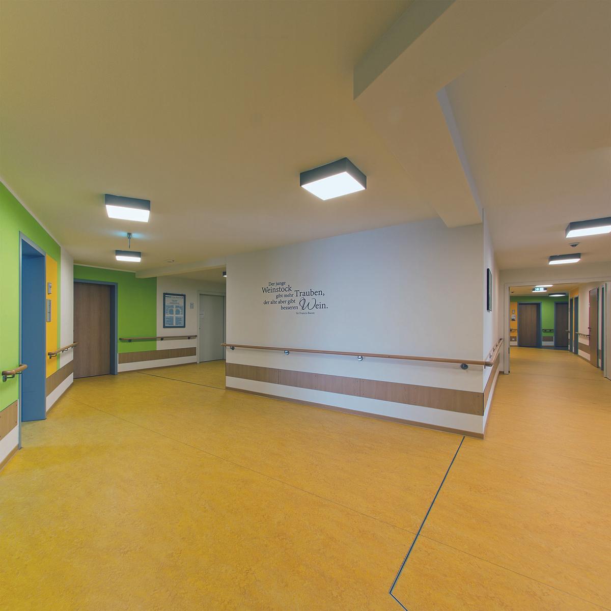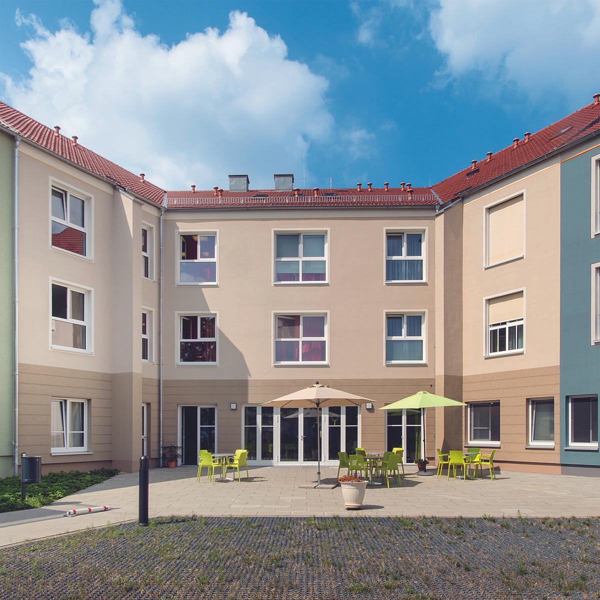 Schlüsselfertiger Neubau des Seniorenpflegezentrums Goldener Stern mit 92 Pflegezimmern. Die Architektur des Altenpflegeheims nach dem KfW-70-Standard passt sich der Bebauung im Herzen der Altstadt an. Mit Hilfe der Last Planner-Methode steuerte Köster die Taktplanung für den Ausbau, sodass die kurze Planungs- und Bauzeit eingehalten wurde.