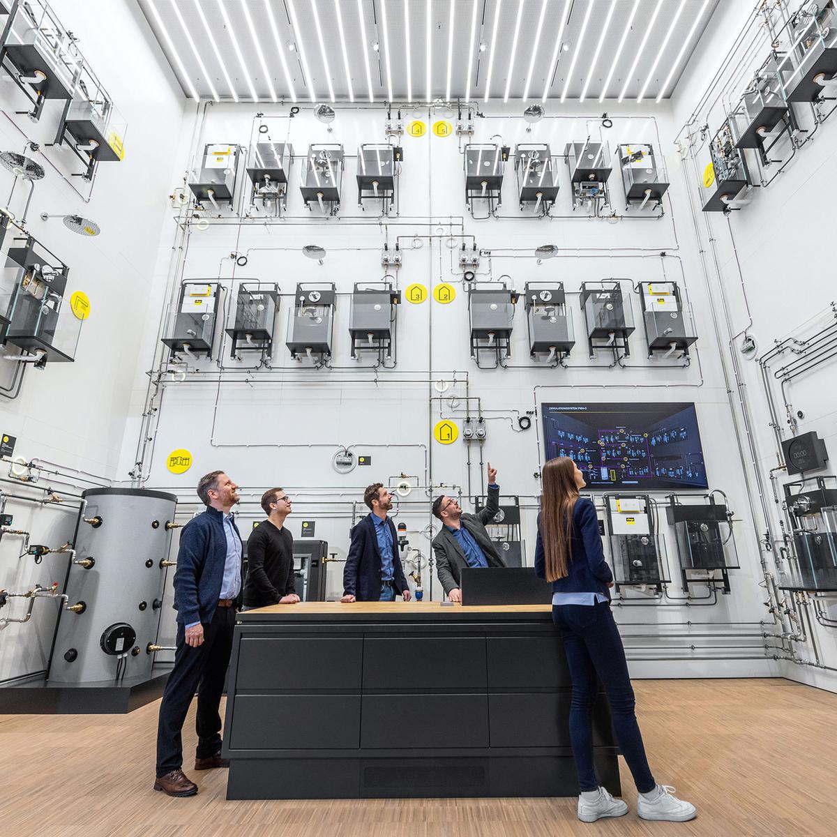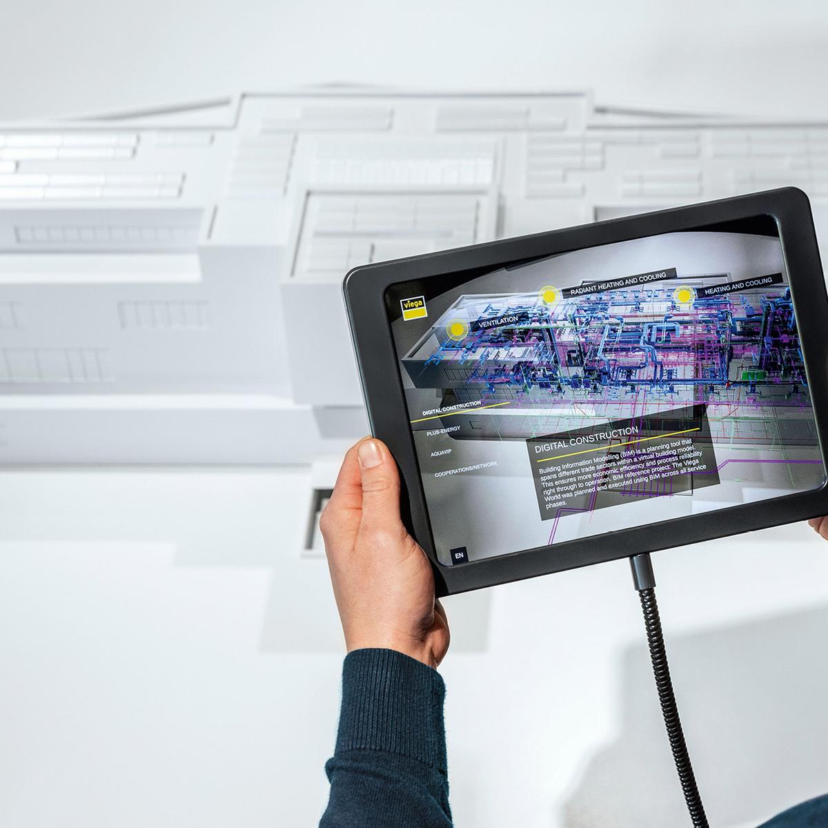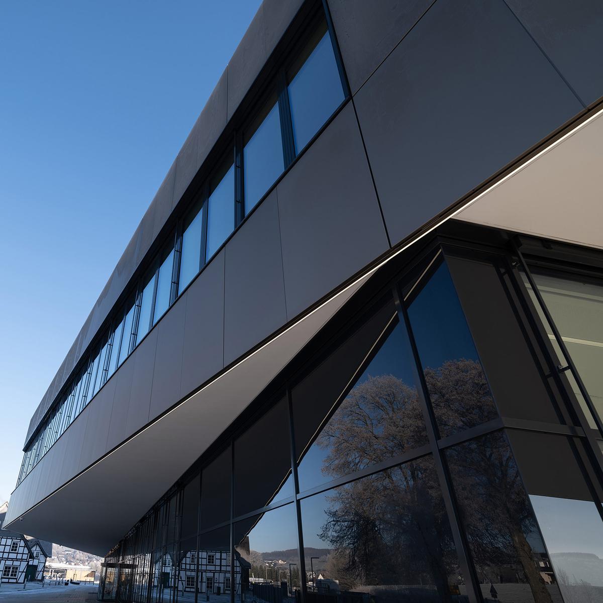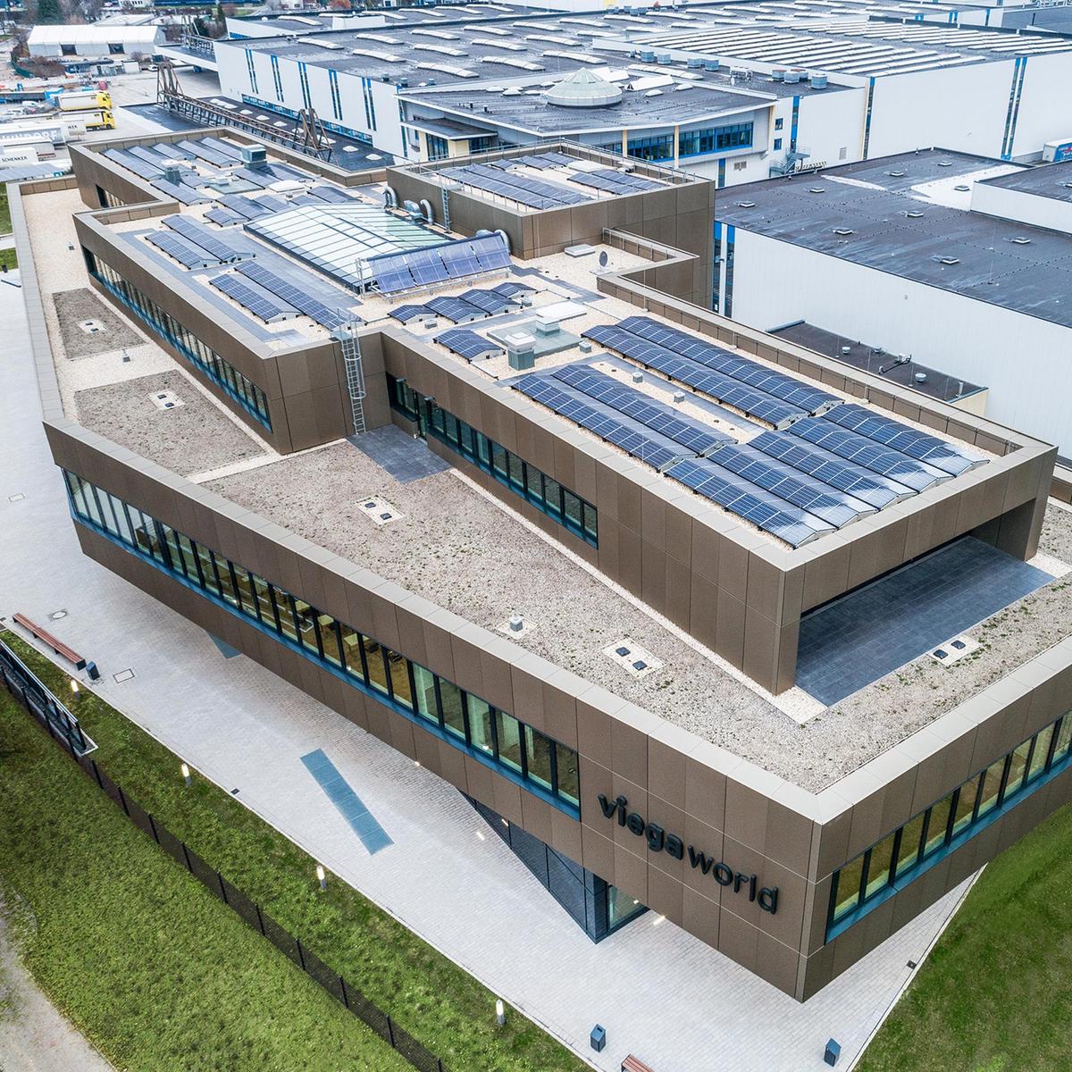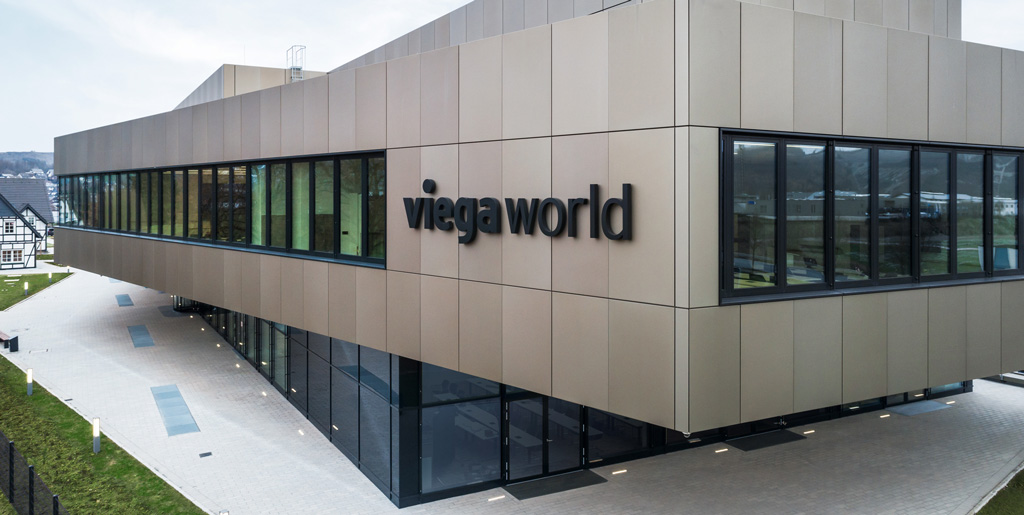 Das fünf-geschossige Gebäude in Hanglage wurde zwischen zwei Bestandsgebäude realisiert und ist nach der DGNB (Deutsche Gesellschaft für nachhaltiges Bauen) mit Platin zertifiziert. Das Projekt wurde im Closed-BIM-Verfahren konzipiert und binnen 22 Monaten errichtet. Die hier gezeigten Fotos hat uns VIEGA zur Verfügung gestellt.