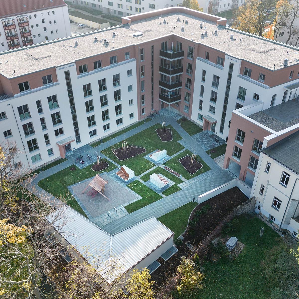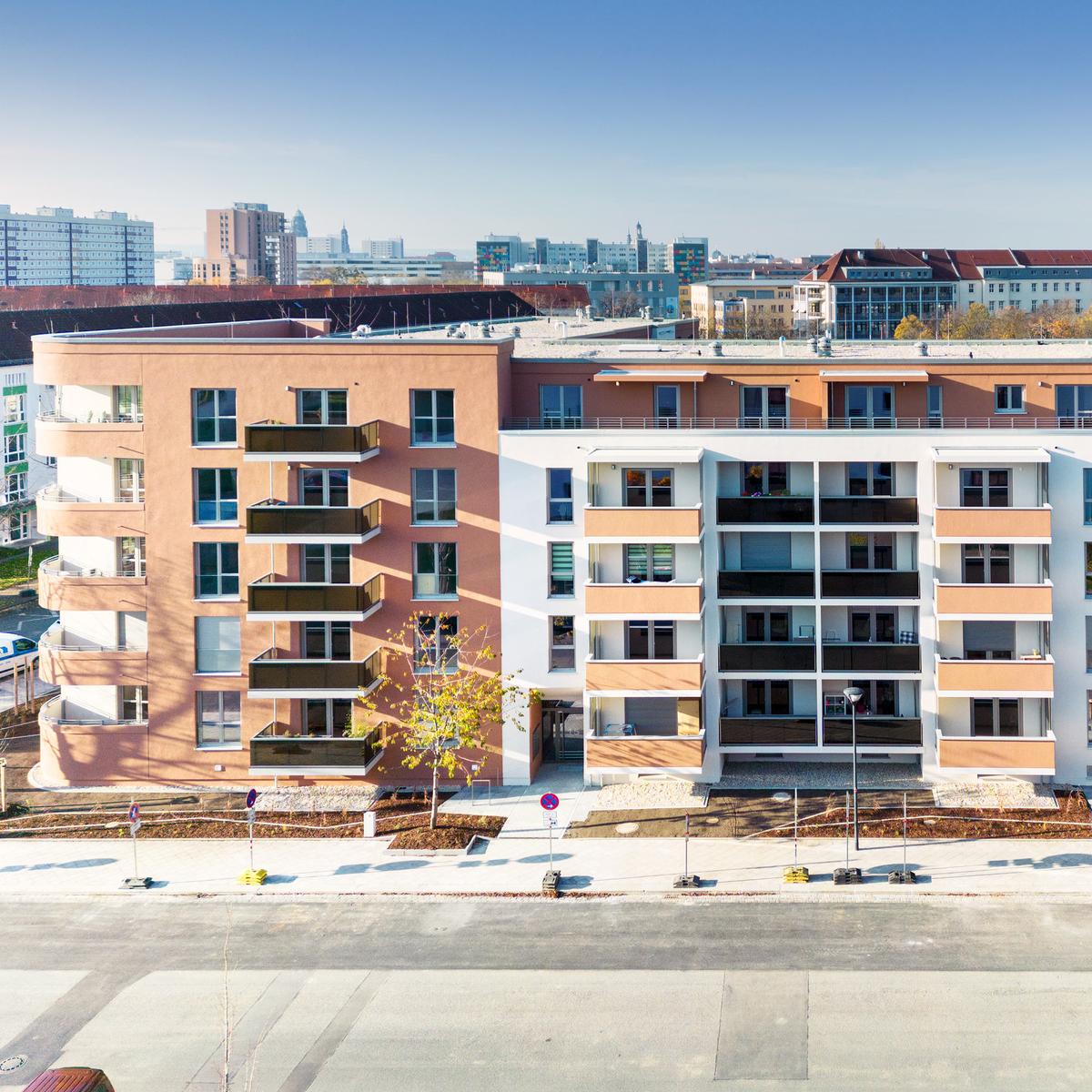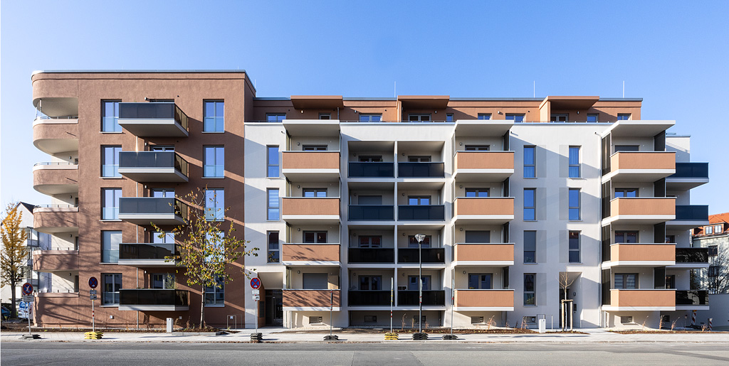 Auf einer Bruttogeschossfläche von über 8.115 m² realisierte Köster in Dresden ein sechs geschossiges Wohnhaus mit 61 Wohnungen und 43 Tiefgaragenplätzen. Die Außenfassade des Gebäudes wurde zum Teil aufwendig verklinkert und unterstreicht die hohe Ausführungsqualität, die sich besonders im Inneren des Wohnhauses zeigt. Herausfordernd hierbei war der Abriss der Altbebauung und der Anschluss an die Nachbarbebauung. Dennoch konnte unter Einhaltung des Kostenrahmens das Bauvorhaben termingerecht an den Kunden übergeben werden.