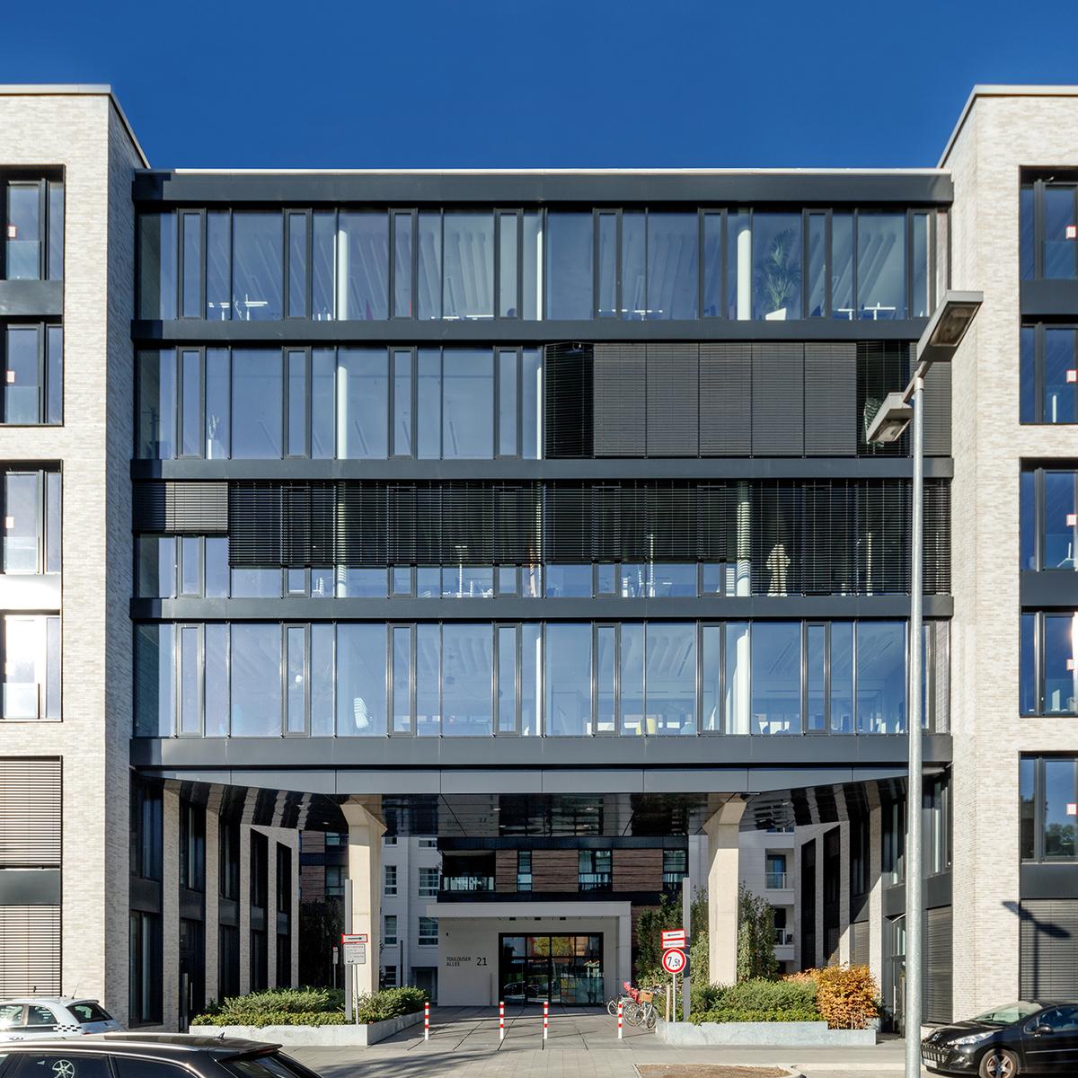Schlüsselfertiger Neubau eines Büro- / Verwaltungsgebäudes mit 8.000 qm Nutzfläche inkl. zweigeschossiger Tiefgarage mit 125 Pkw-Stellplätzen. In enger Abstimmung mit den Mietern und Fachplanern wurden die individuellen Wünsche noch in der kurzen Bauzeit realisiert. Ein detailliertes Logistikkonzept ermöglichte die termingerechte Nutzung der Immobilie.