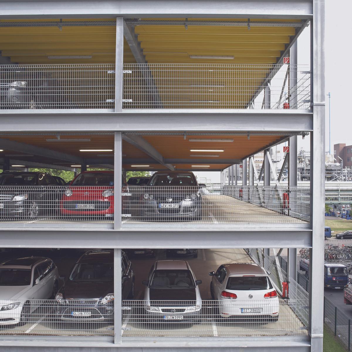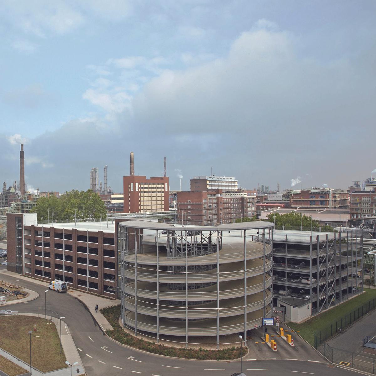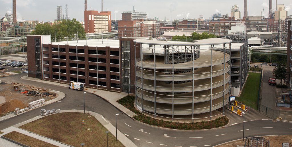 Neubau des Mitarbeiter-Parkhauses K48 mit 1.000 Stellplätzen im Chemiepark der Bayer AG.