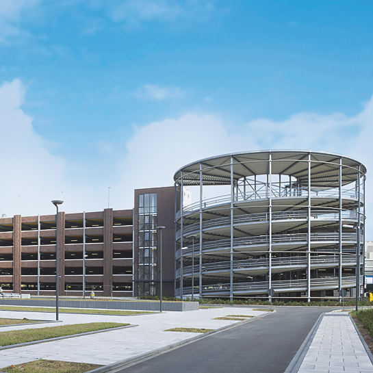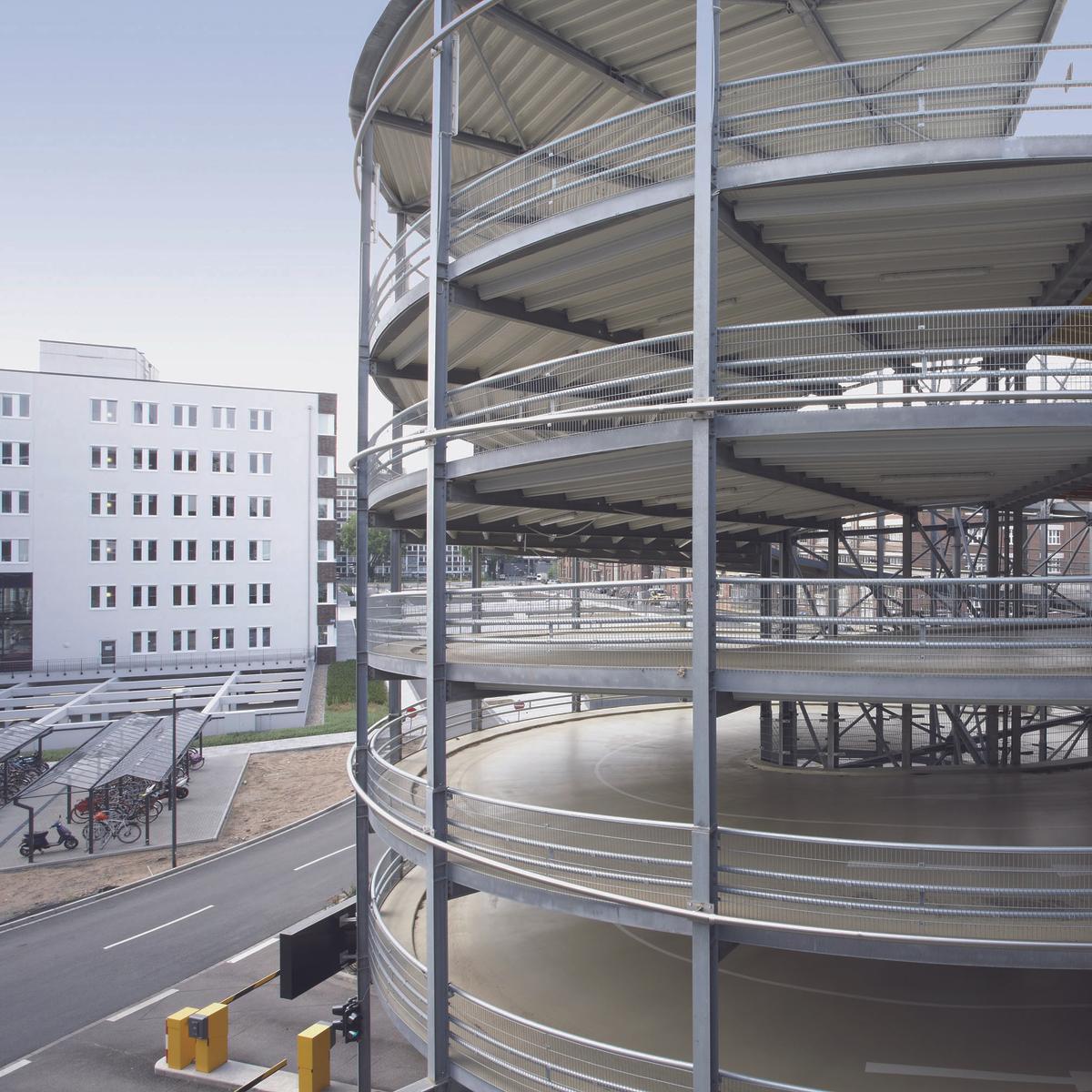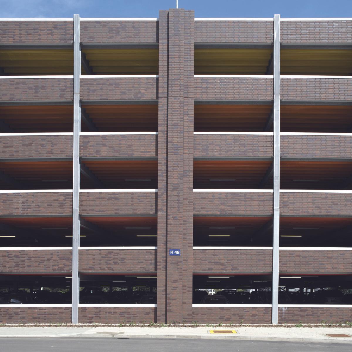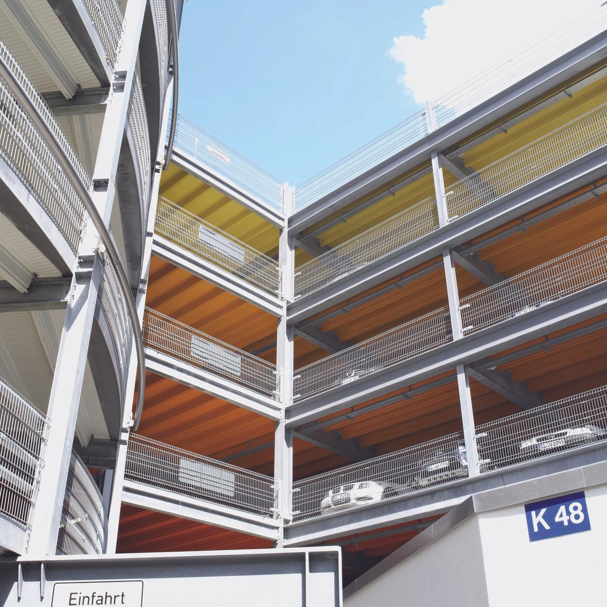 Neubau des Mitarbeiter-Parkhauses K48 mit 1.000 Stellplätzen im Chemiepark der Bayer AG.