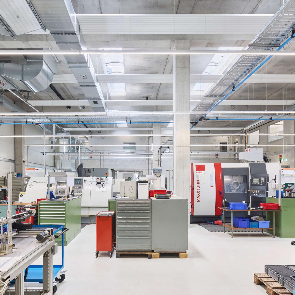 In 13 Monaten Bauzeit errichtete Köster den neuen Verwaltungs- und Produktionsstandort der Unternehmen Phytron und PressFinish. Dabei setzte das Köster-Team von der Planung bis zur Ausführung kundenindividuelle Anforderungen um, die eine explosionsgeschützte Abluftanlage in der Produktionshalle sowie Klima- und Kältegeräte für Serverräume umfassen. Trotz der erhöhten Anforderungen konnte eine termingerechte Übergabe sichergestellt werden.