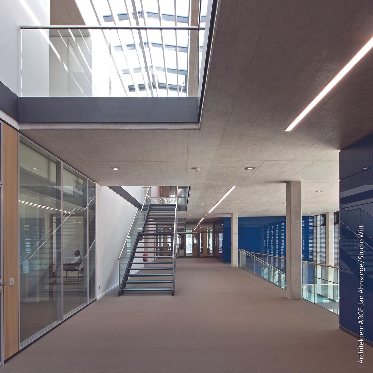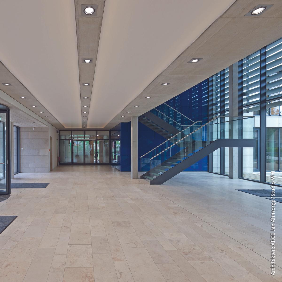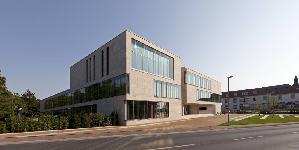 Für das IKN GmbH Ingenieurbüro Kühlerbau Neustadt errichtete Köster den schlüsselfertigen Neubau eines Planungszentrums mit Tiefgarage. Durch die aufwendige Naturstein- und Pfosten-Riegel-Fassade fügt sich das dreigeschossige Verwaltunggebäude perfekt in das Stadtbild von Neustadt am Rübenberge ein. Darüber hinaus spiegelt die Fassade – wie auch der Sichtbeton im Inneren – den hohen architektonischen Anspruch des Bauwerks wider, das zudem mit einem durchdachten Energiekonzept überzeugt. Mit Sondervorschlägen senkte die Köster GmbH die Kosten für den Kunden und verkürzte die Bauzeit, so dass die Übergabe bereits nach 14 Monaten erfolgte.