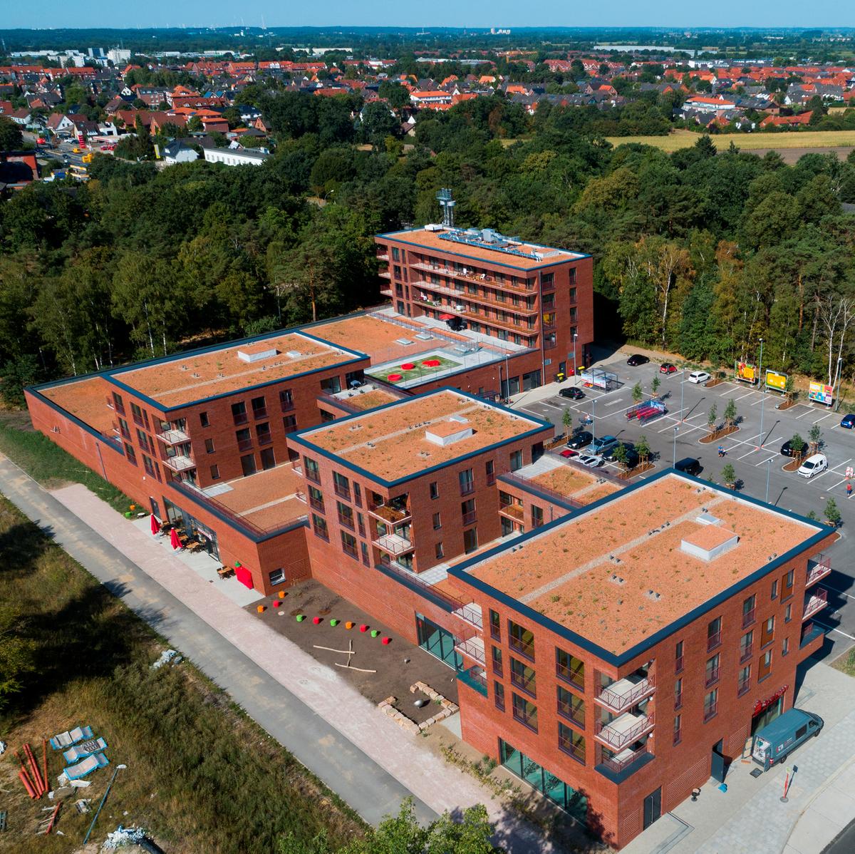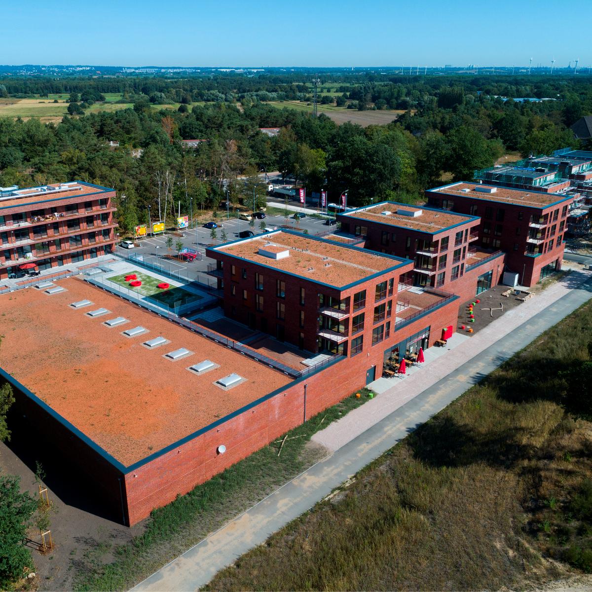 Schlüsselfertiger Neubau eines Nahversorgungszentrums mit Gewerbe- und Dienstleistungsflächen sowie 55 Wohnungen inkl. Tiefbauarbeiten und Ausführungsplanung. Mit Sondervorschlägen für die Fassade sowie im Innenausbau konnte die Immobilie für den Kunden wirtschaftlich optimiert werden. Baubegleitende Änderungswünsche konnten in der geplanten Bauzeit umgesetzt werden.