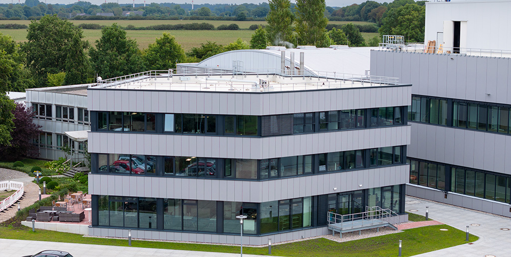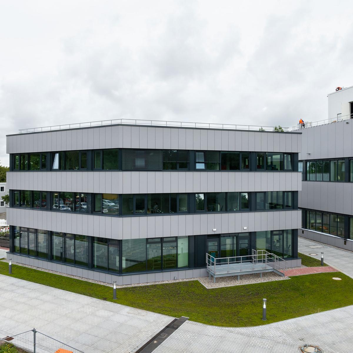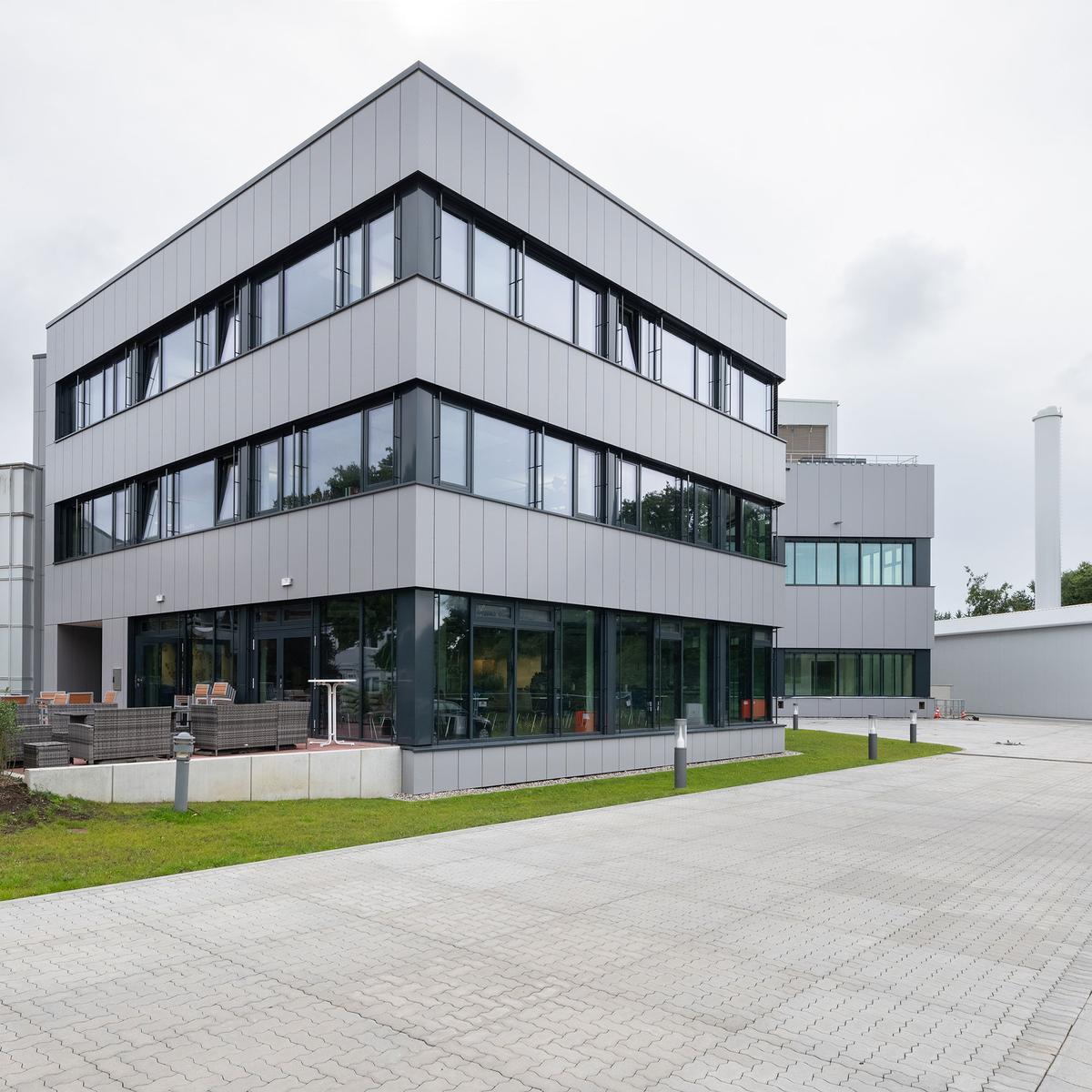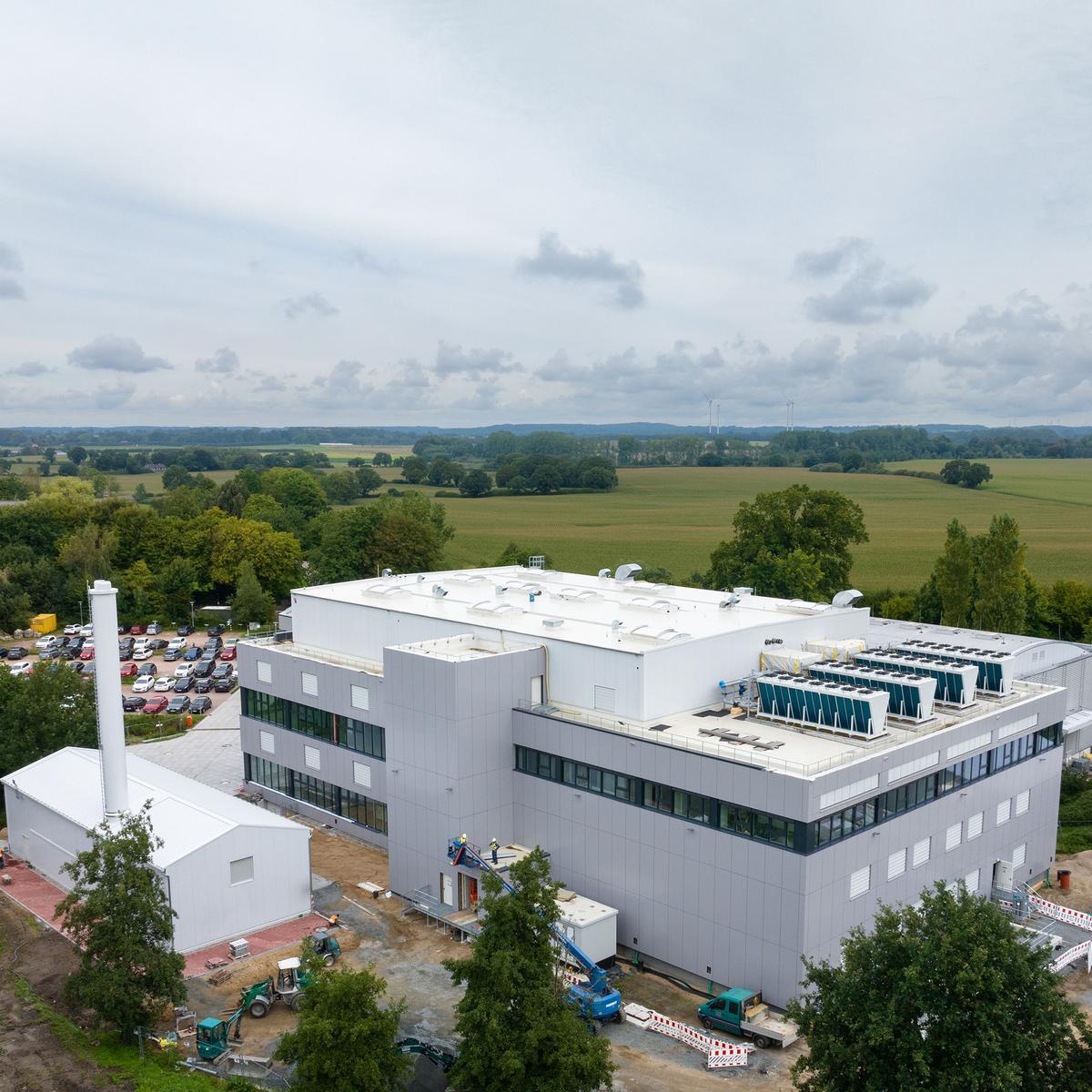 Für die Standorterweiterung eines Bio-Pharmazeutika-Herstellers übernahm Köster die Tiefbauarbeiten, verlegte dabei sämtliche Grund- und Infrastrukturleitungen und erstellte den erweiterten Rohbau inkl. Fassade und Dach für ein Bürogebäude, eine Produktionsstätte und ein Kesselhaus. Herausfordernd hierbei war der Verbau der Alucobond-Fassade an den Gebäuden mit Pfostenriegel-Lichtbändern, Türen und präzisen Öffnungen für umfangreiche Lüftungs- und Brandschutzelemente hinzu. Dies wurde mit BIM erfolgreich umgesetzt.