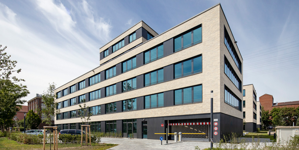 Mit der Erstellung des schlüsselfertigen Neubaus eines 6-geschossigen Bürogebäudes mit Tiefgarage, Außenanlagen inkl. Ausführungsplanung realisierte die Köster GmbH bereits das 4. Bauvorhaben für die Quantum Projektentwicklungs GmbH. Trotz der schwierigen Verbausituation durch eine Hauptstromtrasse mit einem Hochspannungsmast auf dem Grundstück ist es gelungen, alle individuellen Wünsche des Kunden zu verwirklichen und das Projekt termin - und. qualitätsgerecht fertigzustellen. Der Einsatz von Fassadenfertigteilen in der Rohbauphase führte zu einer wirtschaftlichen Bauweise und einer optimalen Bauzeit.