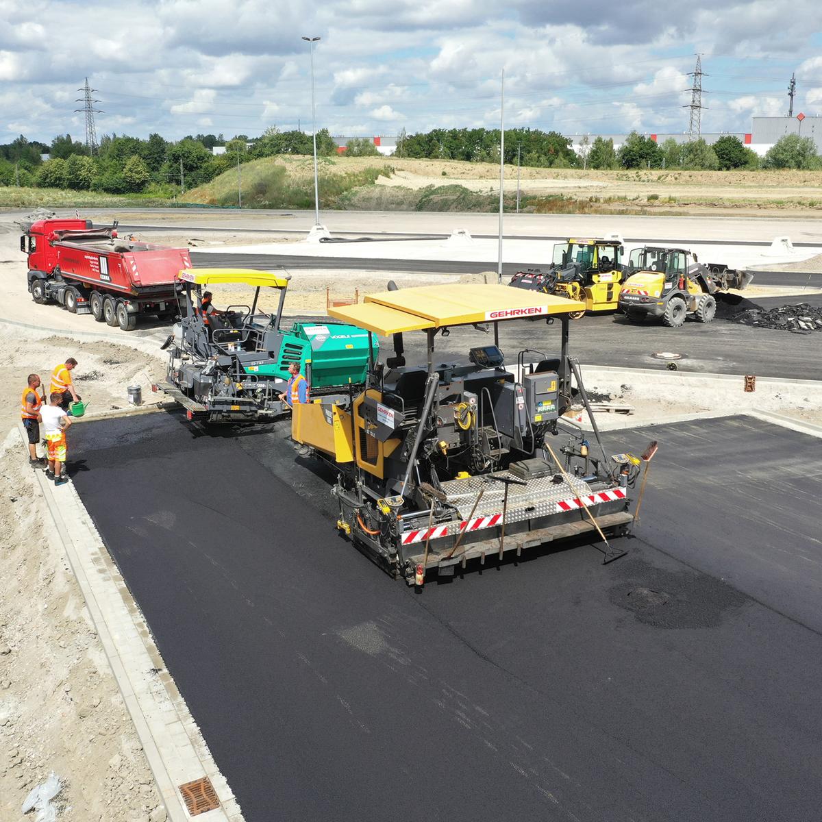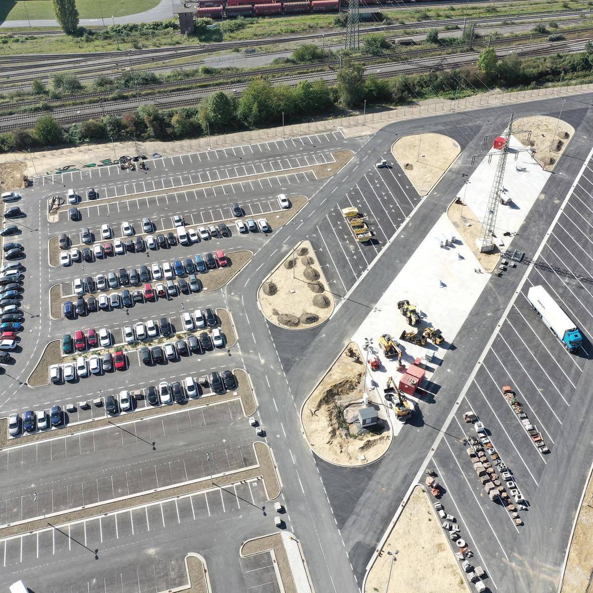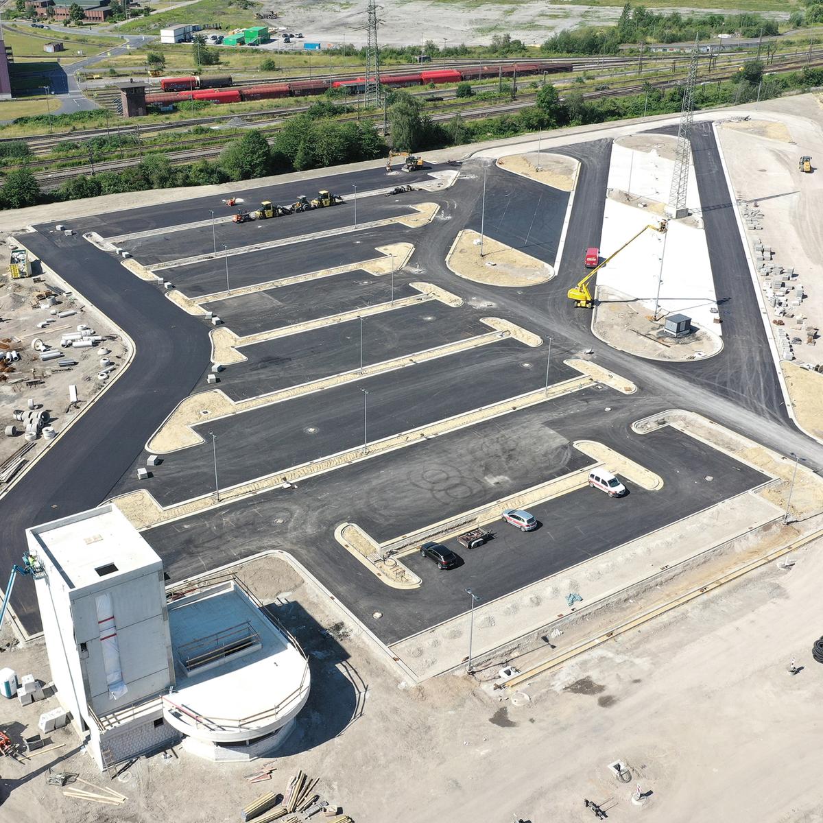 Errichtung der Frei- und Verkehrsanlagen für den Neubau eines Logistik- und Frischezentrums REWE inkl. Erdbauarbeiten. Ein alternatives Köster-Konzept für die bis zu acht Meter hohe Lärmschutzwand konnte den Kunden überzeugen. Die methodische Terminplanung führte zu einem reibungslosen Bauablauf.