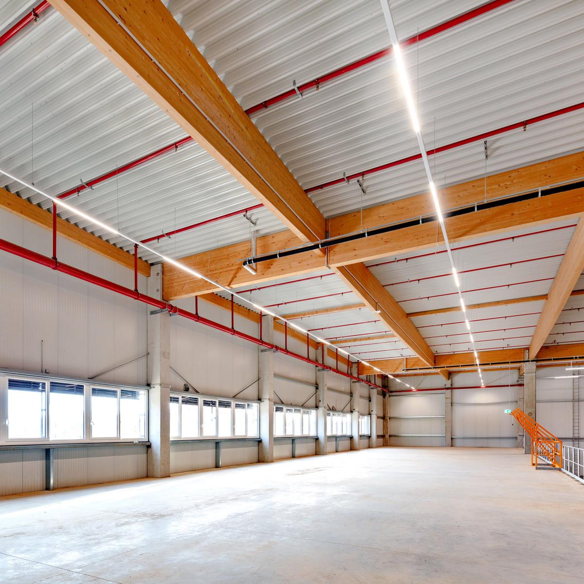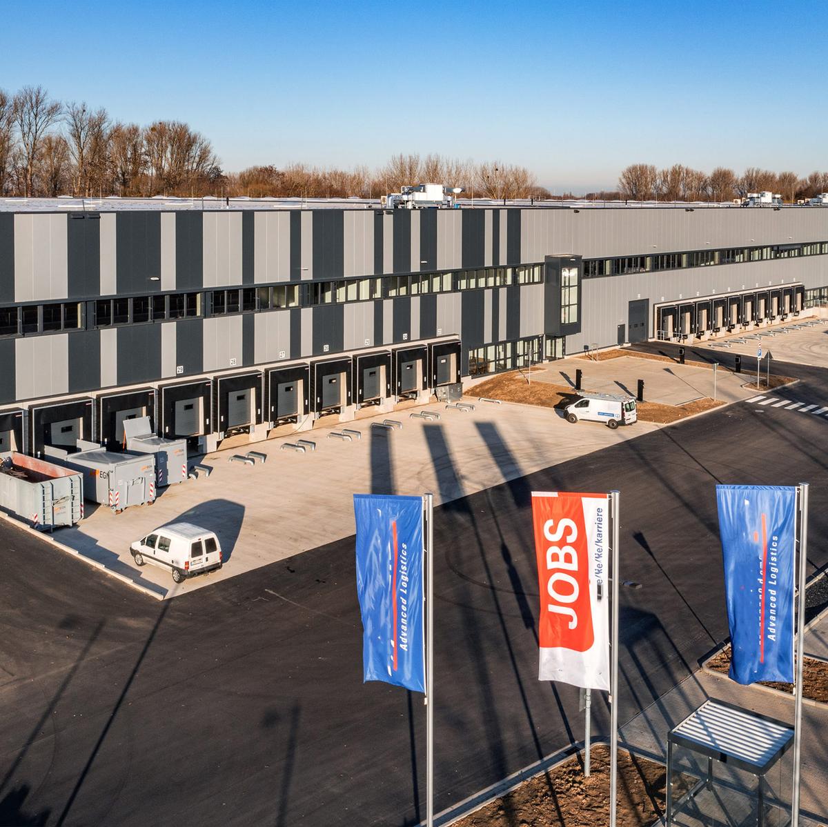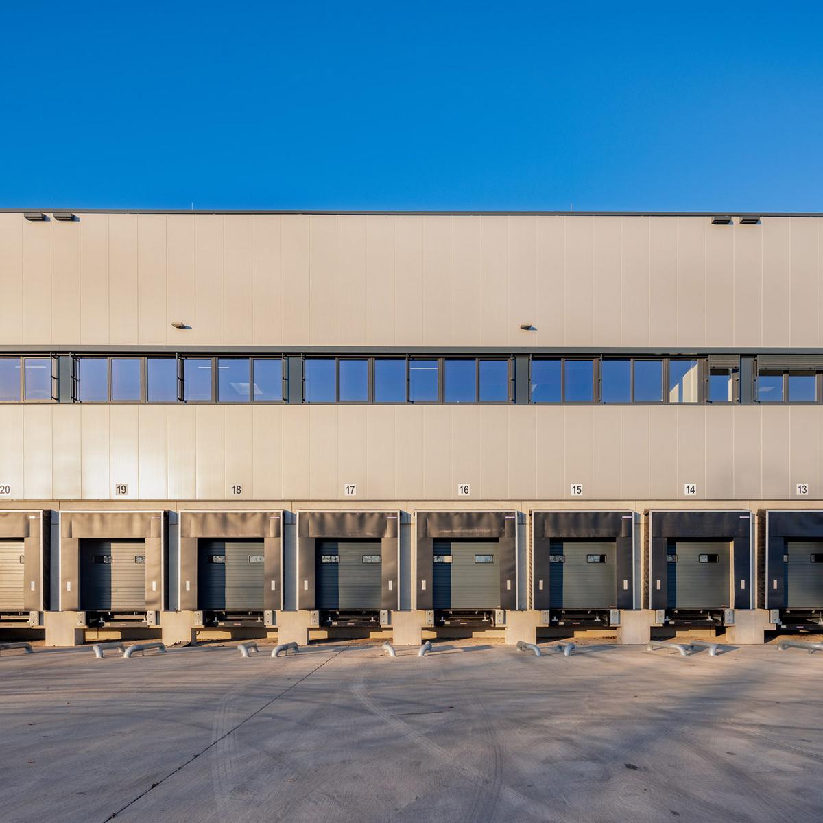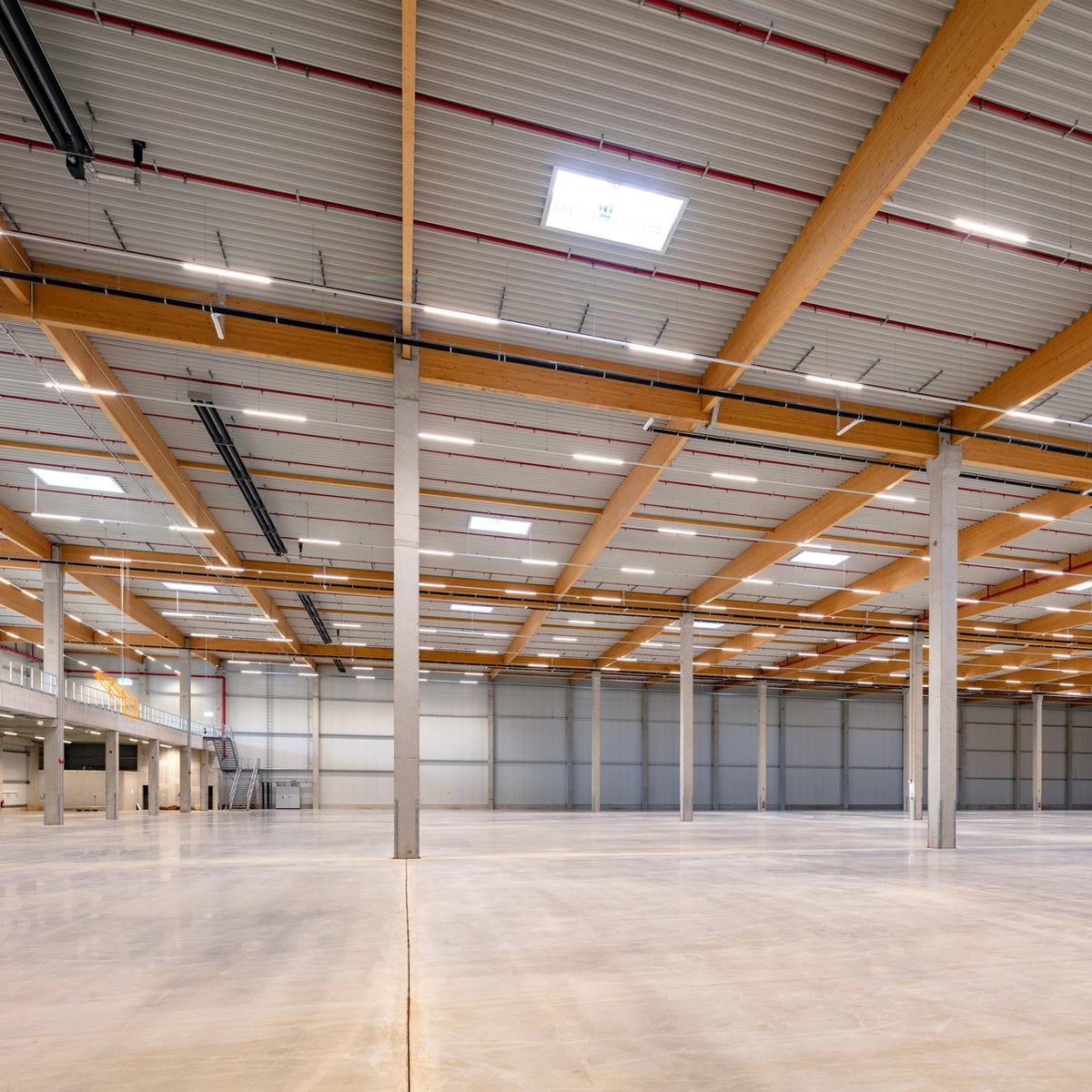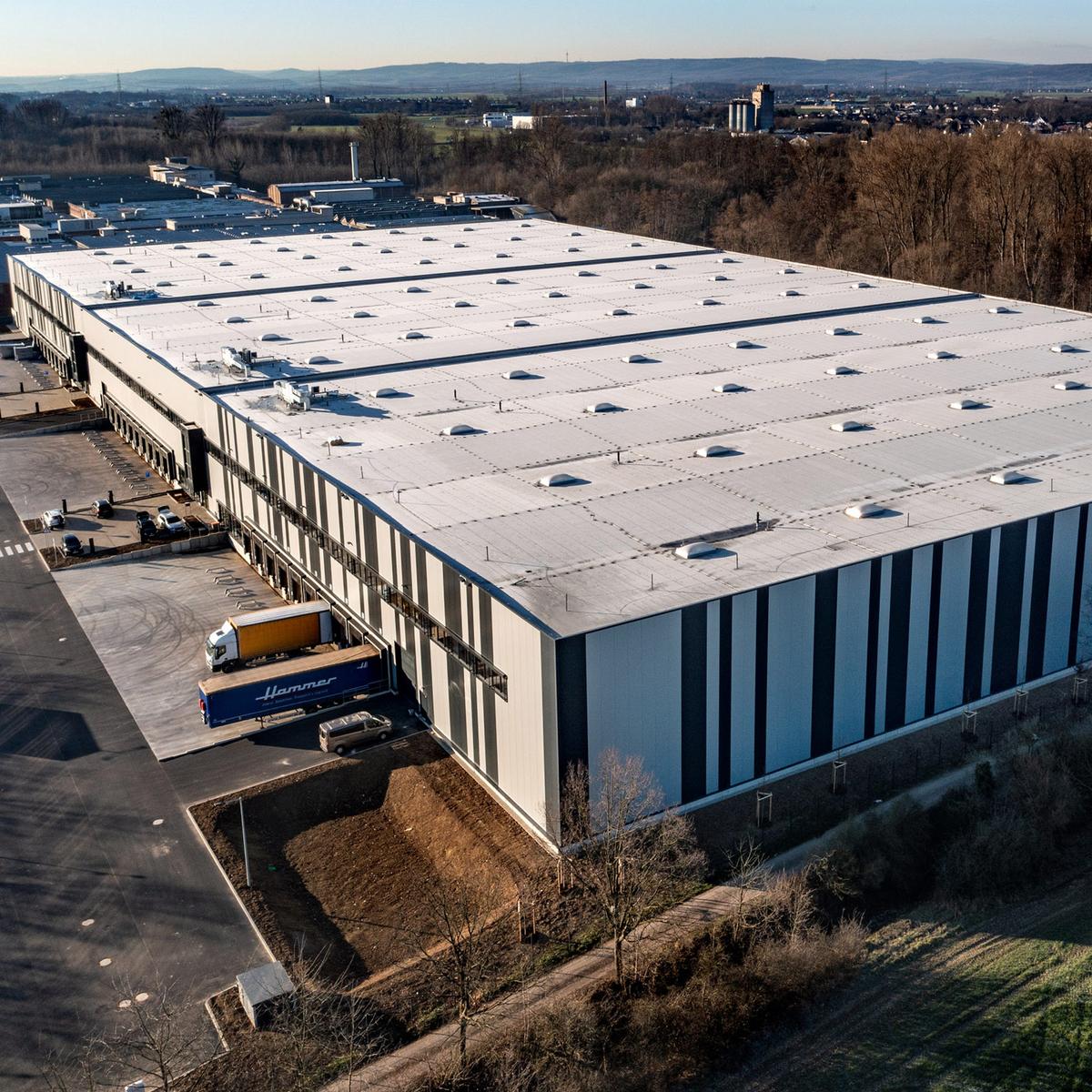 Köster errichtete diese Logistikimmobilie schlüsselfertig mit einer Gesamtfläche von 28.270 m² und zusätzlichen Mezzaninbauten von ca. 920 m² in Niederzier, Kreis Düren.
