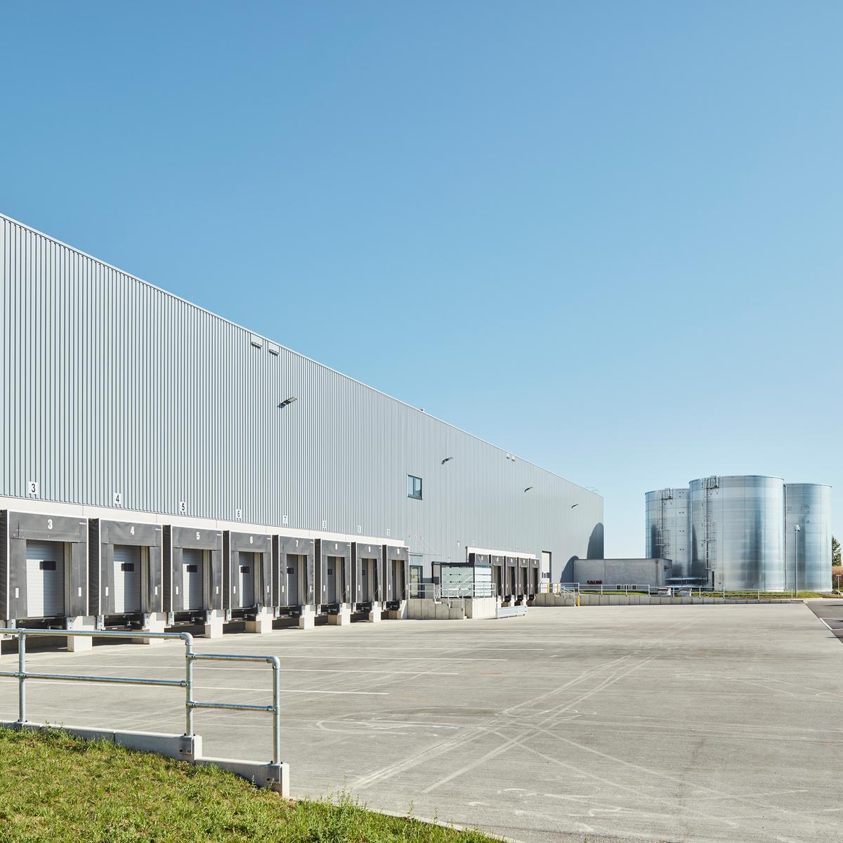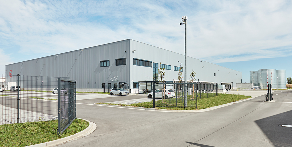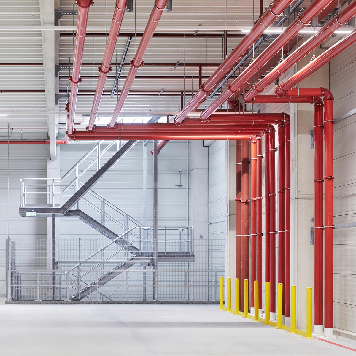 Schlüsselfertiger Neubau einer Logistikimmobilie mit Wareneingang, Kommisionierung, Palettenlagerfläche, Warenausgang sowie Verwaltungs- und Sozialräumen im Obergeschoss. Das Gefahrstofflager ist in zwei Brandabschnitte unterteilt.