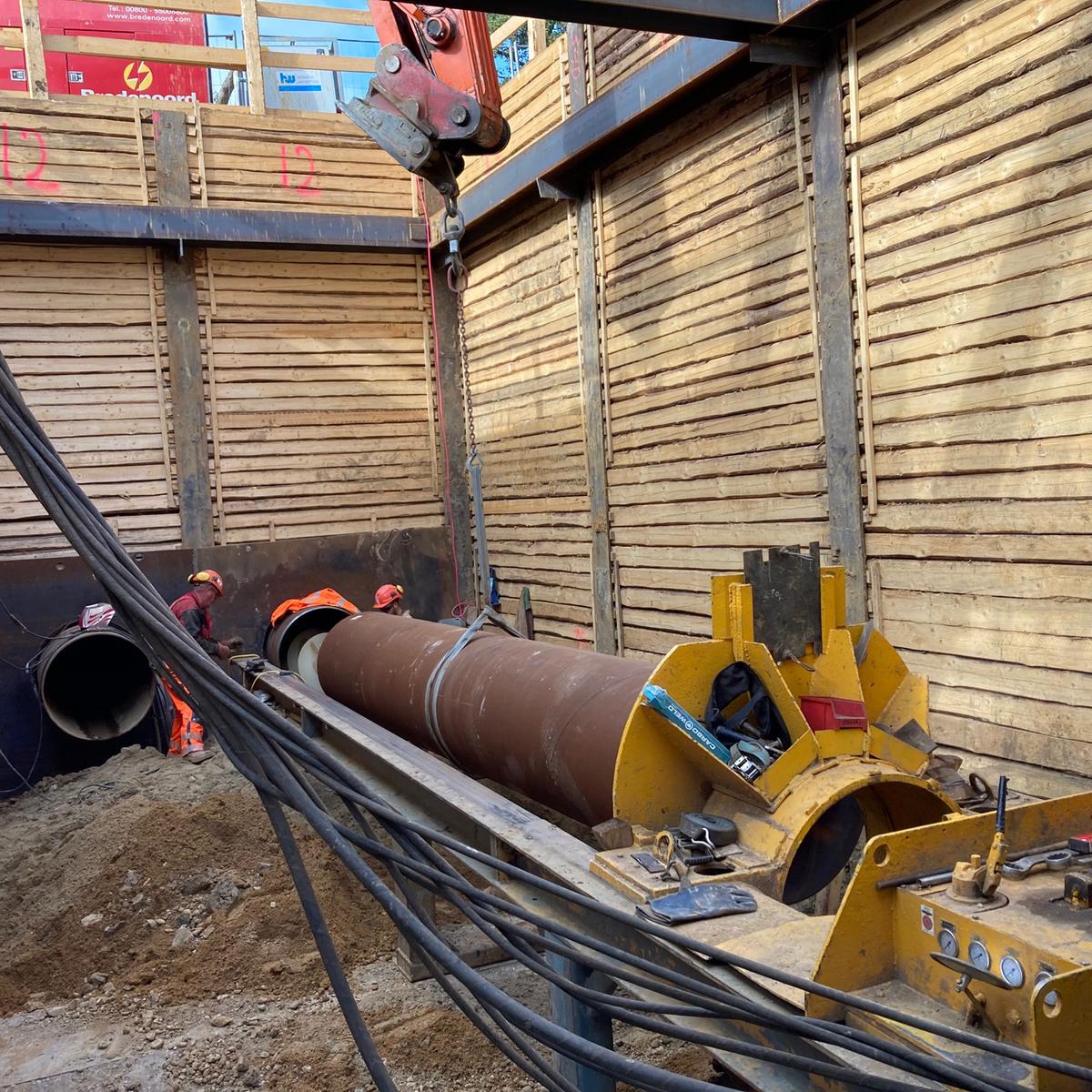 Ein Leitungsabschnitt der bauseits erstellten Fernwärmetrasse DN 500 wurde in geschlossener Bauweise unter der Dürwißer Straße und einer parallel verlaufenden Vorflut hindurchgeführt.Hierzu wurde aufgrund geringer Vortriebslängen ein ungesteuertes Press-/Bohrverfahren angewendet. Der Wunsch des Kunden, dass die Fernwärmeleitung vor Beginn der Heizperiode in Betrieb geht, konnte sicher erfüllt werden.