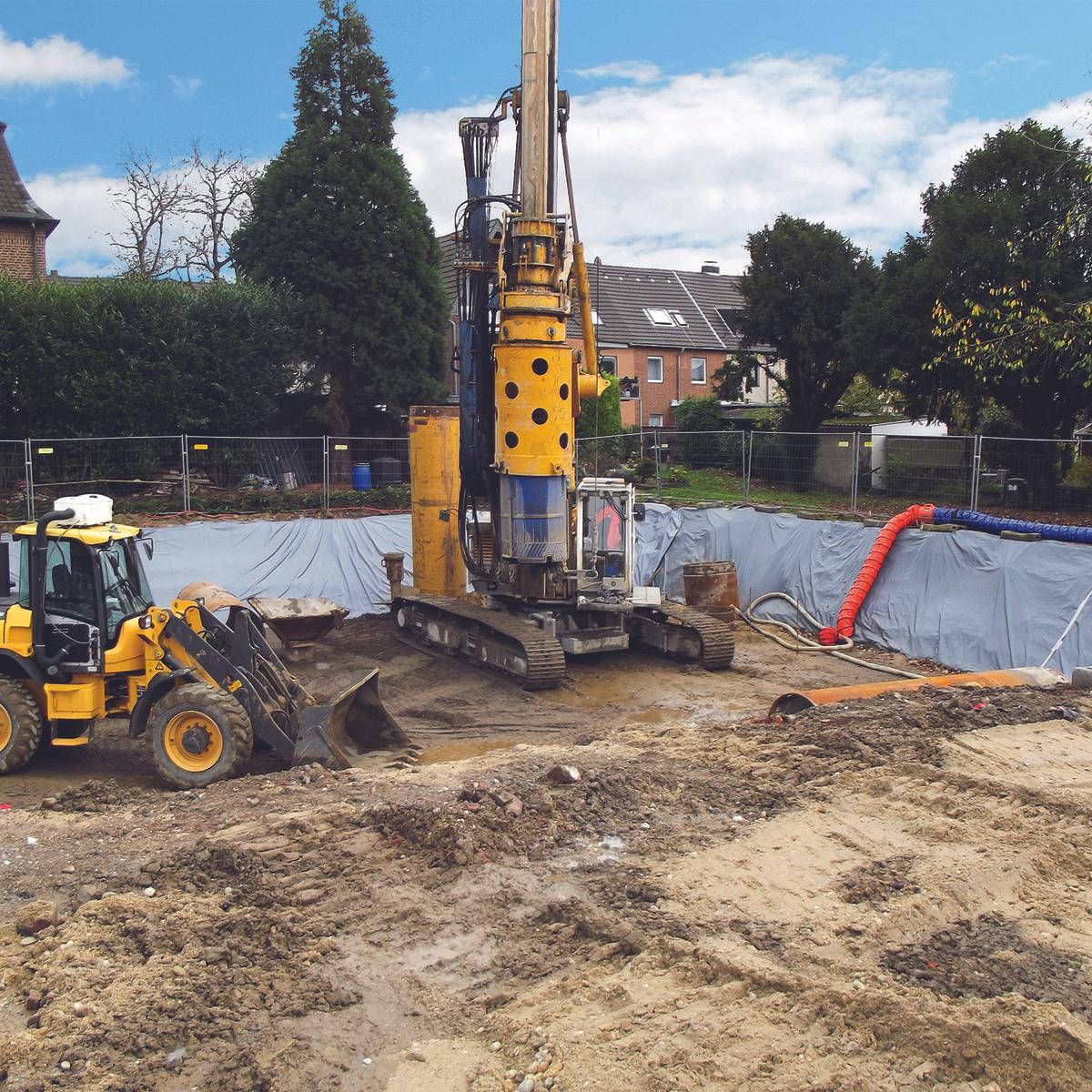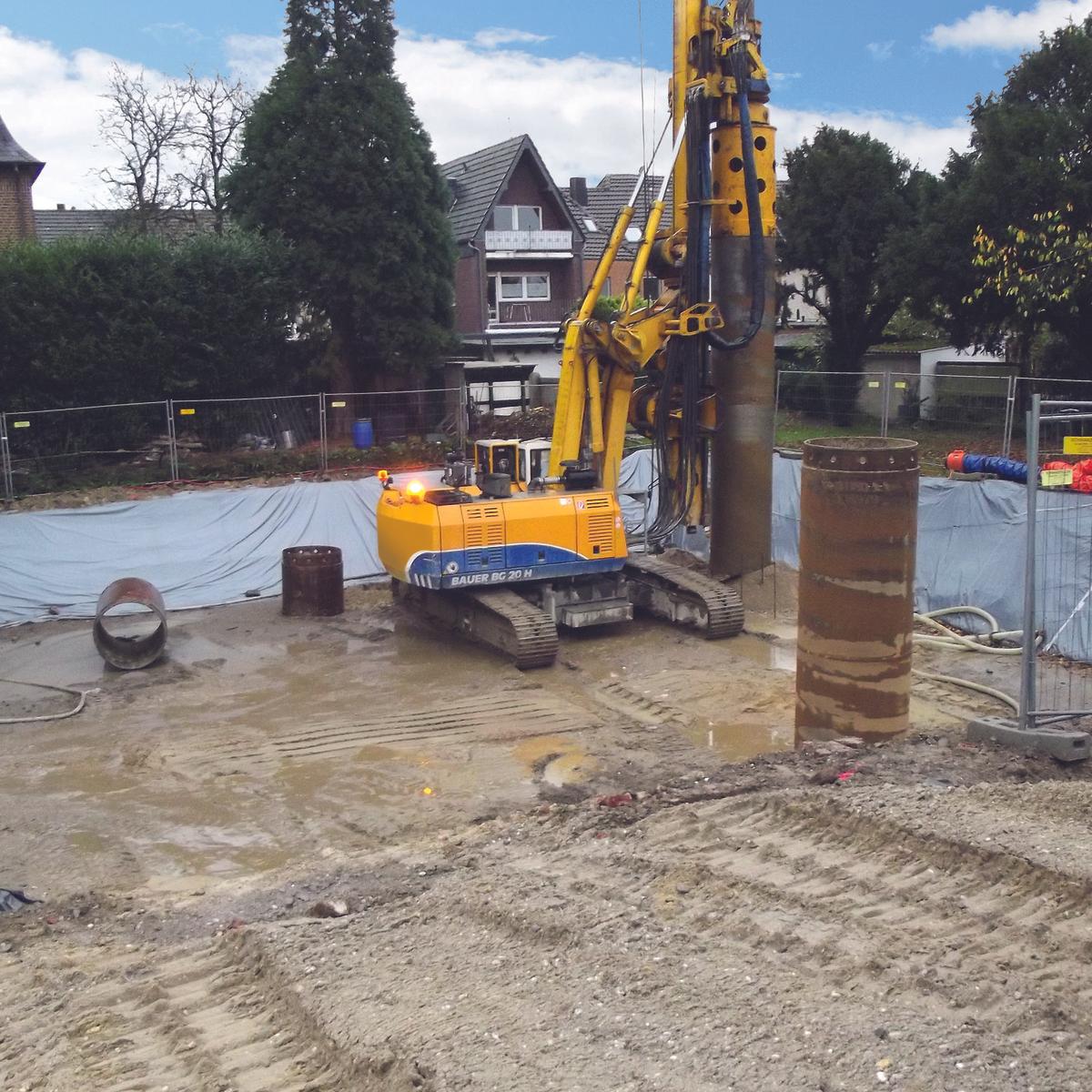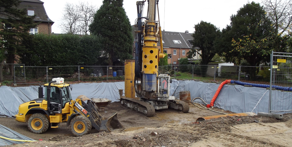 Sanierung des mit CKW verunreinigten Untergrunds der ehemaligen chemischen Reinigung Hemesath in Kempen durch Bodenaustausch im konventionellen Verfahren und mittels Großlochbohrungen DN 1200 bis 12 m Tiefe.