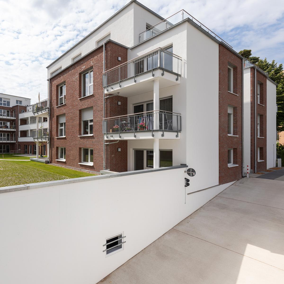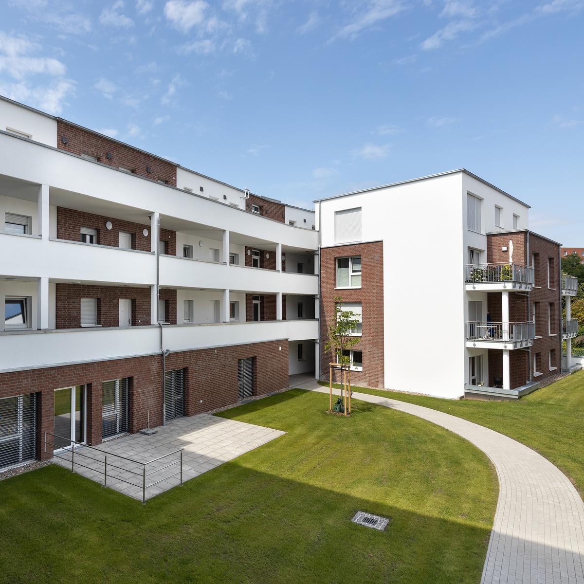 Neubau von 56 seniorengerechten Mietwohnungen und einer DRK-Tagespflege inkl. Errichtung einer Tiefgarage. Auf einem 5.000 m² großen ehemaligen Firmengelände in Lüneburg realisierte das Kompetenz-Center Sozialimmobilien einen schlüsselfertigen Neubau. Viele der 47 bis 106 m² großen Wohnungen sind rollstuhlgerecht erreichbar. Unvorhergesehene Unterfangungsarbeiten zur Nachbarbebauung sowie Bodenaustausch führten zu Verzögerungen, die das Bauteam jedoch aufholen und die schlüsselfertige Immobilie früher an den Auftraggeber übergeben konnte. Die enge Zusammenarbeit zwischen dem Architekten, dem Kunden und Köster – besonders in der Planungsphase – war für den erfolgreichen Abschluss ein wichtiger Faktor.