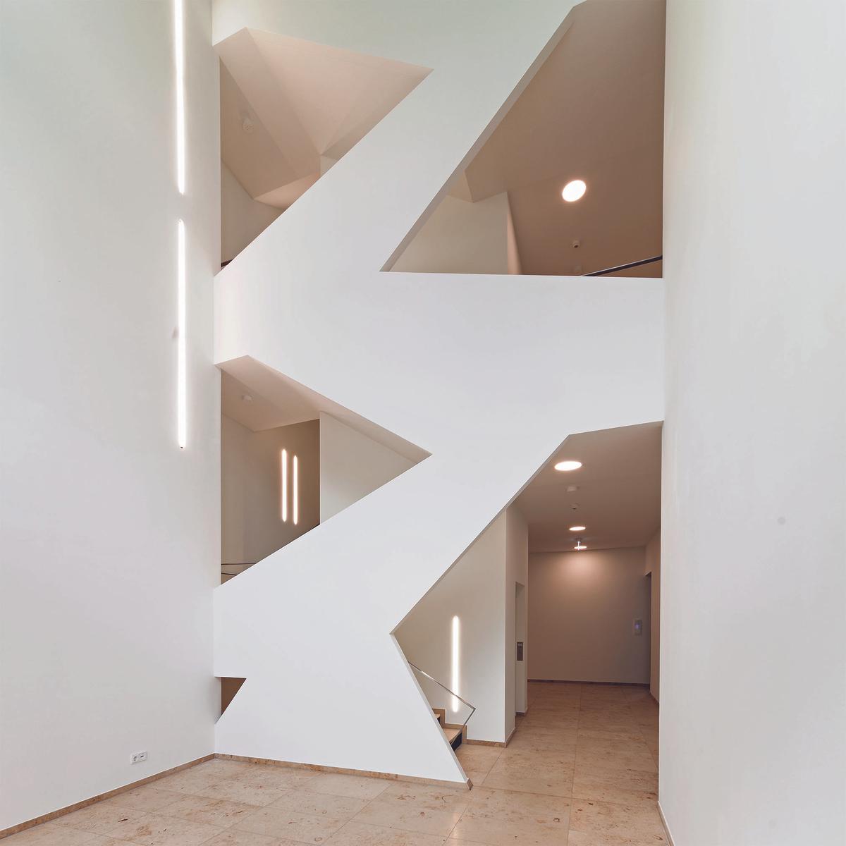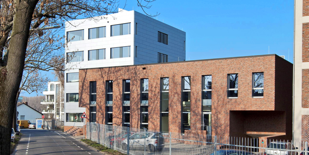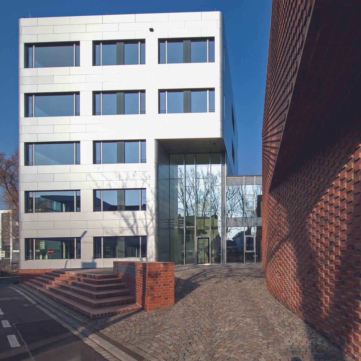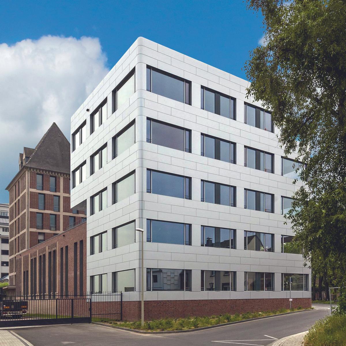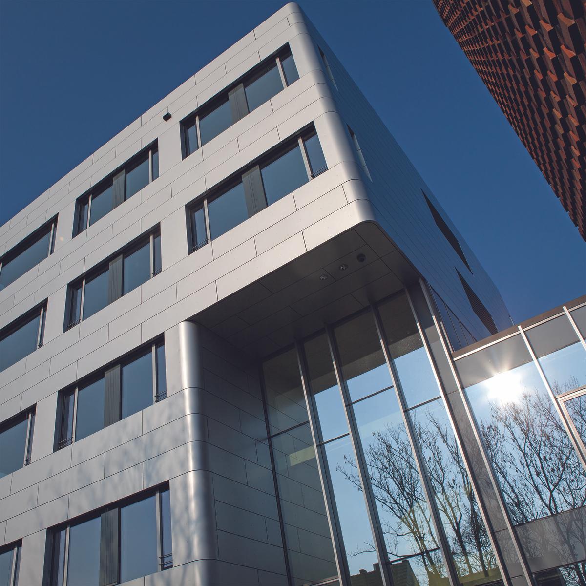 Schlüsselfertiger Neubau eines Bürogebäudes mit einem fünfgeschossigen Turm, einem Anbau sowie einer Tiefgarage inkl. der Tiefbauarbeiten. Auch einen denkmalgeschützten Lokschuppen integrieren die Bauspezialisten umsichtig. Um das Gebäude trotz seiner modernen Architektur harmonisch in den Bestand einzufügen, kommen bei der Fassadengestaltung Metall-, Glas- und Klinkersteinelemente zum Einsatz.