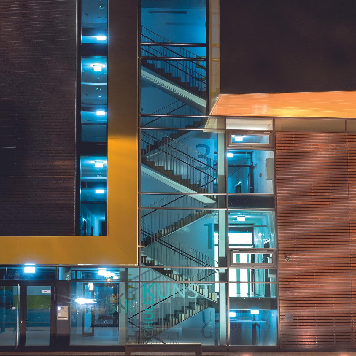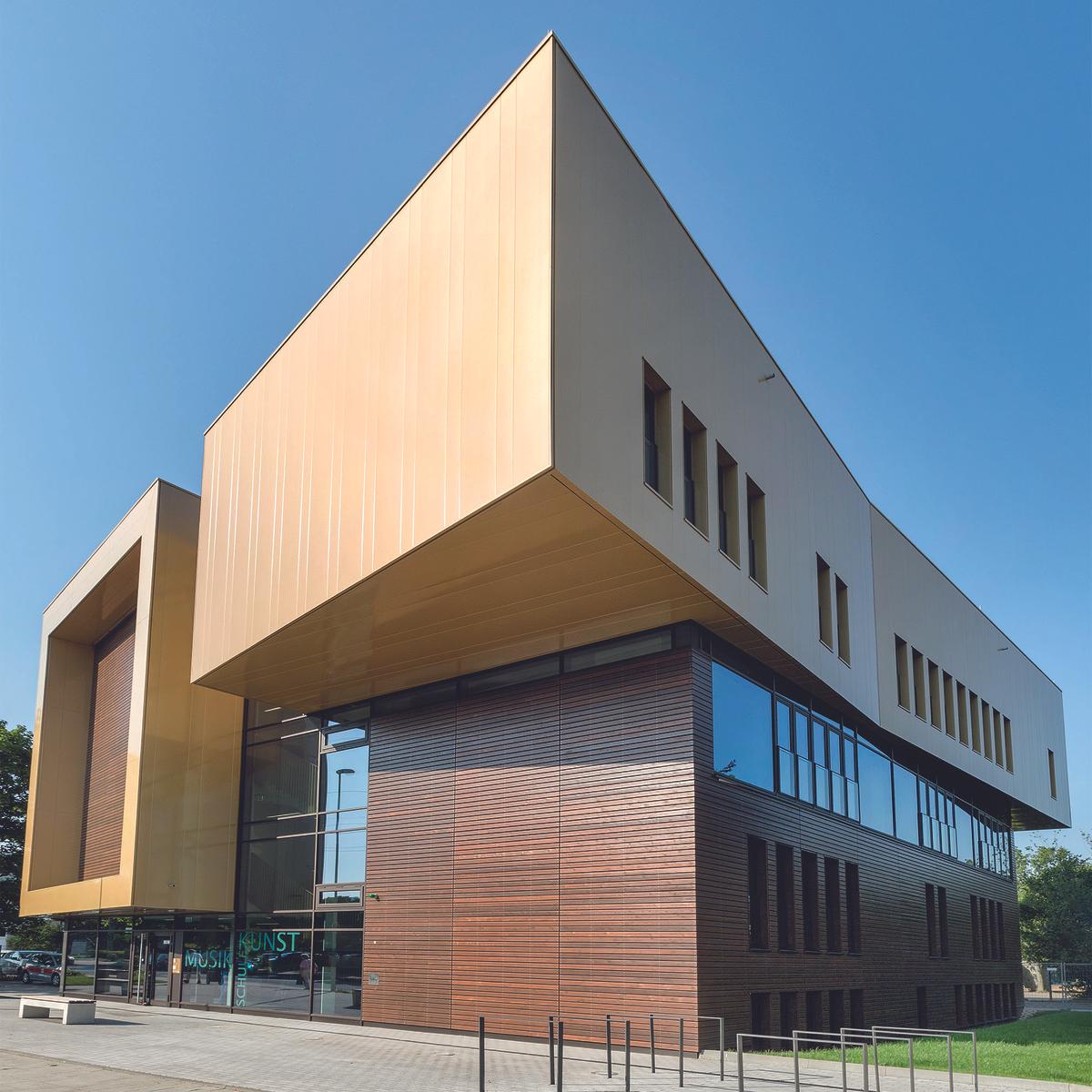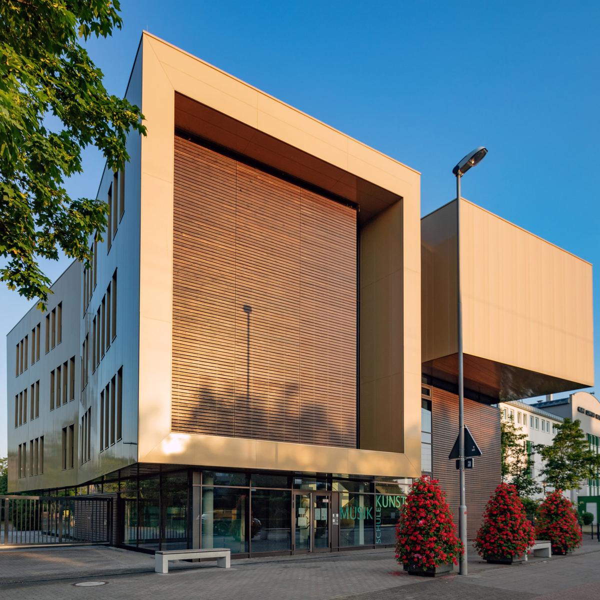 Schlüsselfertiger Neubau mit Übungs-, Unterrichts- und Werkräumen, Tanzsaal, Vortragsraum und einem Tonstudio sowie Büro- und Technikräumen inkl. Ausführungsplanung. Mit maßgeschneiderten Sondervorschlägen konnte die Bauzeit um zwei Monate verkürzt und das Budget eingehalten werden.