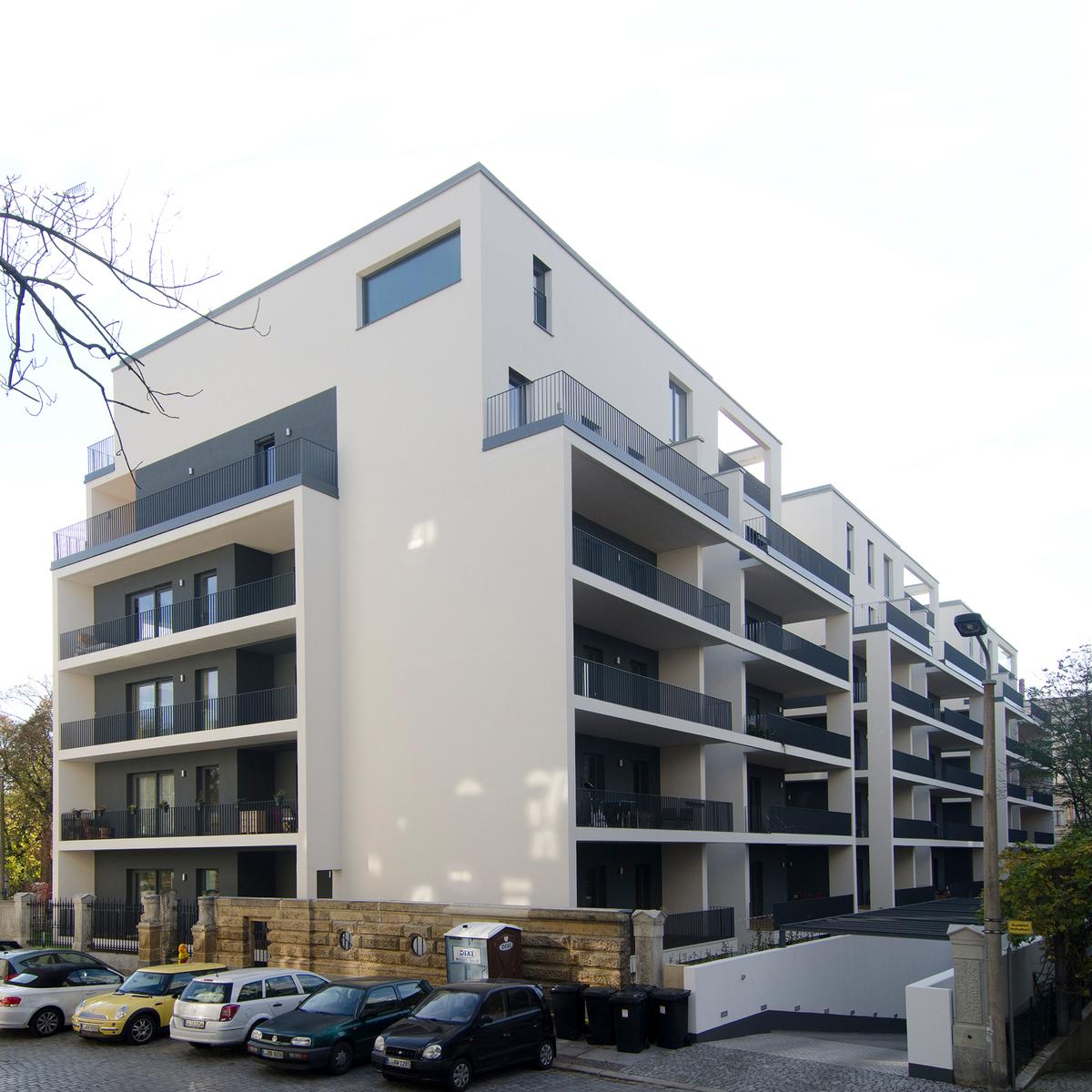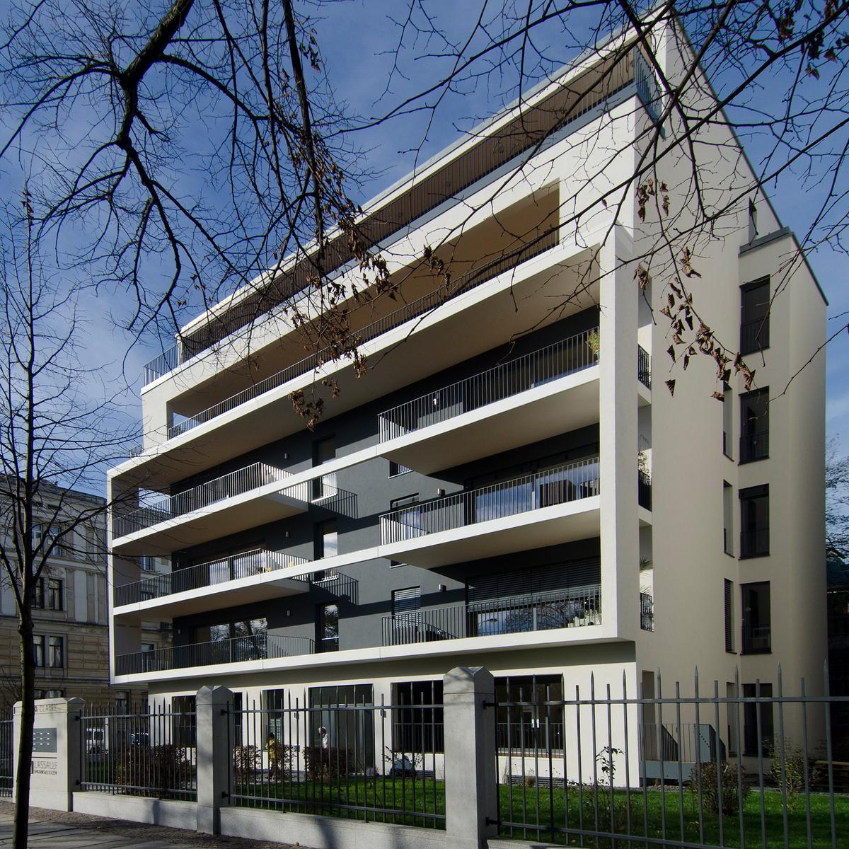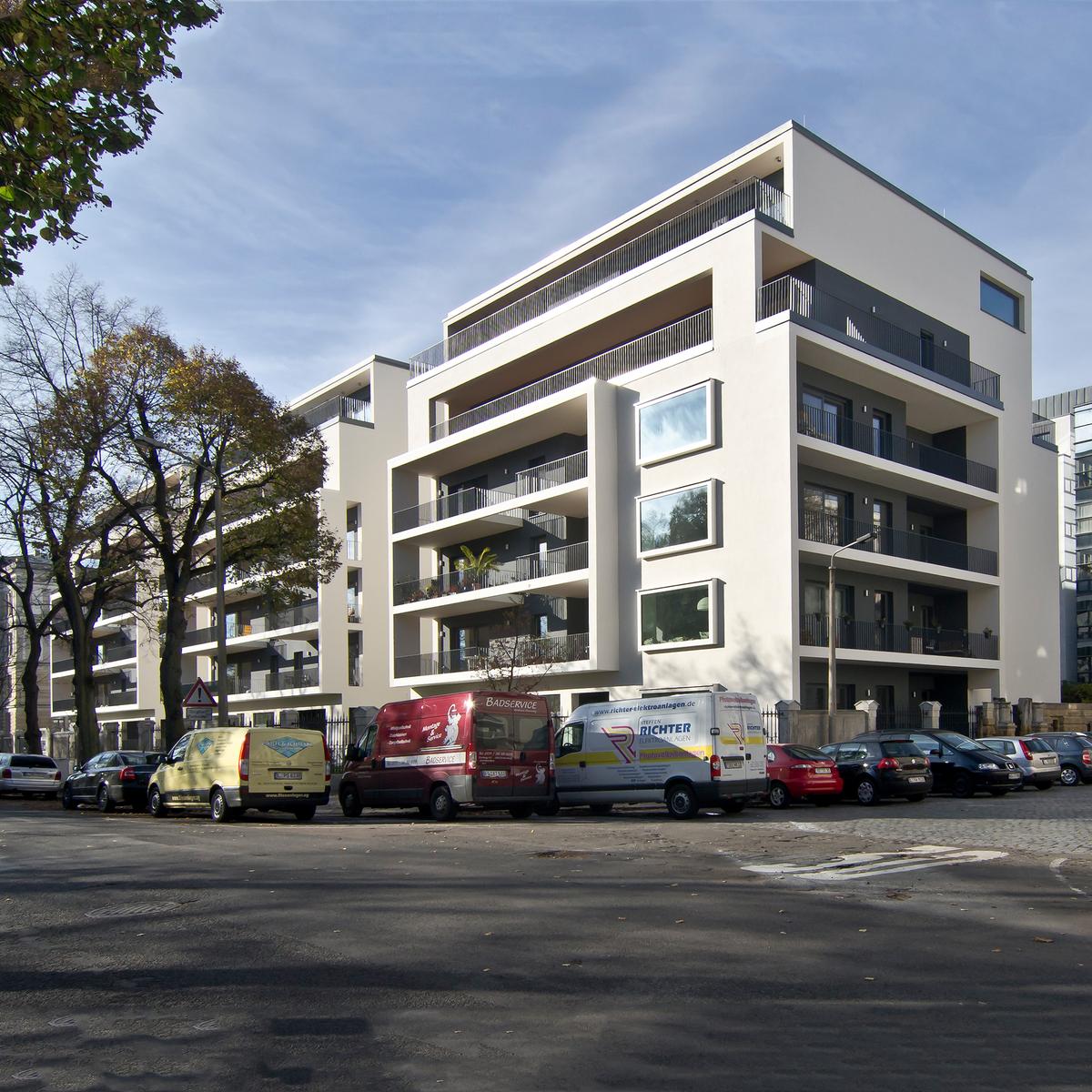 Neubau dreier Stadtvillen mit 31 Wohneinheiten und Tiefgarage.