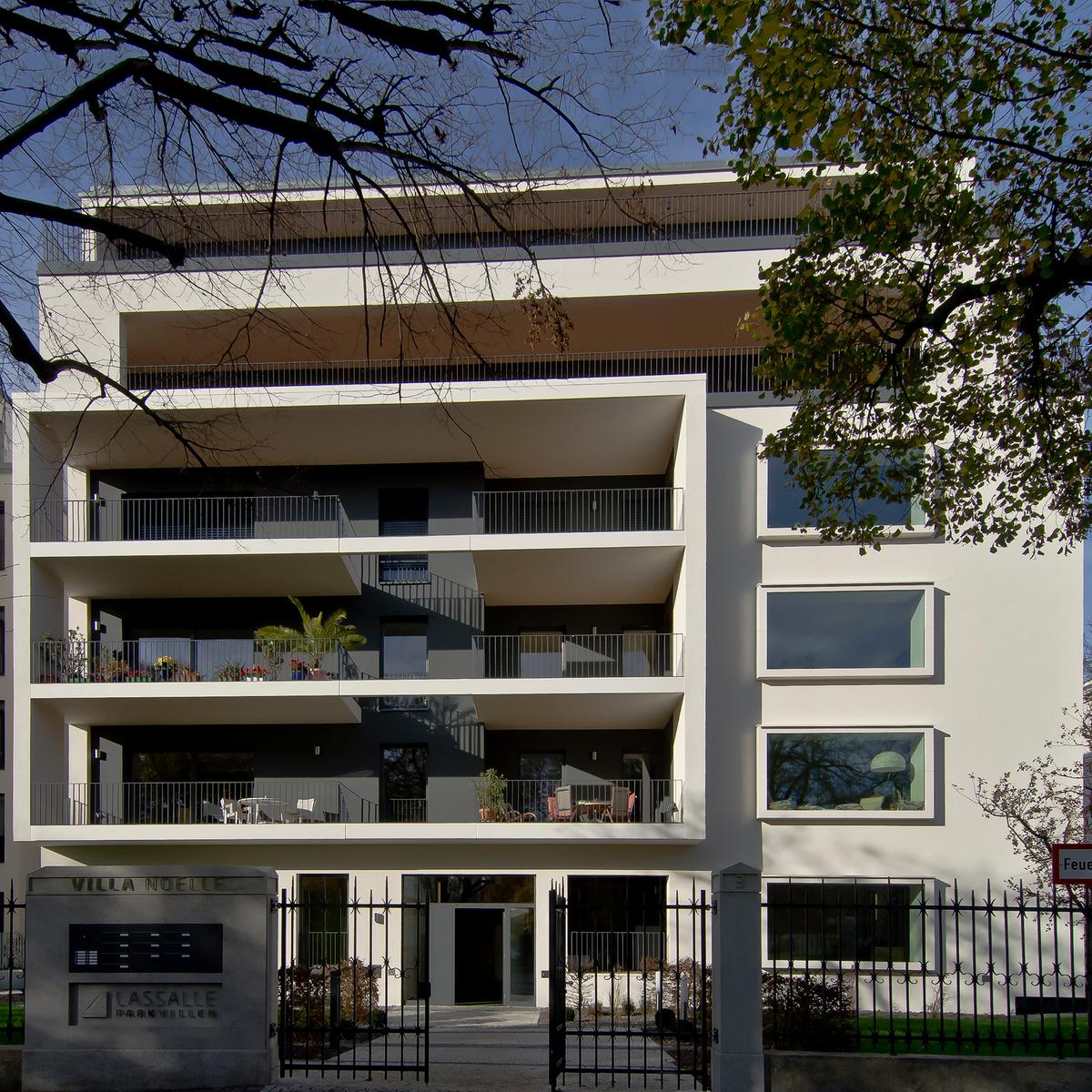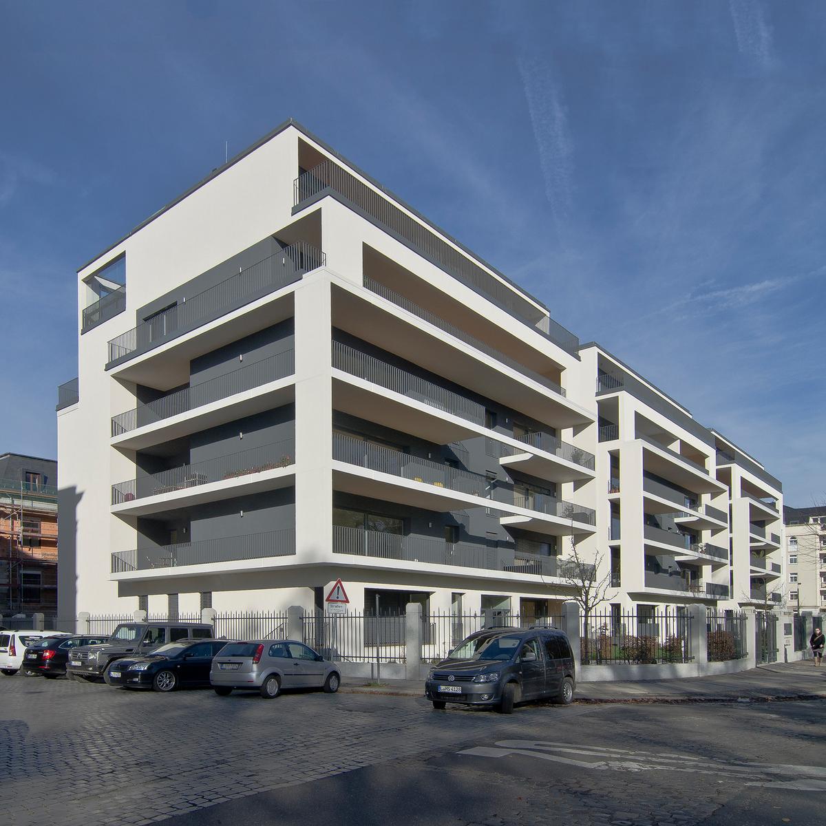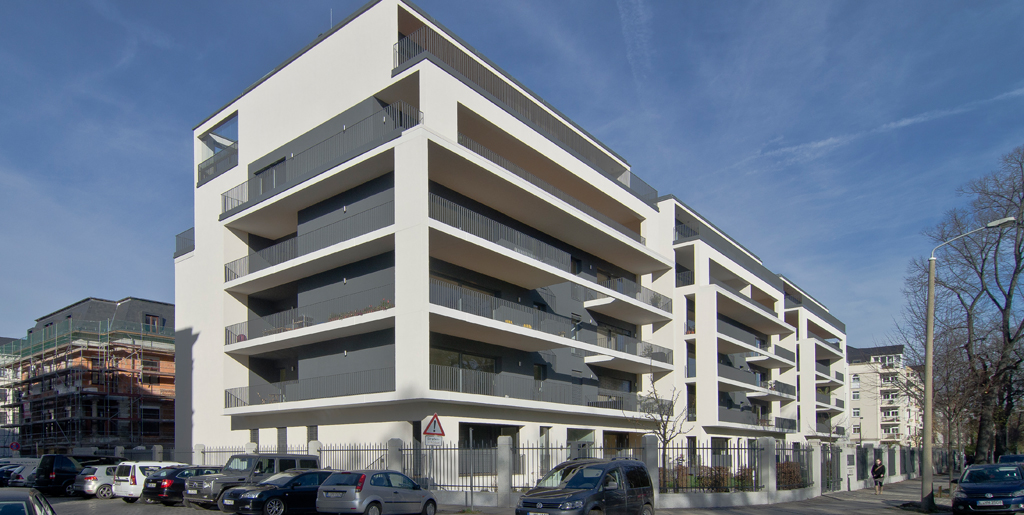 Neubau dreier Stadtvillen mit 31 Wohneinheiten und Tiefgarage.