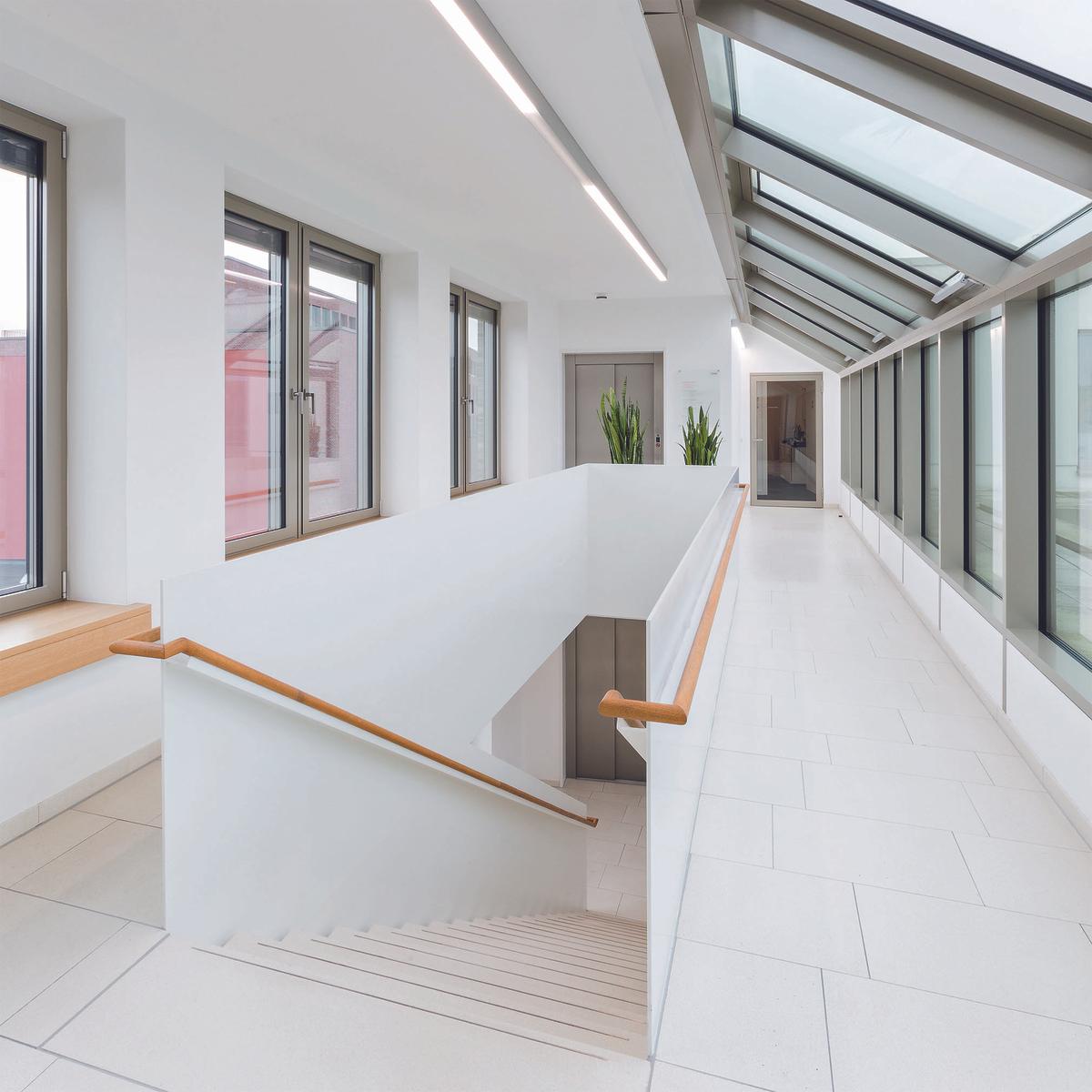 Rohbau eines 6-geschossigen Bürogebäudes inkl. Tiefgarage nach den DGNB-Standards in Gold. Mehrere Sondervorschläge im Bereich der Energieeffizienz für die Fenster reduzierten die Kosten für den Kunden. Exakt aufeinander abgestimmte Transport- und Bauleistungen gewährleisteten die pünktliche Übergabe an den Kunden.