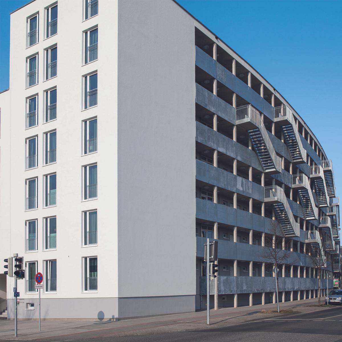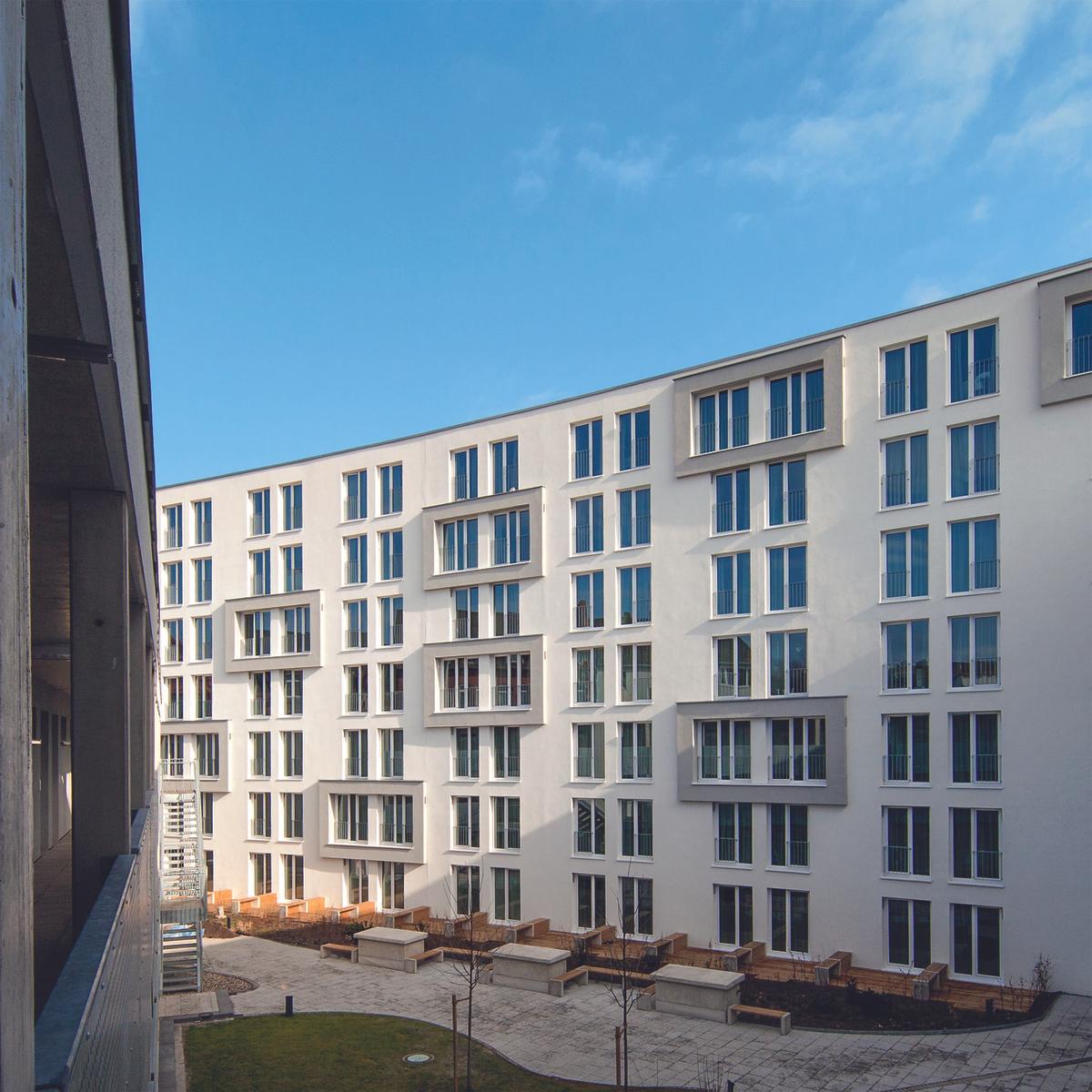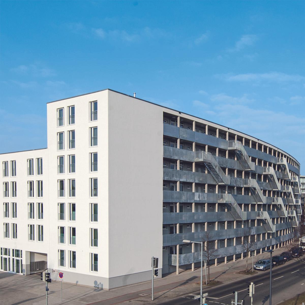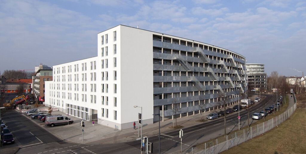 Das Wohnheim in Hannover verfügt über 303 Wohneinheiten, davon 20 barrierefrei und 20 rollstuhlgerecht, sowie über eine Tiefgarage. Der Baukörper folgt dem Straßenverlauf radial in runder Architektur. Köster leistete die vollständige Abwicklung aus einer Hand: Von der Ausführungsplanung, Tiefbau und Rohbau bis hin zum schlüsselfertigen Ausbau und den Außenanlagen. Flexibel reagierte das Team auf Änderungen und Ergänzungen am Bausoll