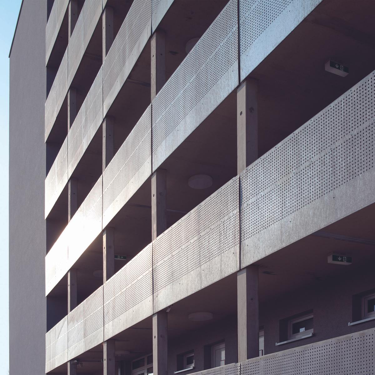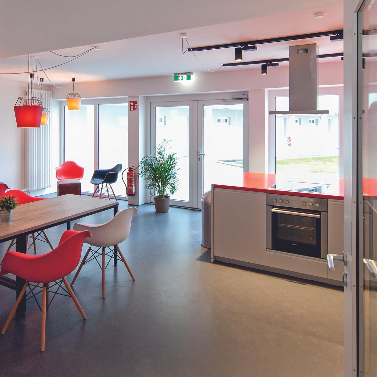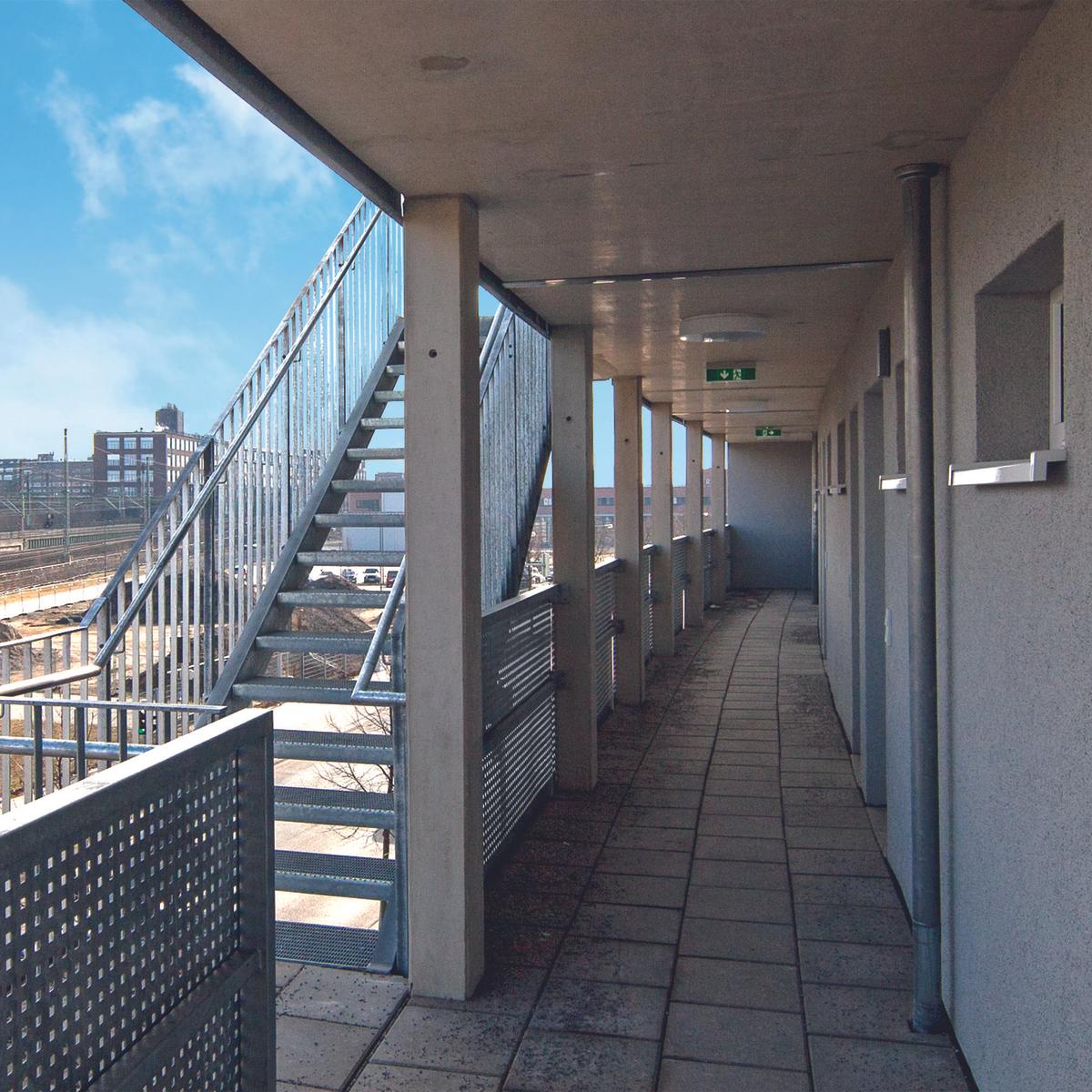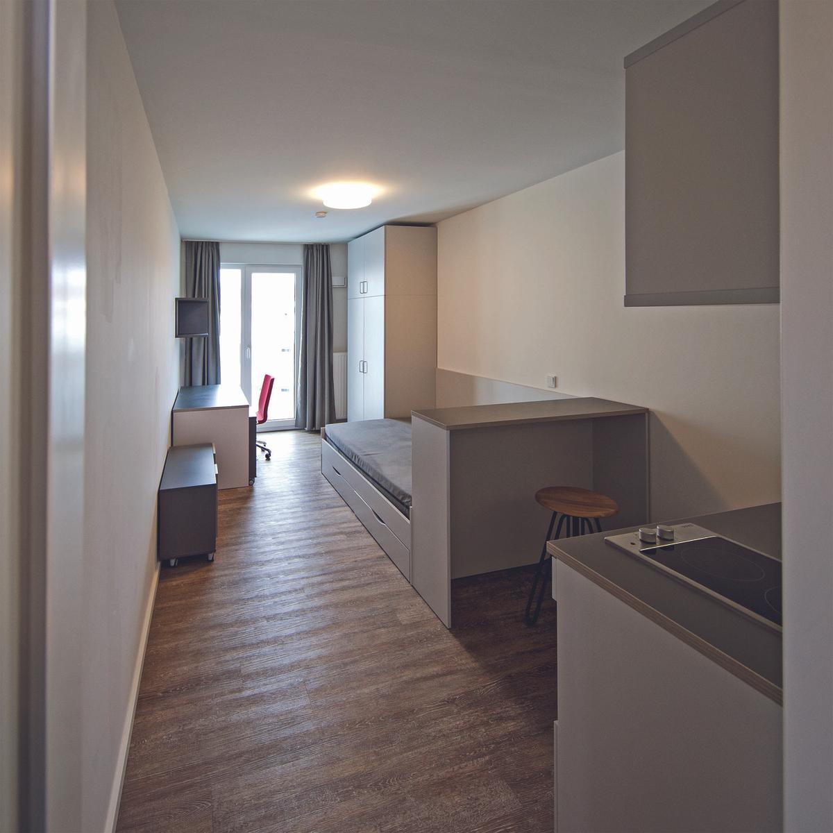Das Wohnheim in Hannover verfügt über 303 Wohneinheiten, davon 20 barrierefrei und 20 rollstuhlgerecht, sowie über eine Tiefgarage. Der Baukörper folgt dem Straßenverlauf radial in runder Architektur. Köster leistete die vollständige Abwicklung aus einer Hand: Von der Ausführungsplanung, Tiefbau und Rohbau bis hin zum schlüsselfertigen Ausbau und den Außenanlagen. Flexibel reagierte das Team auf Änderungen und Ergänzungen am Bausoll