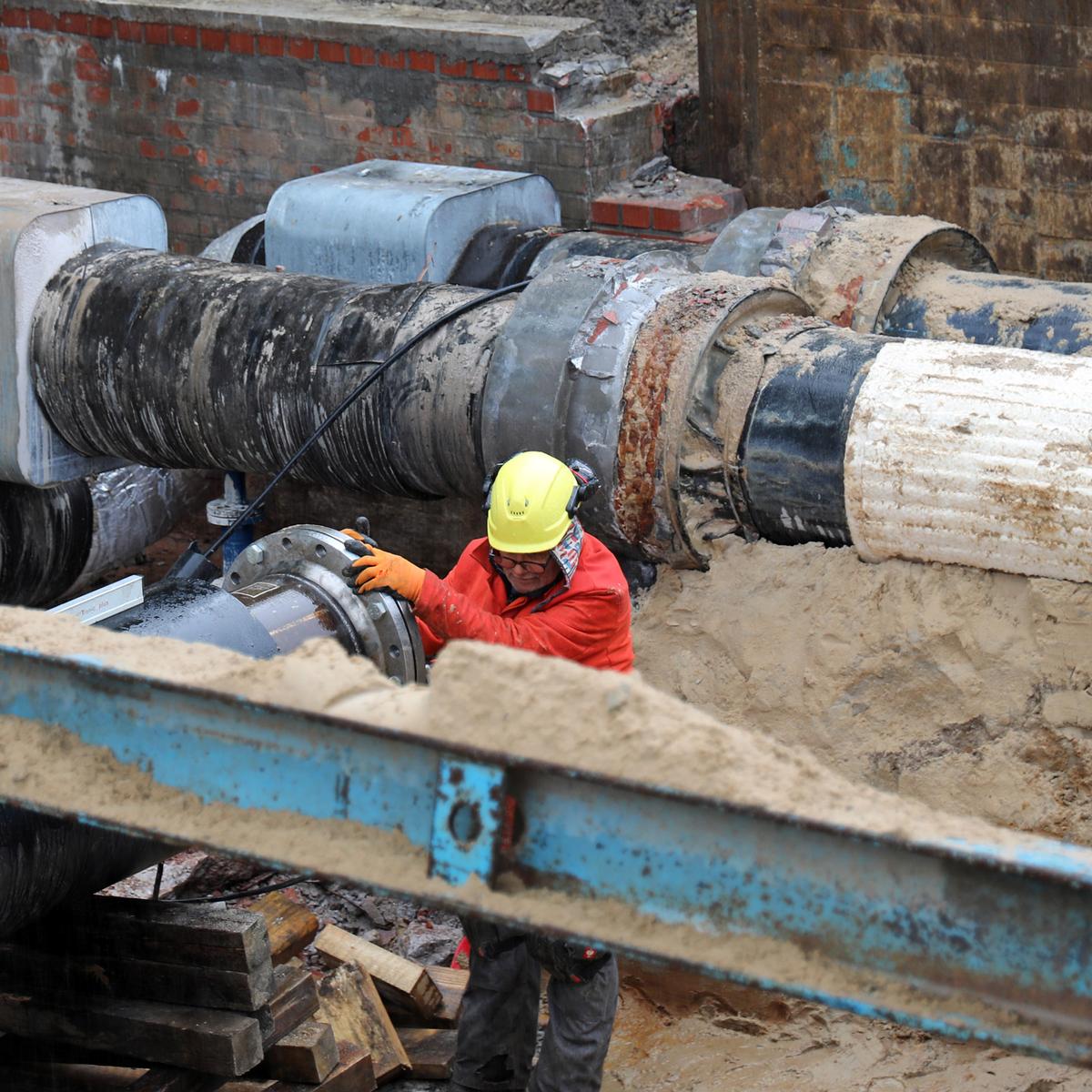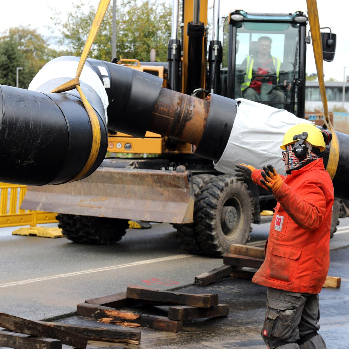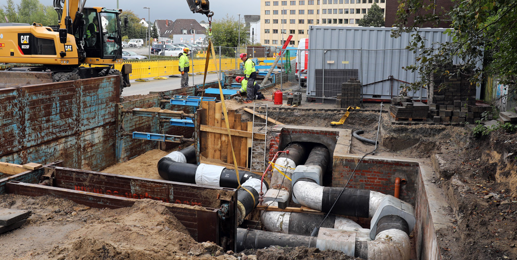 Der Bereich Energieinfrastruktur von Köster sanierte und wartete Gas- und Wassernetze mehrerer Versorger im Siedlungs- und Stadtbereich. In Bielefeld wurde im Stadtgebiet ein Teilstück Fernwärmetrasse DN 400 erneuert. Viele kreuzende und parallel liegende Leitungen galt es, zu schützen. Der Verkehrsfluss auf der Hauptverkehrsader musste während der Baumaßnahme gewährleistet sein.
