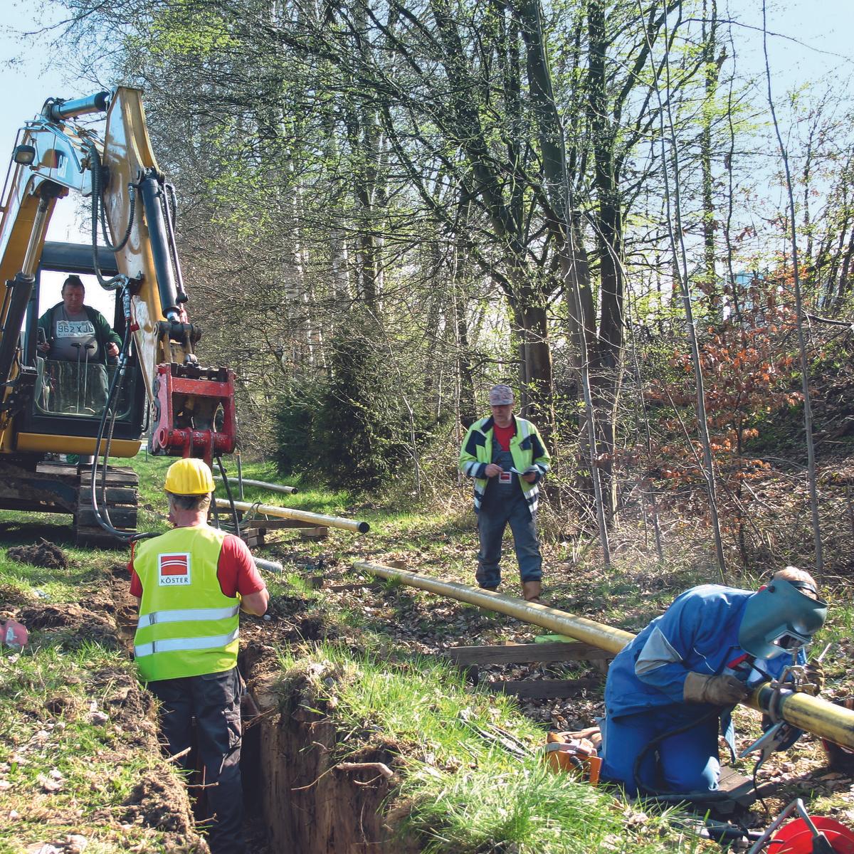 Für die Verlegung einer 800 m Gashochdruckleitung DN 100 PN 16 wurde der Bereich Energieinfrastruktur der Köster GmbH als Generalunternehmer beauftragt. Sämtliche Arbeiten für Tiefbau, Rohrbau, Wasserhaltung, Oberflächenwiederherstellung und Kabelleerrohrverlegung wurden in Eigenleistung hergestellt. Eine besondere Herausforderung war die Einbindung in die in Betrieb befindliche Leitung DN 150 mittels geteiltem T-Stück und Anbohrung unter Gasdruck. Die Zusammenarbeit zwischen dem Auftraggeber, den Stadtwerken Lengerich, und Köster verlief ausgezeichnet.