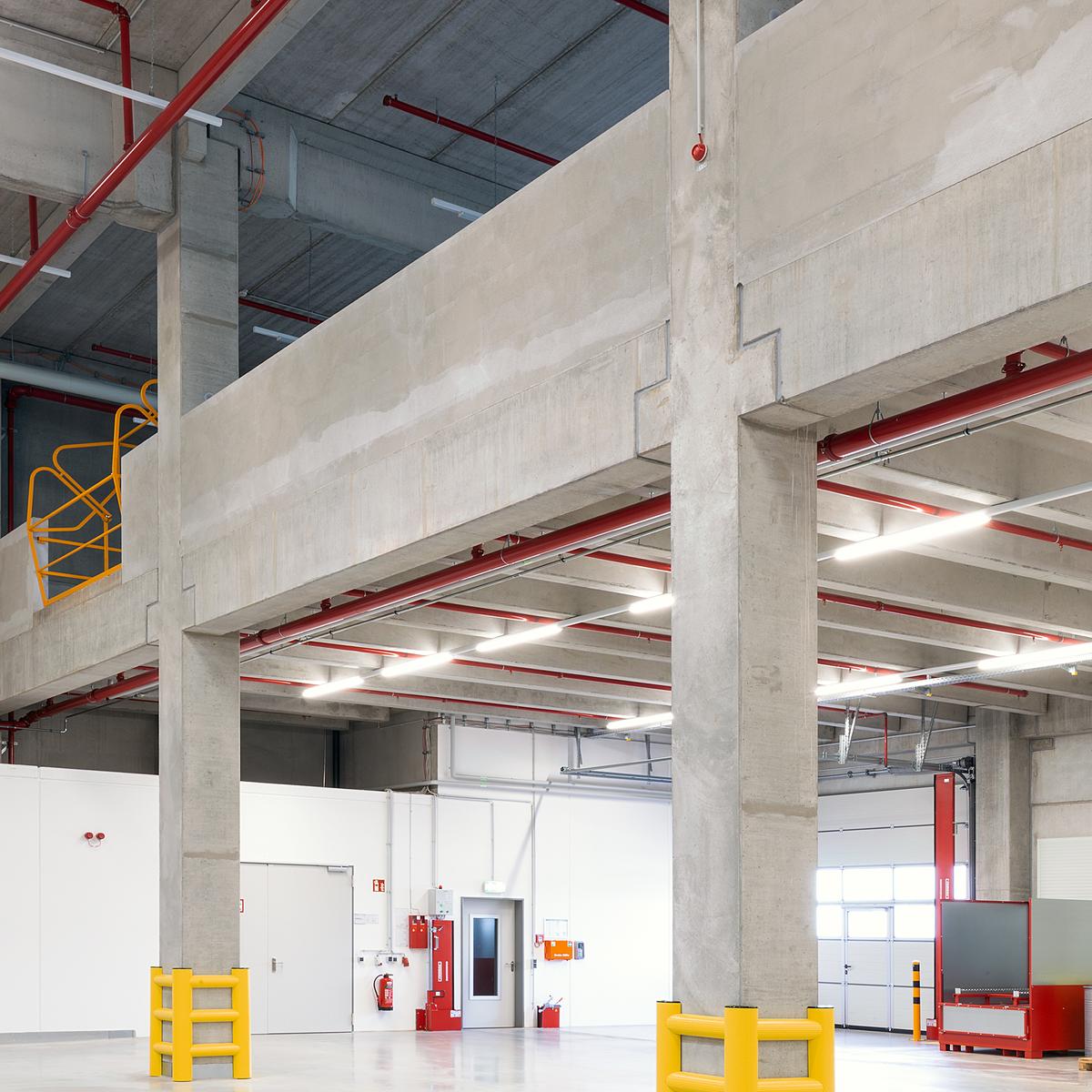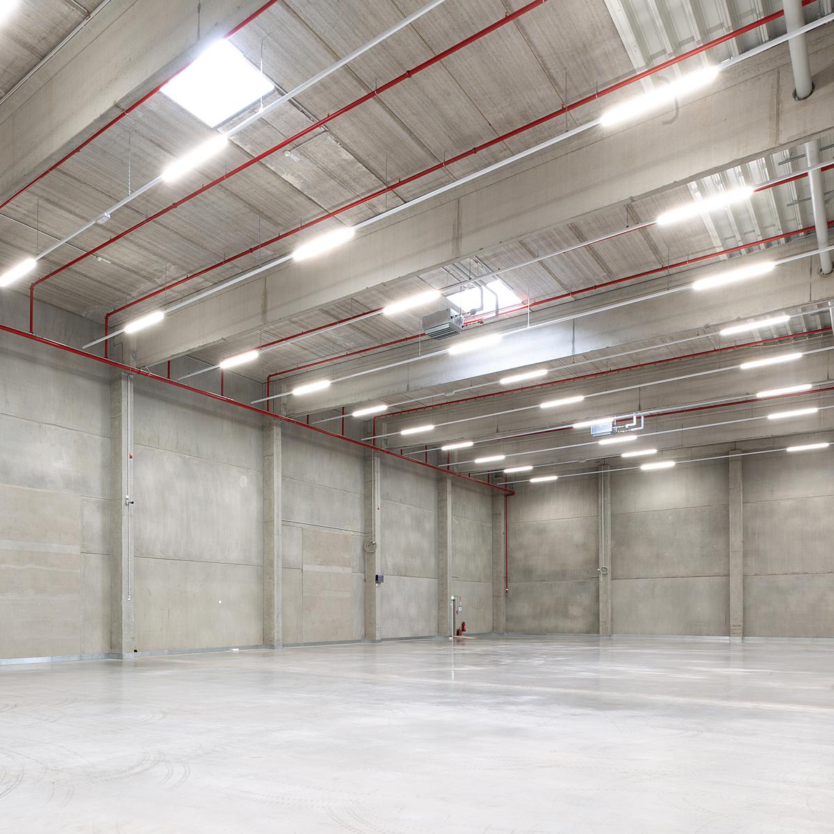 Neubau einer Distributionshalle für einen international agierenden Hersteller von innovativen Wirk- und Inhaltsstoffen. Unter der Beachtung hoher technischer und baulicher Maßnahmen, realisierte Köster termingerecht eine kosteneffiziente Logistikimmobilie, die die Möglichkeit eines späteren Erweiterungsbaus bietet. Durch Sprinklertanks und sieben Andockstellen für LKW, die um vier weitere ergänzt werden können, ist die Halle effizient und funktional nutzbar. Eine besondere Herausforderung war der Bebauungsplan, der unter anderem Sicherungsanlagen gegen Chemieunfälle und Brandgefahren vorsah. Eine effektive Bodenabdichtung, die durch Köster über eine Betonsohle mit einer an den Wänden hochgezogenen PEHD-Folie konstruiert wurde, stellt sicher, dass zu keinem Zeitpunkt Chemikalien in die Erde gelangen können.