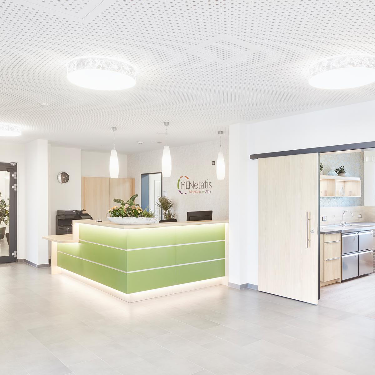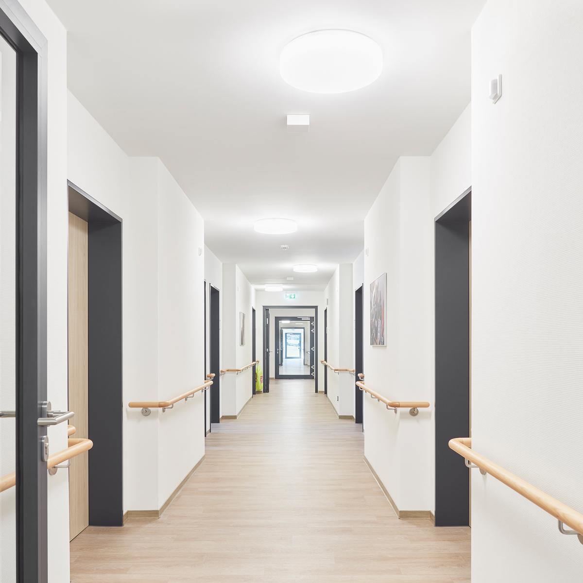 Schlüsselfertige Errichtung eines Pflegeheims mit Tagespflege in Aichhalden. Auf einer Gesamtfläche von mehr als 4.200 m² realisierte Köster eine moderne Pflegeeinrichtung, die über insgesamt 78 stationäre Pflegeapartments verfügt, welche ausschließlich Einzelzimmer sind. Das gesamte Gebäude wurde nach KfW-55-Standard errichtet. In der modellbasierten Planung wurden die Vorgaben an Barrierefreiheit und Energieeffizienz-Standards bereits frühzeitig berücksichtigt. Dank der konsequenten Anwendung des Köster-Prozess-Systems konnte der Rohbau mängelfrei abgenommen werden.