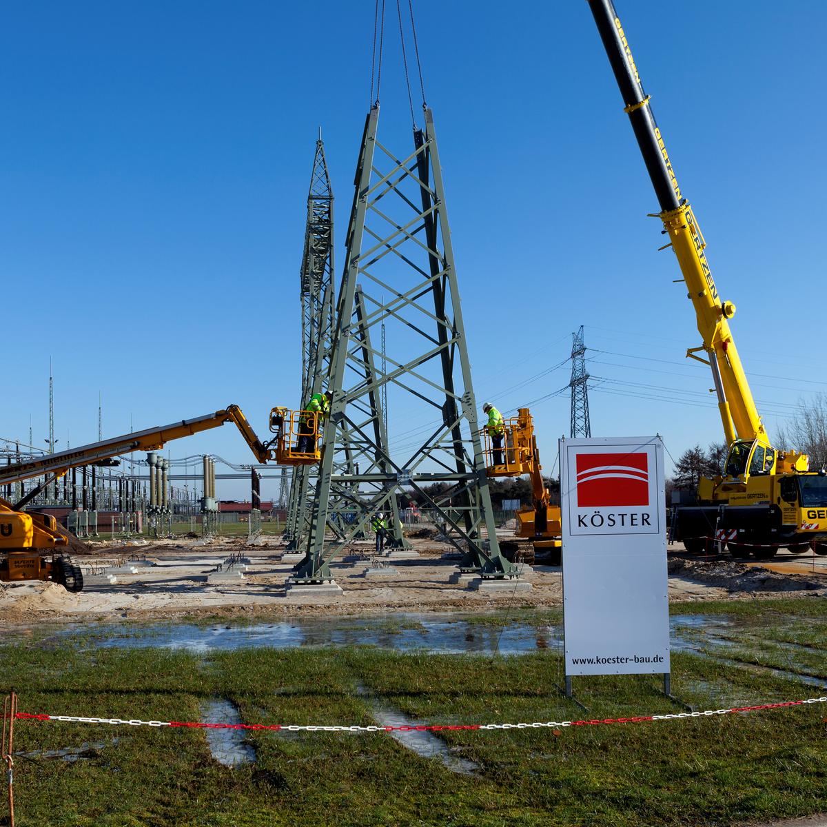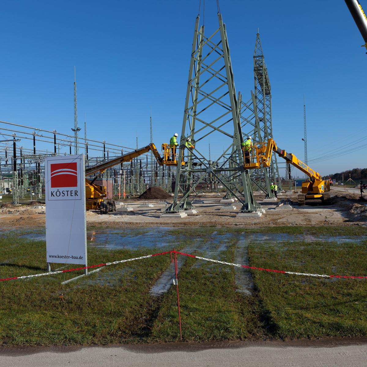 Schlüsselfertiger Bau des Umspannwerkes durch den Bereich Energieinfrastruktur. Köster realisierte den Bau zweier Schaltfelder bestehend aus zwei Portalen mit in einer Reihe dahinter geschalteten Elementen. Hinzu kam die Errichtung von Betonfundamenten, um darauf die entsprechenden Stahlbauten zu installieren. Bedeutend war die Gewährleistung höchster Sicherheitsstandards beim Bau von Infrastruktur für die Energiewirtschaft.
