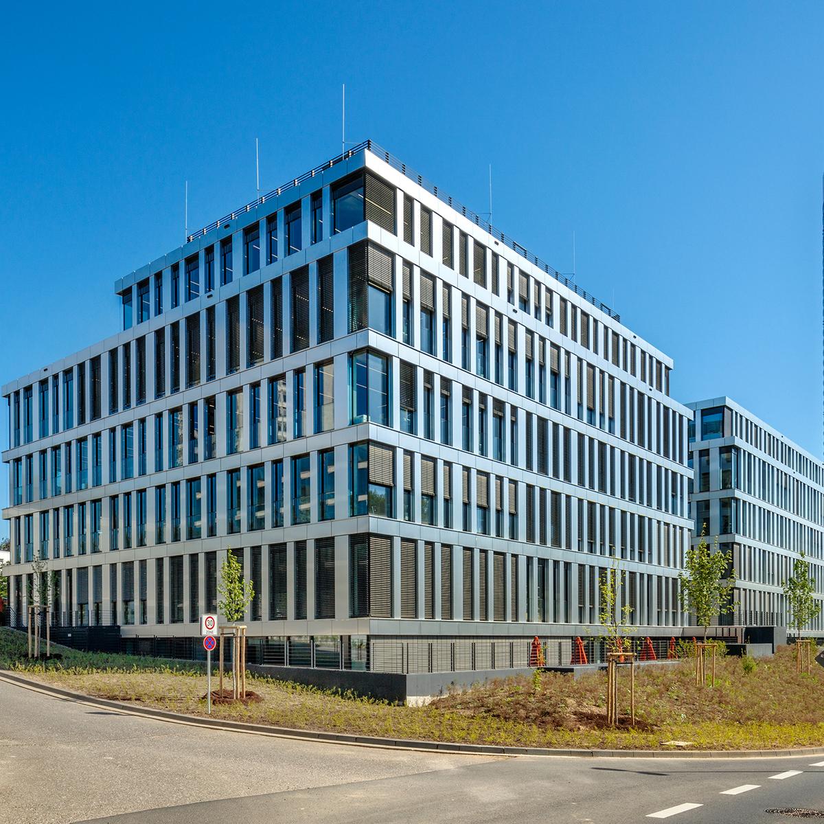 Schlüsselfertiger Neubau eines Büro- / Verwaltungsgebäudes mit Tiefgarage inkl. Tiefbauarbeiten als Folgeauftrag. Beide Immobilien gleichen sich optisch und sind über eine Brücke miteinander verbunden. Umfangreiche, technisch anspruchsvolle Mieterwünsche im Ausbau wurden berücksichtigt und noch in der geplanten Bauzeit umgesetzt.