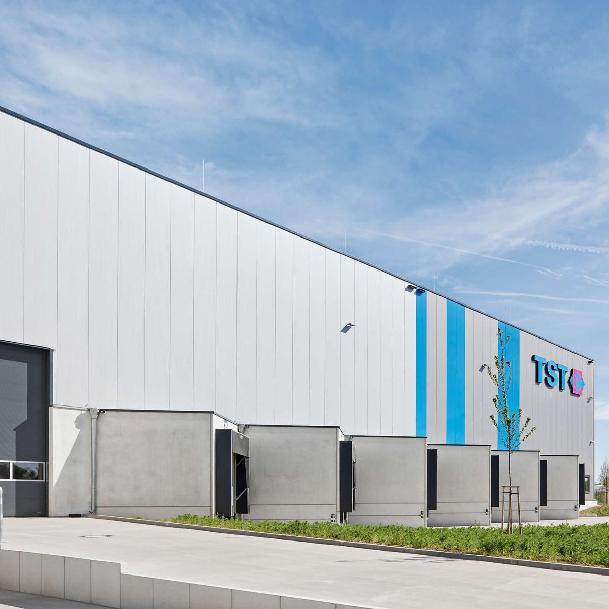 Köster realisierte mit dem Stammkunden TST eine Logistikimmobilie in Monsheim. So entstand eine 32.000 m² große Logistikhalle mit vier Hallen-Units inkl. Mezzanine und 780 m² großem Bürovorbau. Die größte Herausforderung bestand in dem ambitionierten Zeitplan von 11,5 Monaten, wobei es sich hier auszahlte, dass die Baupartner bereits zusammenarbeiteten und die Erwartungshaltung voneinander kennen. Für Lagerung von WGK III Stoffen mit Abdichtungsbahn ausgestattet. Unit 1-3 zusätzlich mit Rauchansaugsystem vorgerüstet. In Unit 4 wurde eine