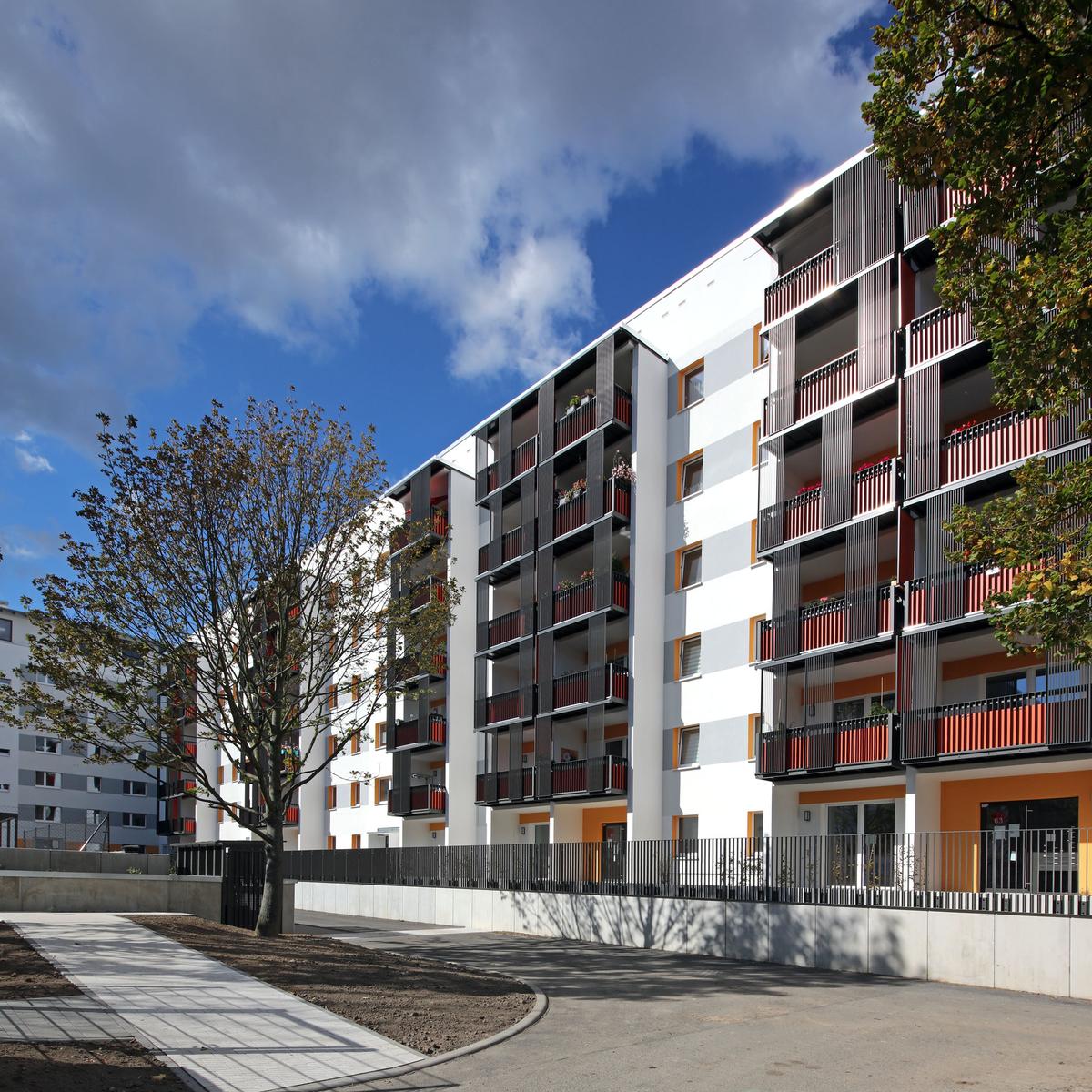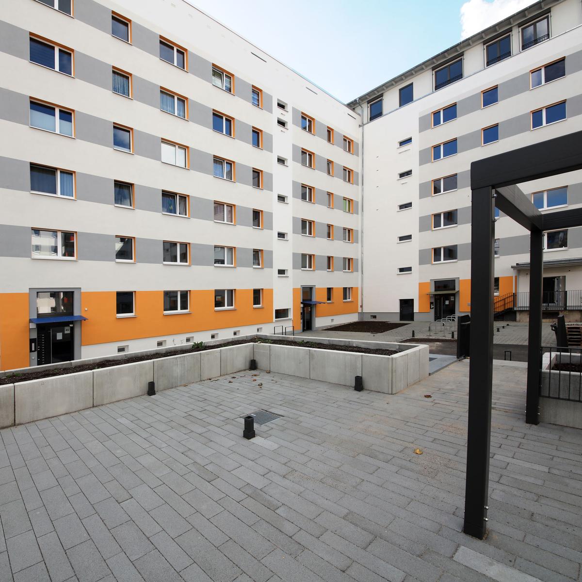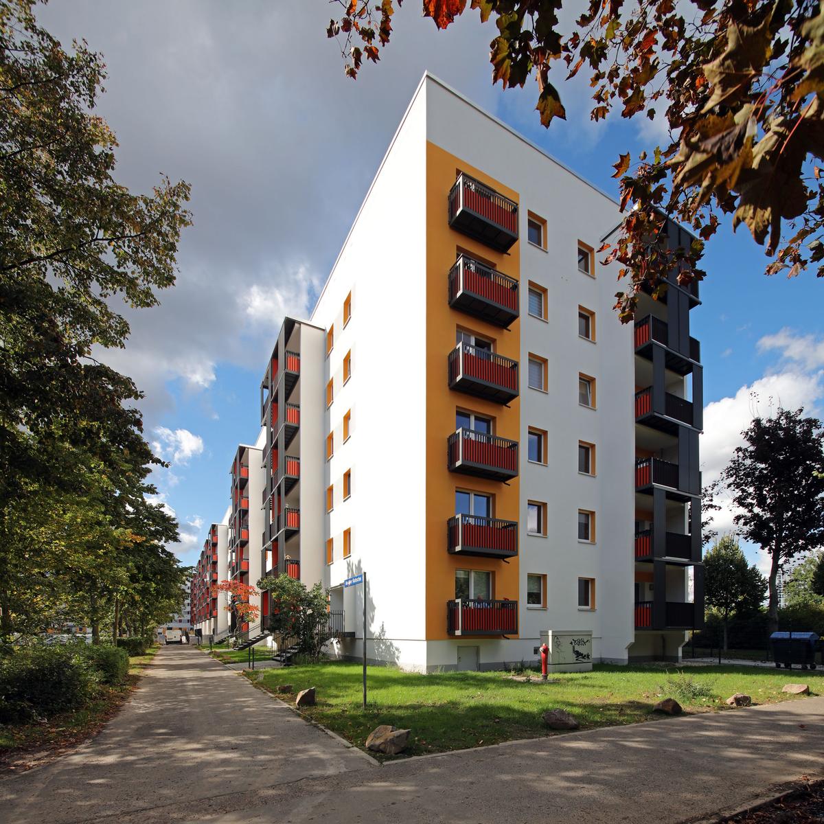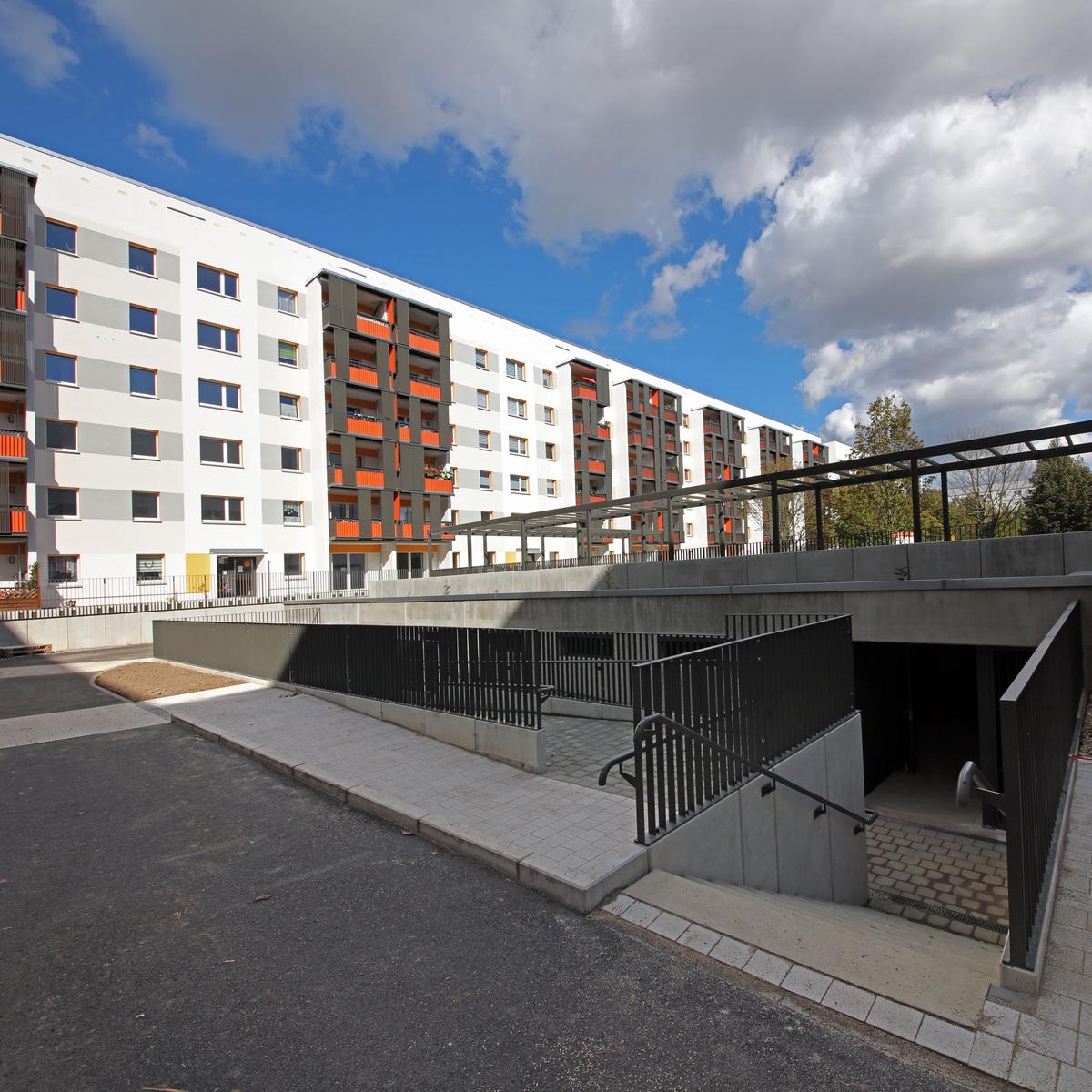Kernsanierung von fünf Mehrfamilienhäusern mit über 200 Wohnungen, in den 70er Jahren in Plattenbauweise errichtet. Köster stieg mit der Ausführungsplanung ins Projekt des Bauherrn, die Wohnbau-Genossenschaft WBG Kontakt, ein und erhielt den Auftrag für die vollständige Sanierung. Zusätzlich wurde ein Staffelgeschoss mit zehn Wohnungen in Holzbauweise errichtet. Die termingerechte Übergabe ermöglichte eine pünktliche Vermietung ohne Ausfälle.