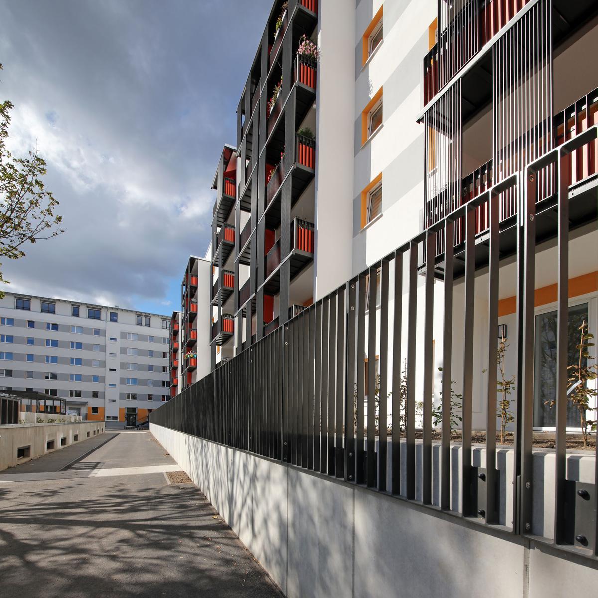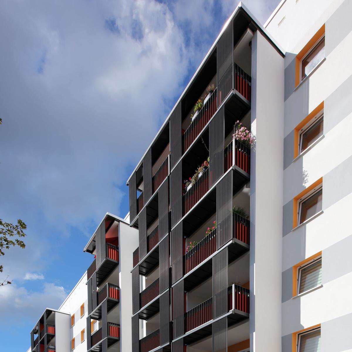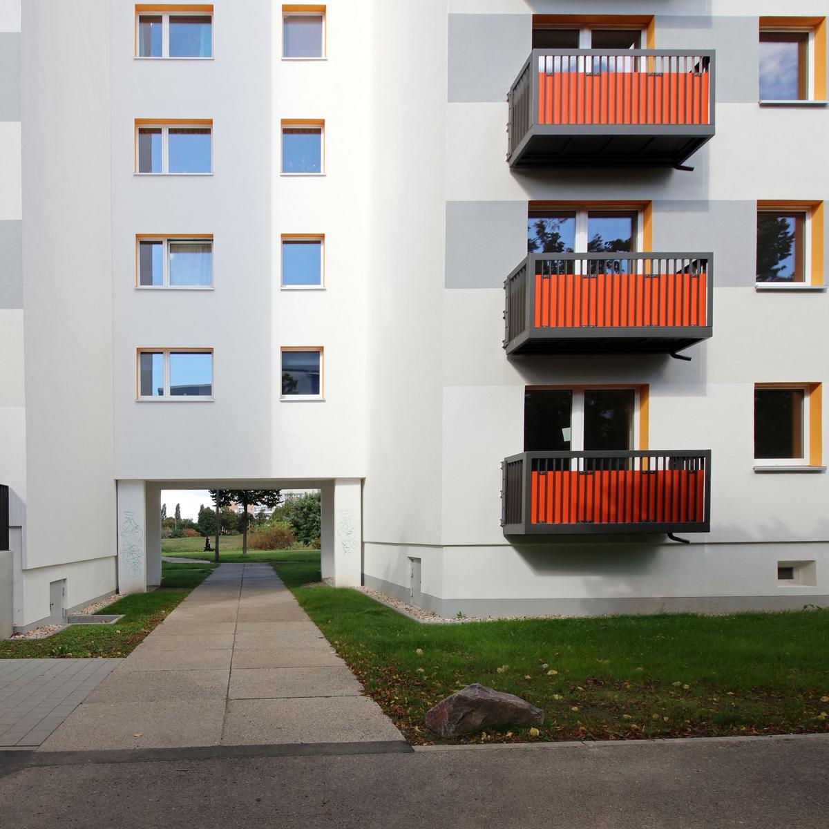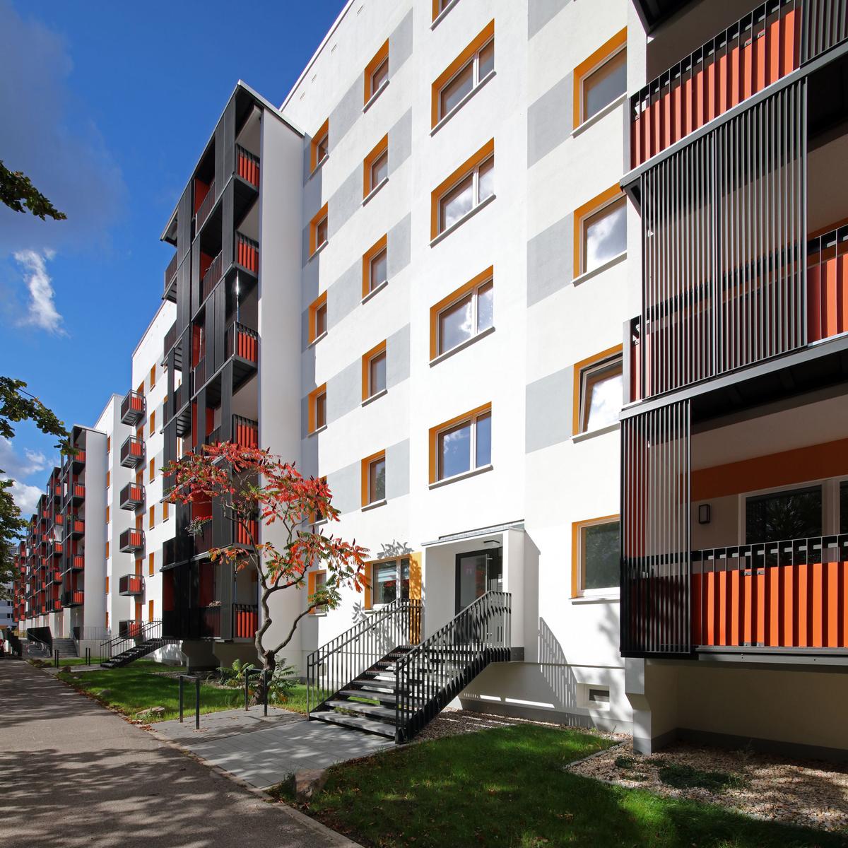 Kernsanierung von fünf Mehrfamilienhäusern mit über 200 Wohnungen, in den 70er Jahren in Plattenbauweise errichtet. Köster stieg mit der Ausführungsplanung ins Projekt des Bauherrn, die Wohnbau-Genossenschaft WBG Kontakt, ein und erhielt den Auftrag für die vollständige Sanierung. Zusätzlich wurde ein Staffelgeschoss mit zehn Wohnungen in Holzbauweise errichtet. Die termingerechte Übergabe ermöglichte eine pünktliche Vermietung ohne Ausfälle.