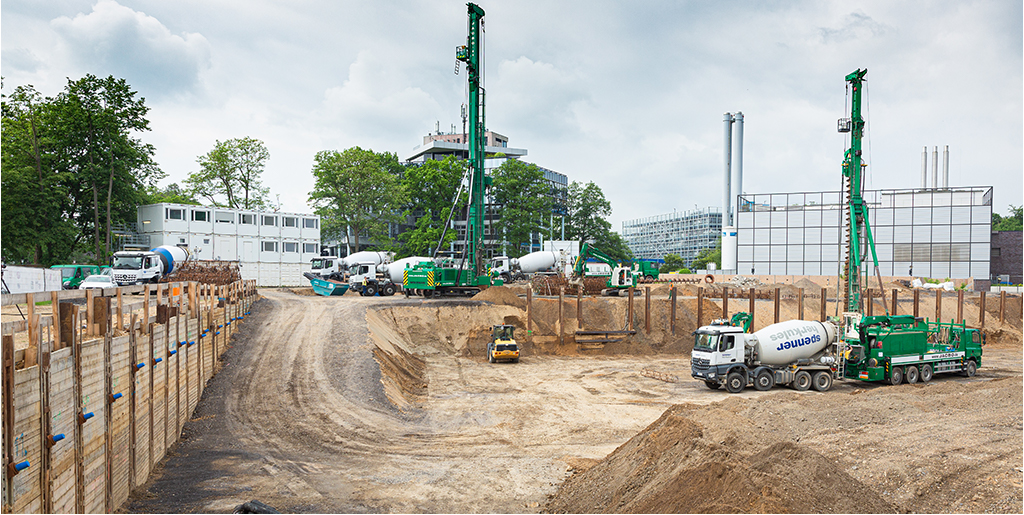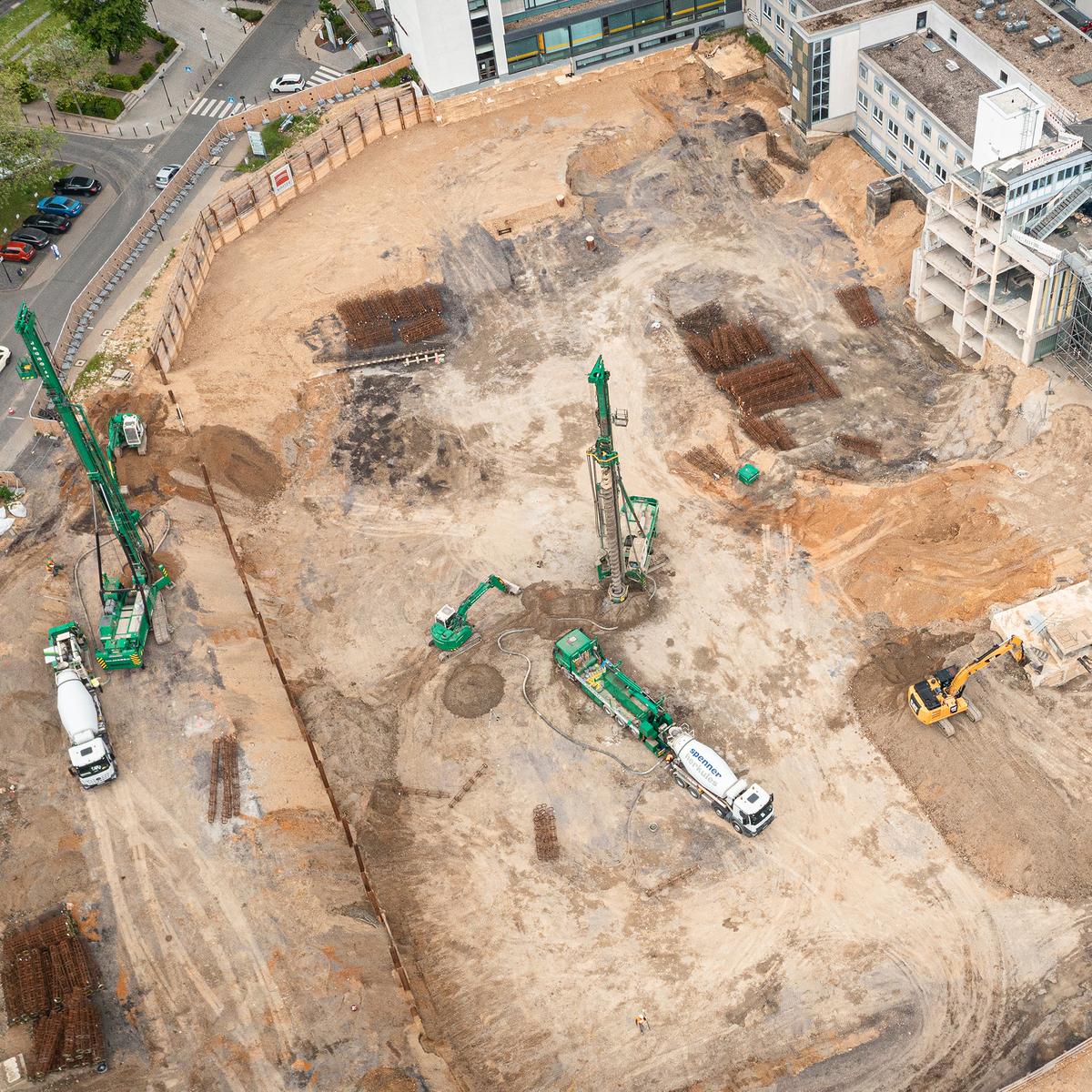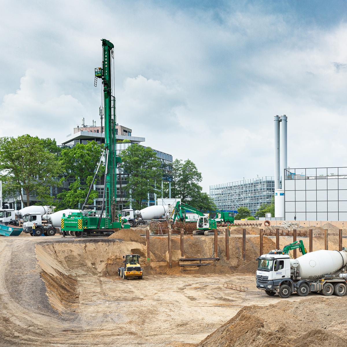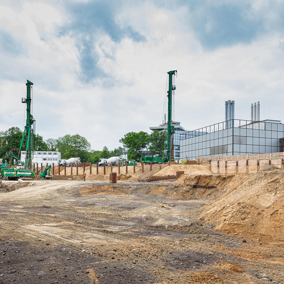 Die schlüsselfertige Baugrube für den Neubau des Herzzentrums an der Universitätsklinikum Bonn erforderte die Erstellung einer einfach rückverankerten Trägerbohlwand als gesonderte Baugrubensicherung sowie Erdaushub bis in 6 m Tiefe. 85.000 t Boden wurden entsorgt und 8.500 m bewehrte Gründungspfähle eingebracht. Köster sorgte für eine statische Optimierung der Entwurfsplanung des Verbaus und brachte einen einflussreichen Sondervorschlag zu den Gründungspfählen ein, die zu einer kostengünstigeren und schnelleren Ausführung führten.