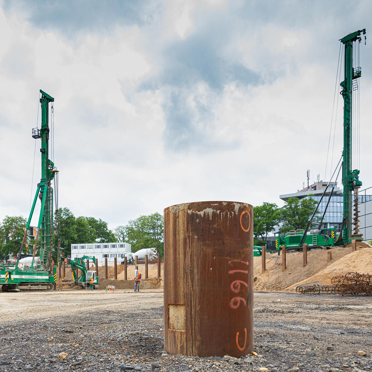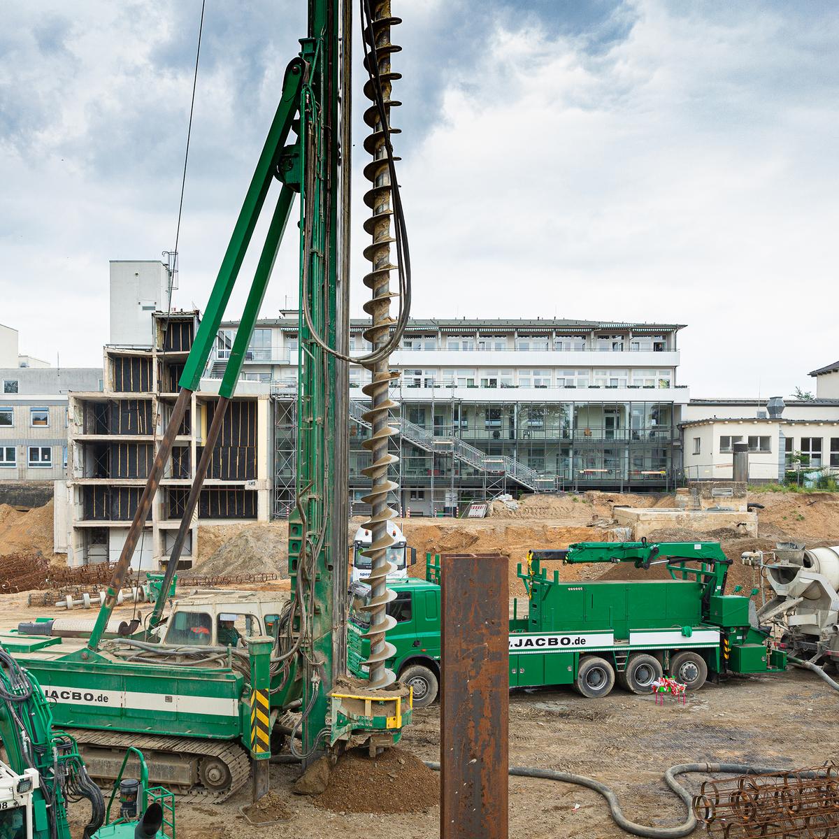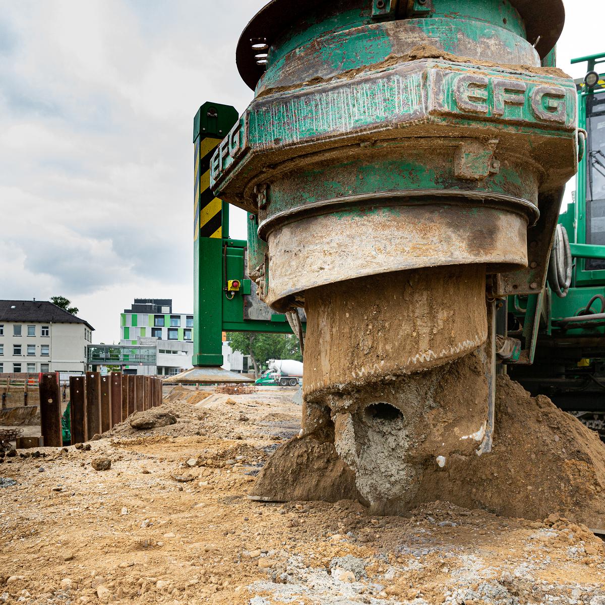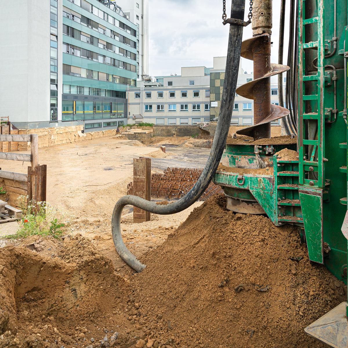 Die schlüsselfertige Baugrube für den Neubau des Herzzentrums an der Universitätsklinikum Bonn erforderte die Erstellung einer einfach rückverankerten Trägerbohlwand als gesonderte Baugrubensicherung sowie Erdaushub bis in 6 m Tiefe. 85.000 t Boden wurden entsorgt und 8.500 m bewehrte Gründungspfähle eingebracht. Köster sorgte für eine statische Optimierung der Entwurfsplanung des Verbaus und brachte einen einflussreichen Sondervorschlag zu den Gründungspfählen ein, die zu einer kostengünstigeren und schnelleren Ausführung führten.