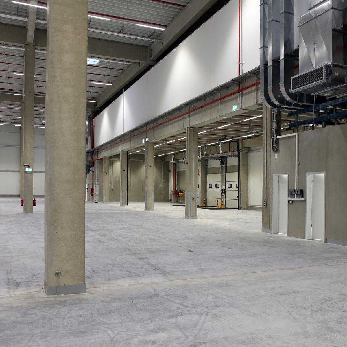 Für den Neubau einer Logistikanlage in Nürnberg stieg Köster mit der Entwurfsplanung ein und realisierte eine 12,5 m hohe Halle mit 10.200 qm Fläche inmitten eines bestehenden Industrieareals. Im Inneren befinden sich auf 1.200 qm zweigeschossig angelegte Büro- und Sozialräume. Die gesamte Abwicklung erfolgte streng nach dem Köster-Prozess-System, um den vom Kunden gesetzten Zeit- und Kostenrahmen sicherzustellen. Die Baumaßnahmen erfolgten mit größtmöglicher Präzision, um den Baumbestand auf dem Gelände von 25.000 m² zu schützen.