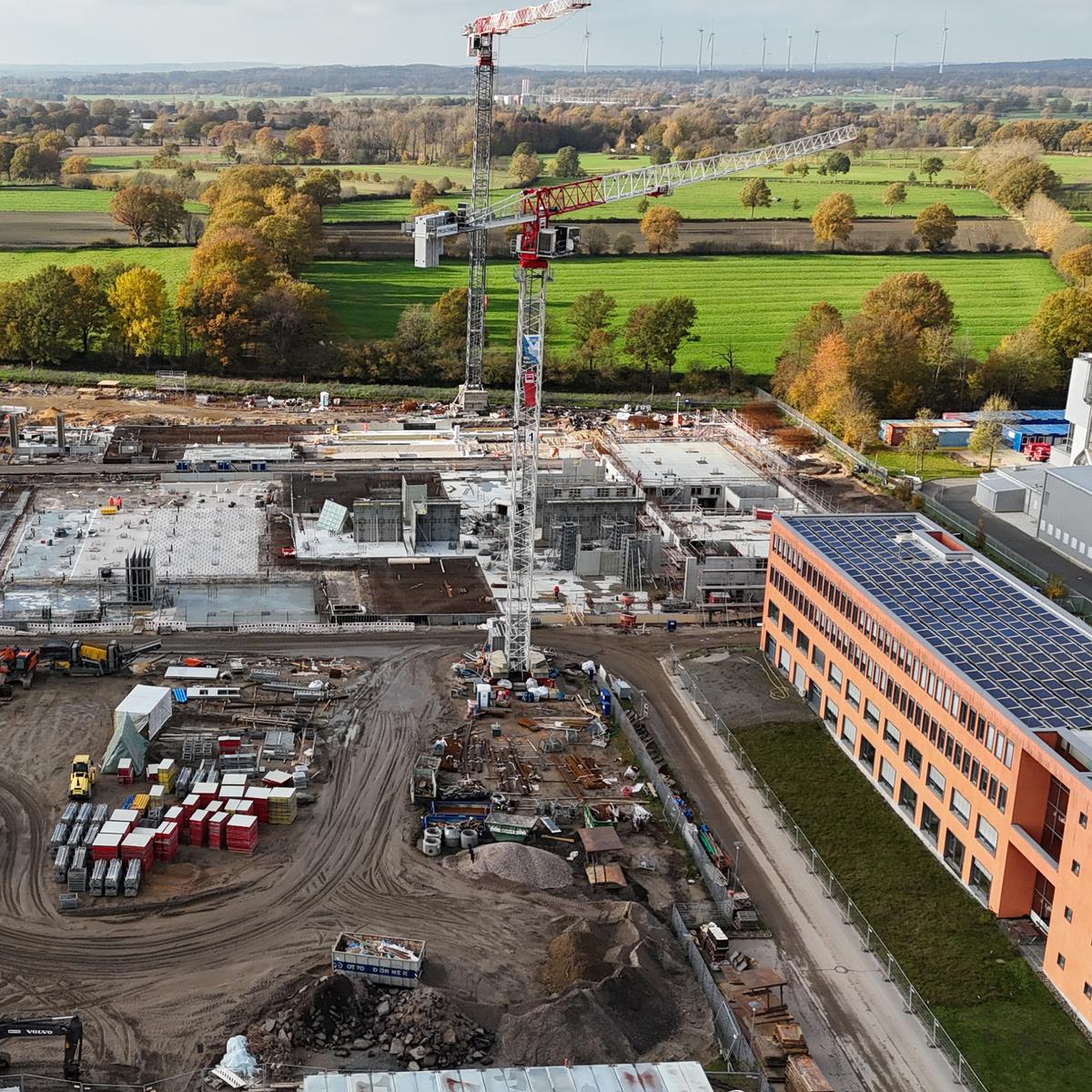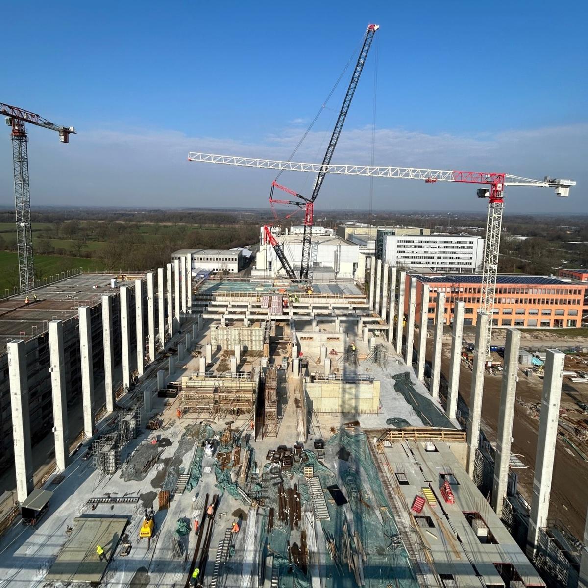 Köster errichtete den Rohbau der modernen Industrieimmobilie mit außergewöhnlich massiven Stahlbetonteilen, da es in dem Gebäude keine Resonanzschwingungen durch mechanische Impulse oder Vibration geben darf. Daher haben Stützen, Wandelemente und weitere Betonfertigteile eine Dicke bzw. einen Durchmesser von 100 cm. Das neue Fabrikgebäude hat eine Grundfläche von 105 x 55 m und nimmt einen Reinraum von 4.000 m² ein.