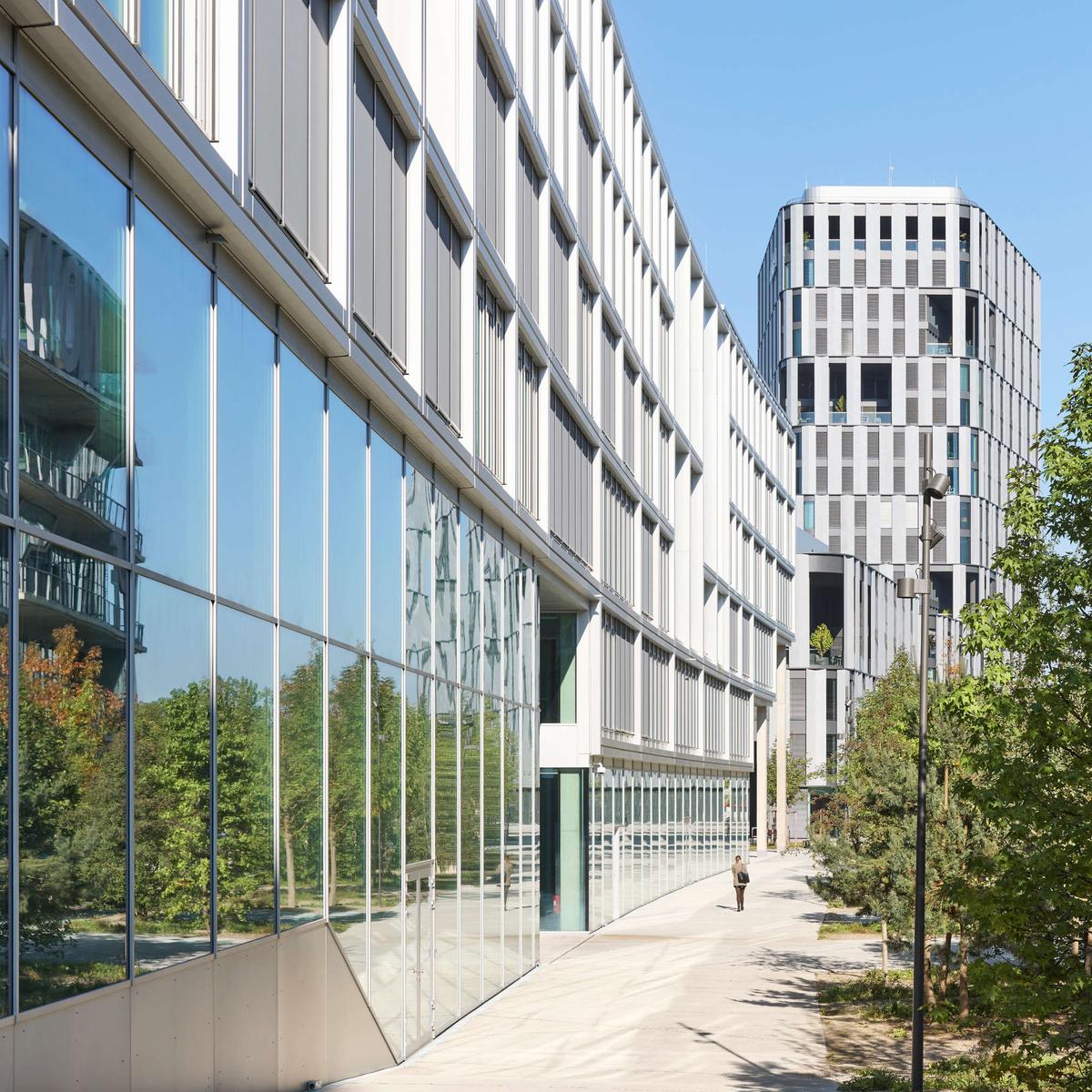 Im Münchner Werksviertel übernahm Köster den schlüsselfertigen Neubau eines Verwaltungsgebäudes auf sechs Etagen mit über 18.000 m² Bürofläche. Hinzu kommt eine Tiefgarage mit 200 Plätzen. Drei Erschließungskerne, ein Stützraster von 10,80 m in beide Richtungen sowie die Möglichkeit, das Gebäude sowohl vertikal als auch horizontal unterteilen zu können, sorgen für eine flexible Nutzbarkeit.