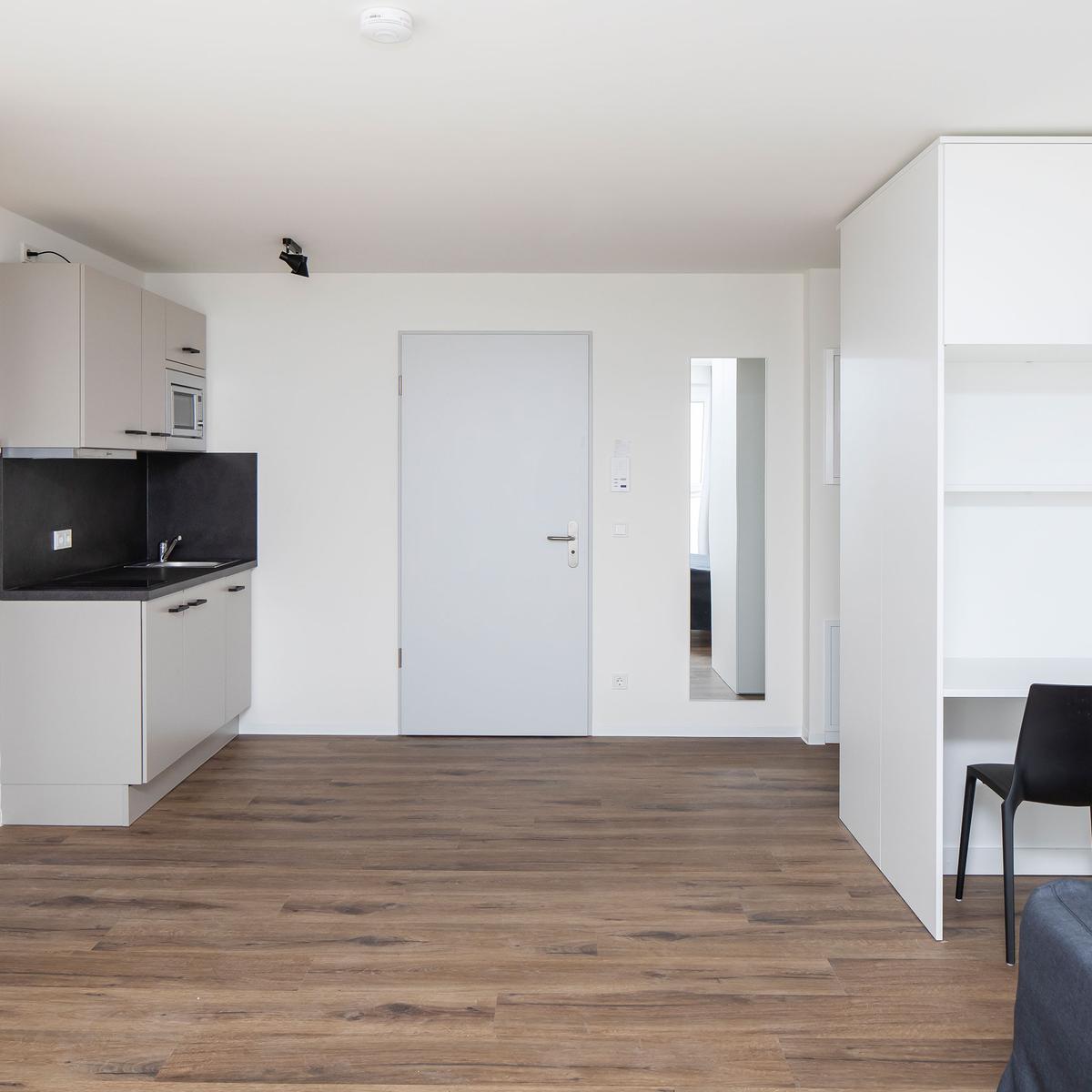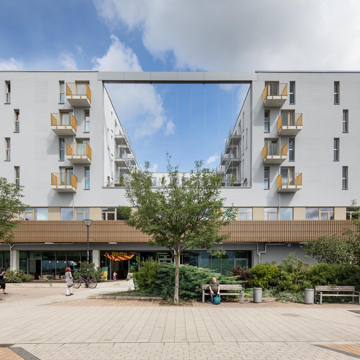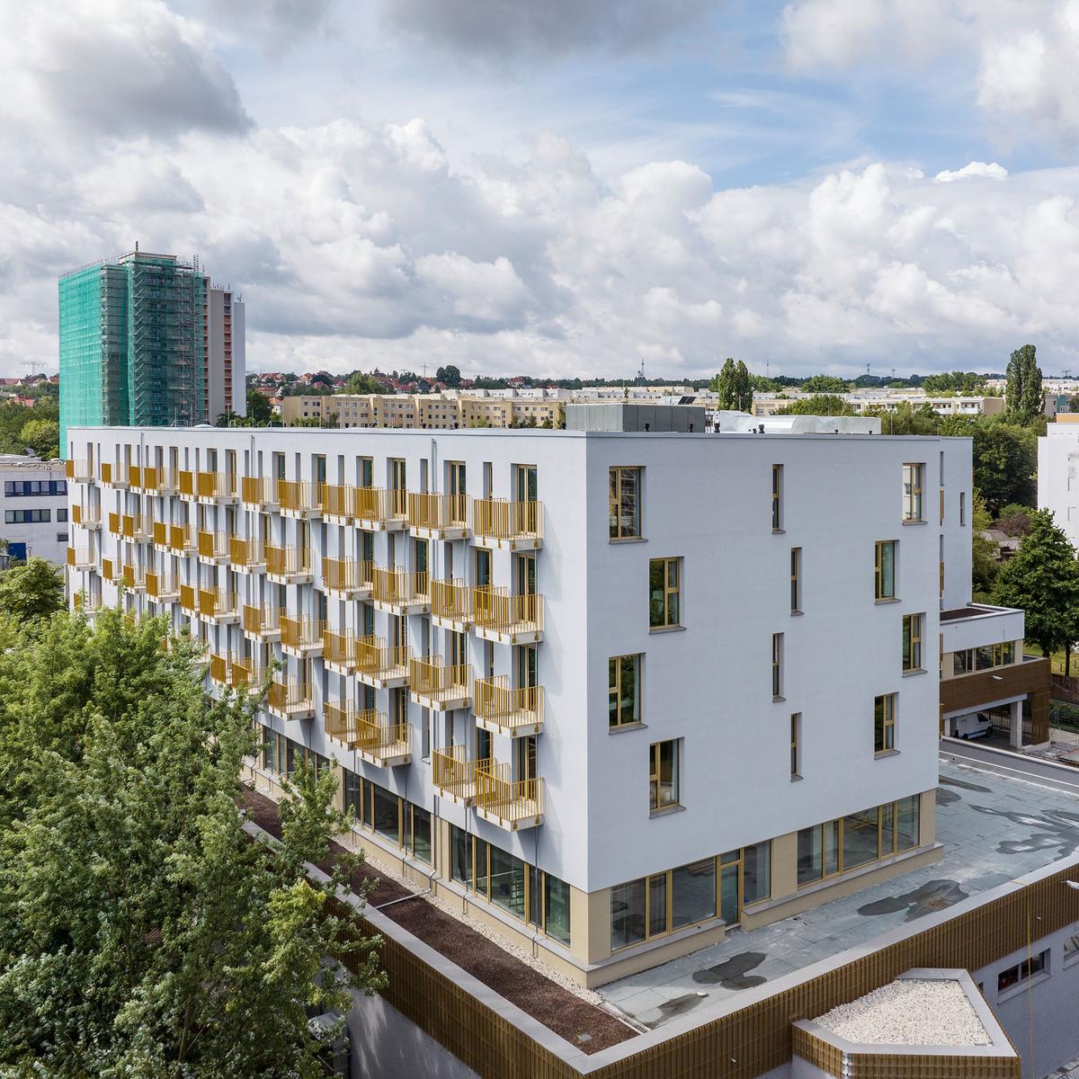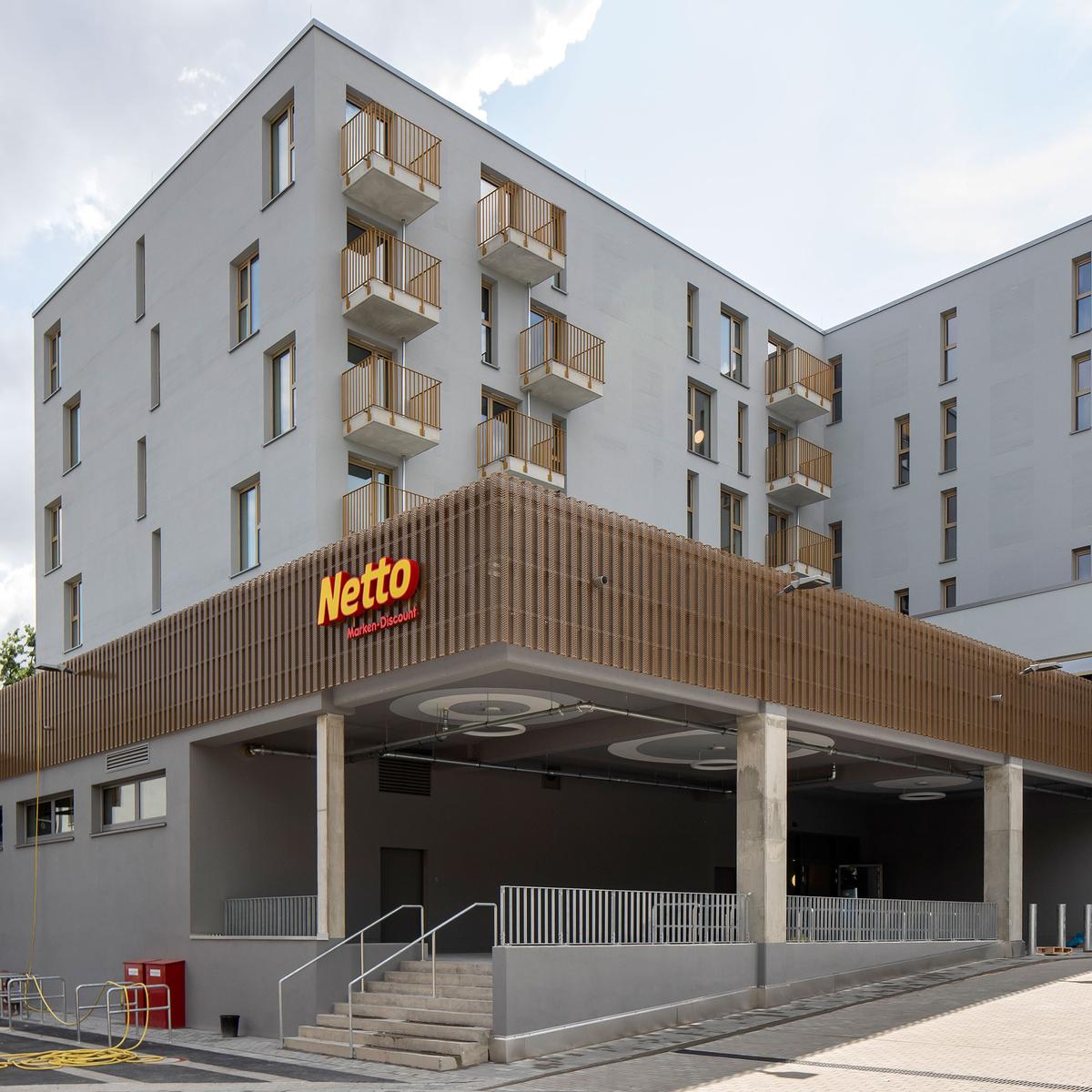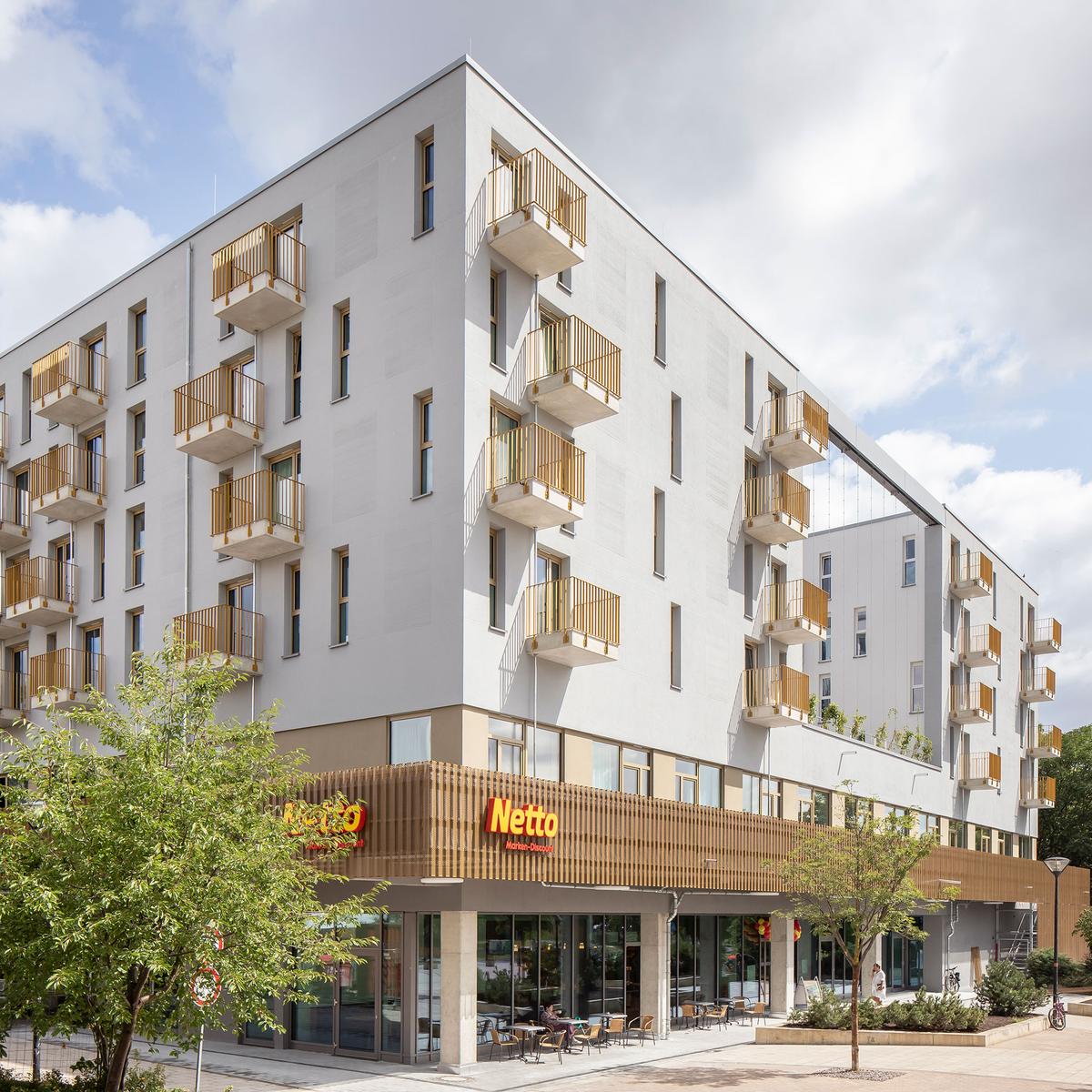 Bereits in einer frühen Phase stieg Köster mit der Erstellung der Ausführungsplanung bei diesem Bauvorhaben ein. Im Erdgeschoss dieses sechsgeschossigen Wohn- und Geschäftsgebäudes befindet sich ein Lebensmittelmarkt und ein Backshop. Im ersten Obergeschoss ist ein Fitnessstudio zu finden, den restlichen Raum im ersten Obergeschoss sowie alle darüber liegenden Geschossen werden als Wohnungen für Studierende genutzt. Zudem gibt es eine Tiefgarage mit 77 PKW-Stellplätzen.