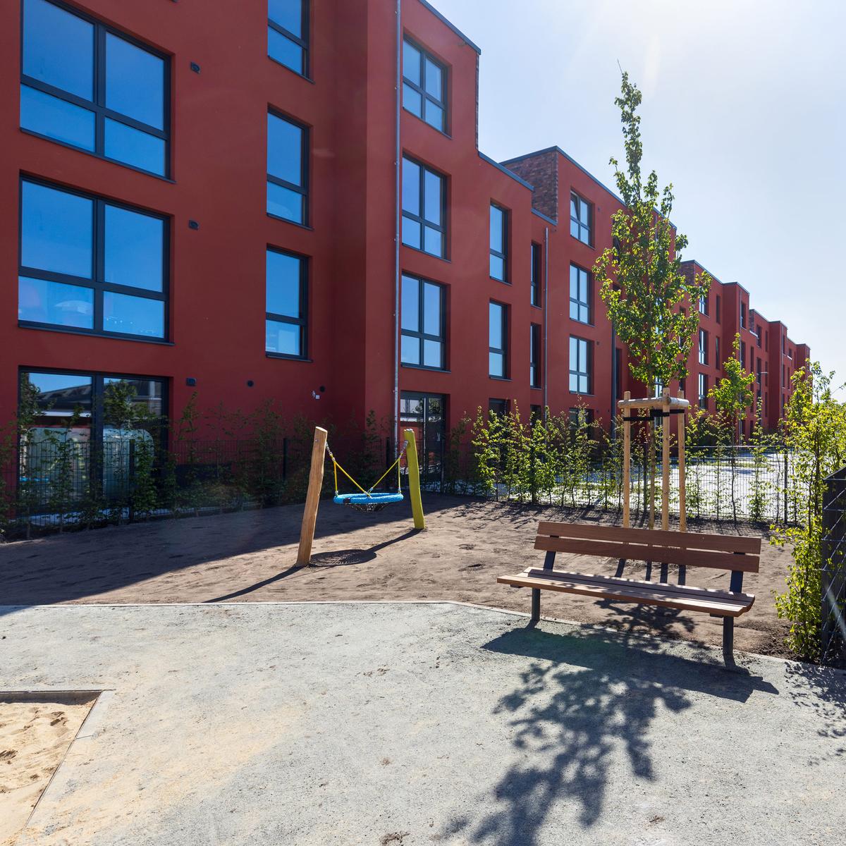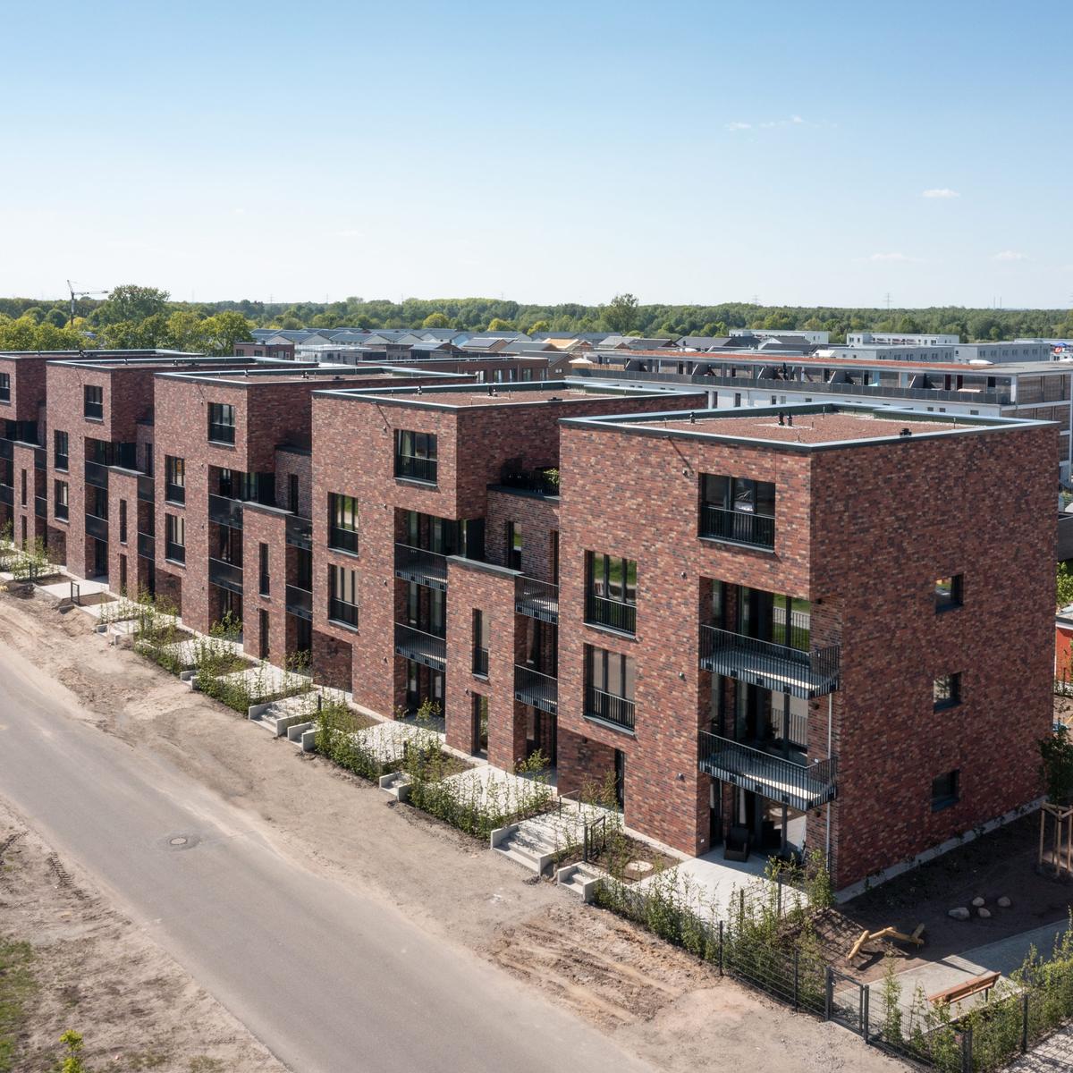 Neubau einer Wohnanlage mit insgesamt 35 Wohneinheiten, die teils barrierefrei zugänglich sind, und 35 PKW-Stellplätzen in Hamburg-Neugraben. Das Wohngebäude bietet mit drei Vollgeschossen und einem Staffelgeschoss 2782 m² Wohnfläche im KfW-55-Standard. Die Bauweise mit Fertigteildecken führte zu einer hohen Zeitersparnis im gesamten Bauprozess. Eine Besonderheit des Gebäudes ist das WDVS-Fassadensystem, welches einseitig mit Oberputz und einem rötlichen Anstrich und auf der anderen Seite mit aufgeklebtem Riemchen versehen ist. Begrünte Dächer stützen eine ökologische Gebäudekühlung. Durch die enge und frühzeitige Abstimmung zwischen dem Kunden und Köster waren eine stets reibungslose Ausführung samt Sonderwünschen und termingerechte Übergabe möglich.